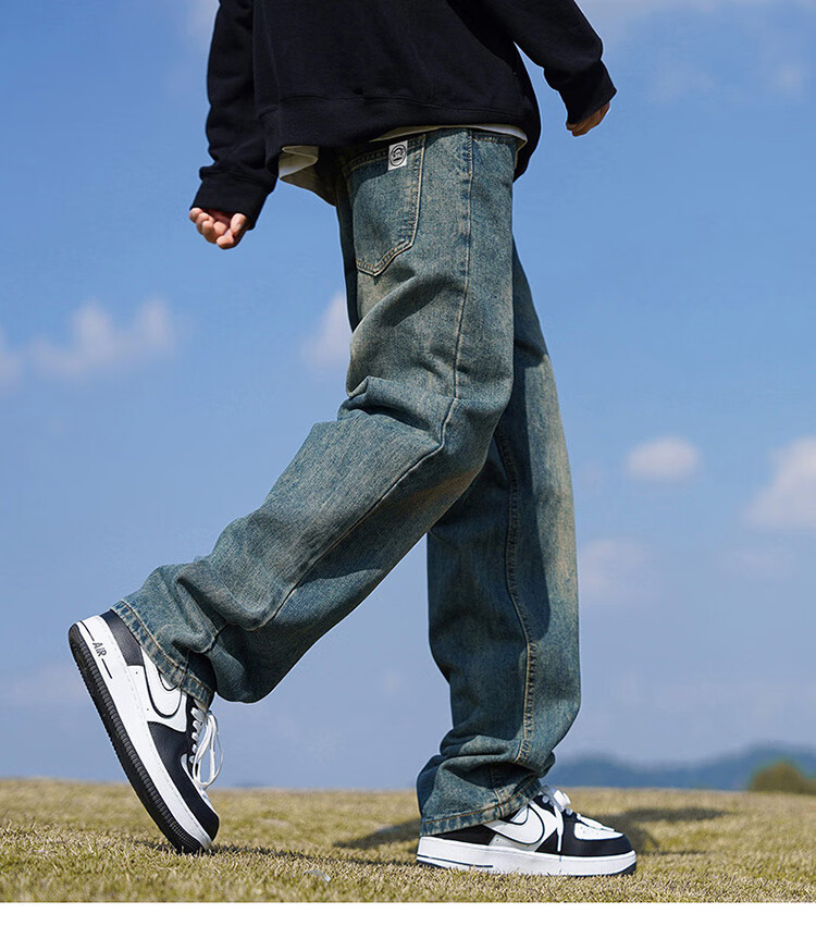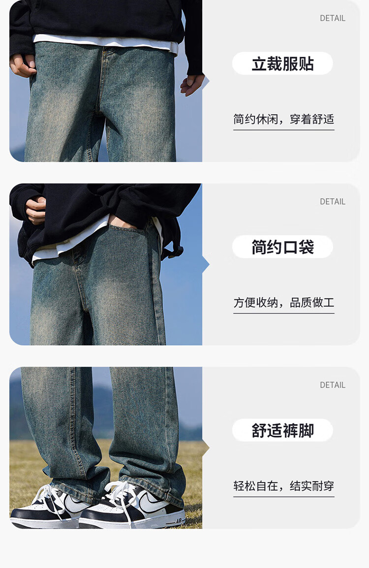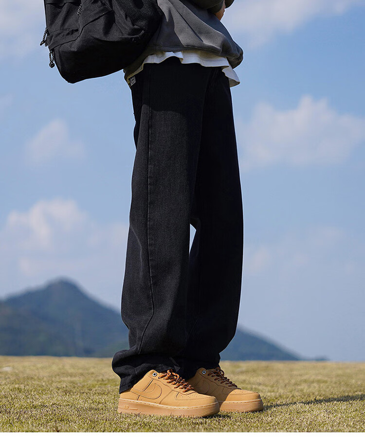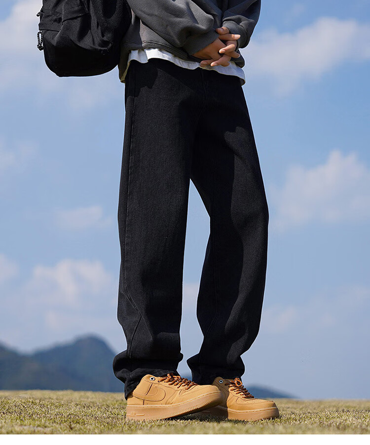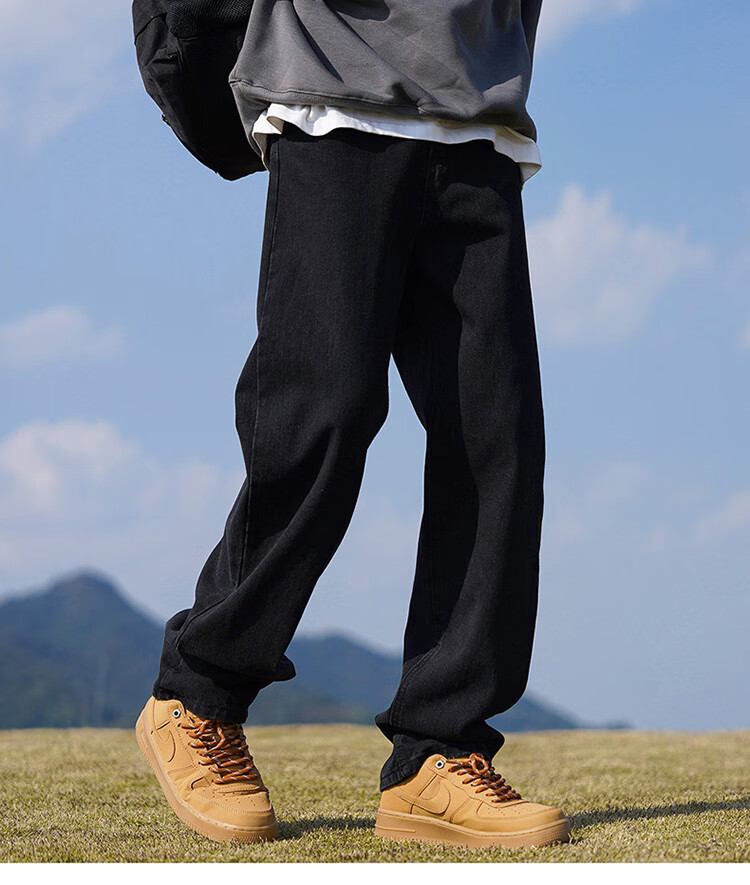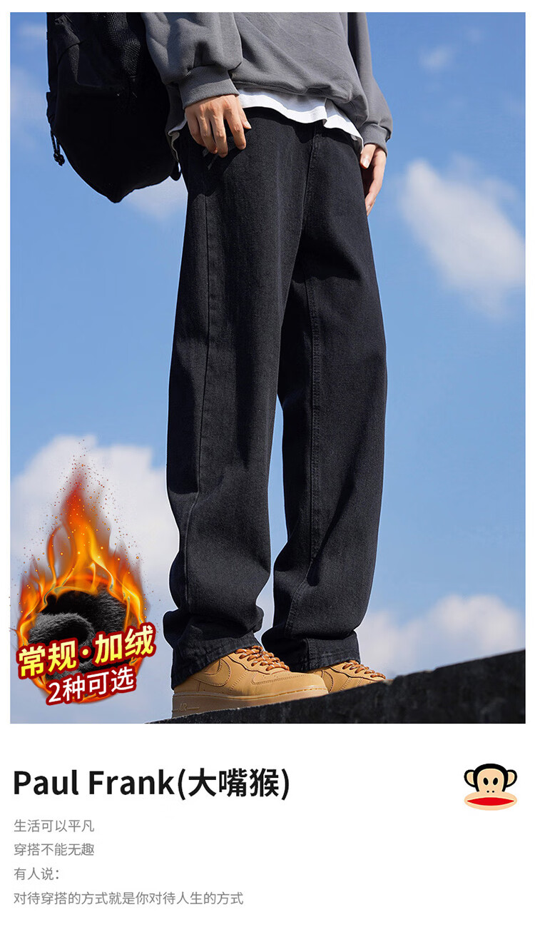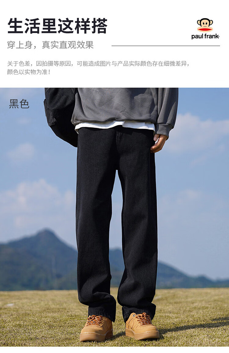 大嘴猴(paul frank)牛仔裤男士秋季直筒裤子男美式复古宽松休闲裤男裤长裤 黑色 XL