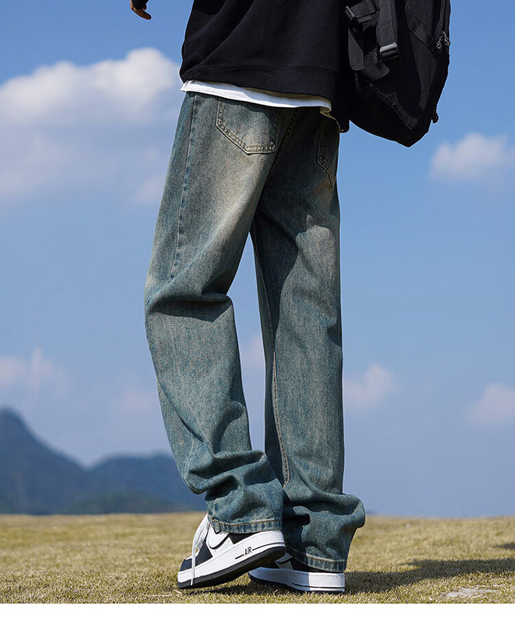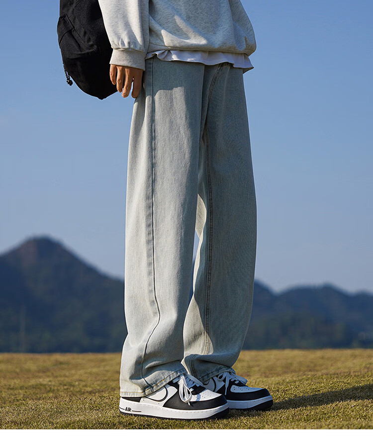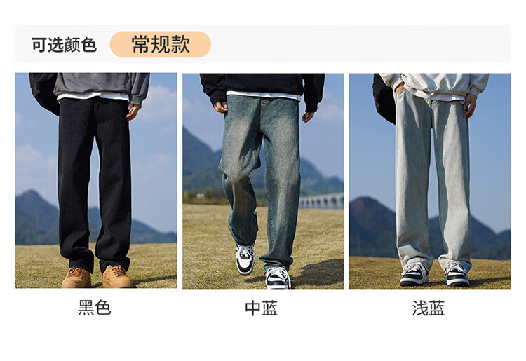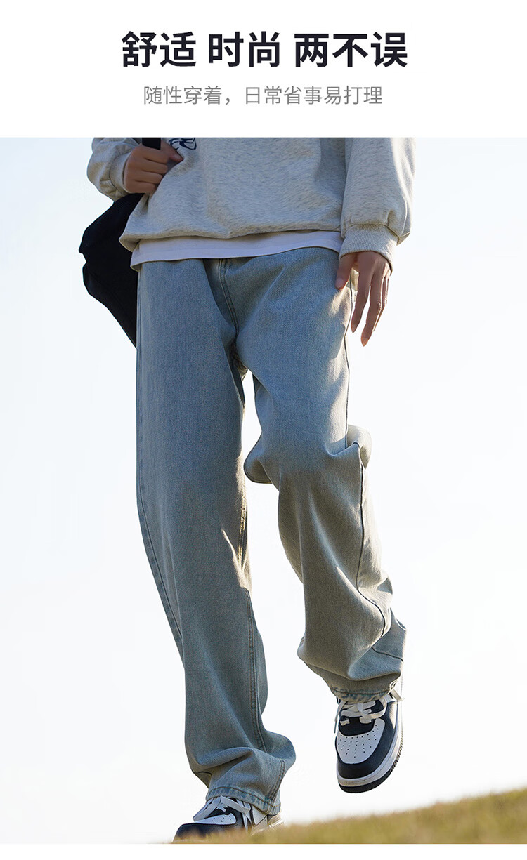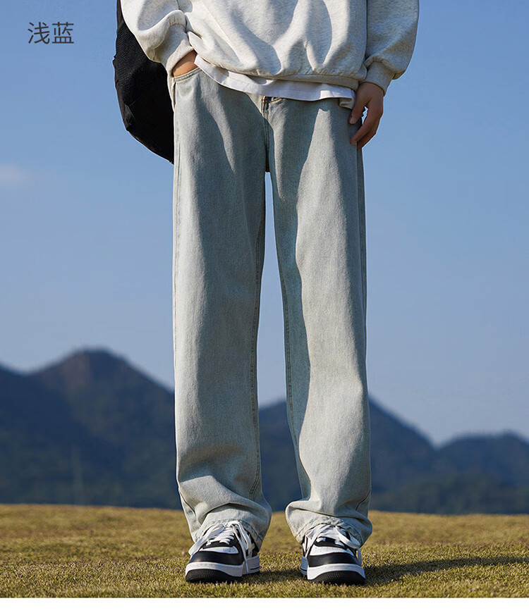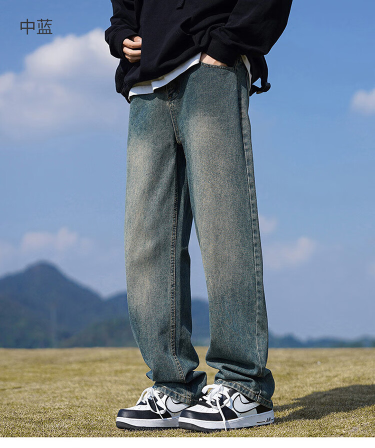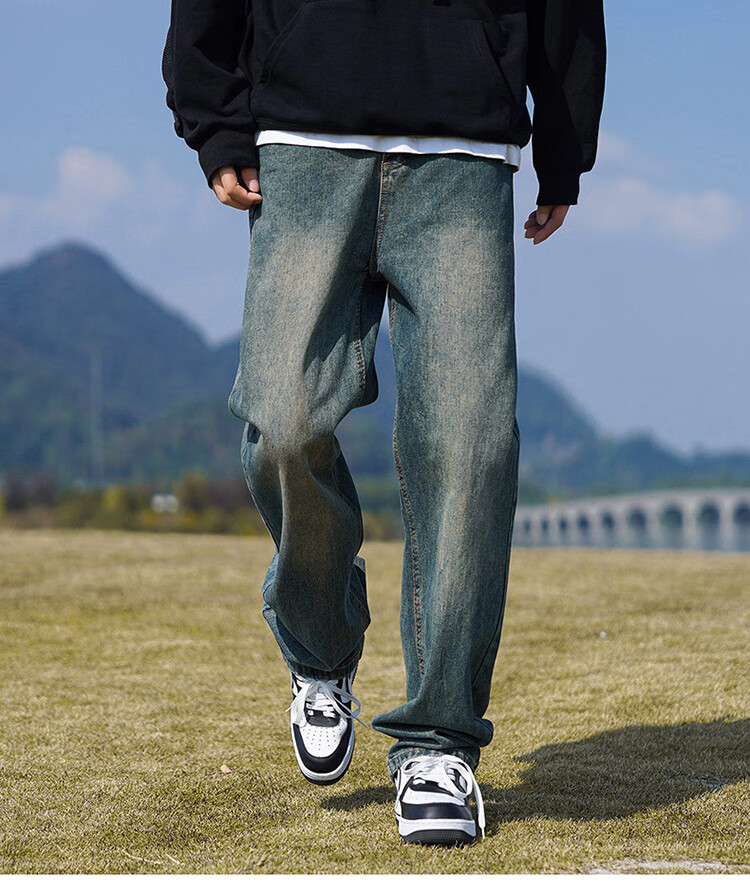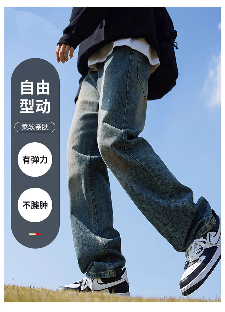 大嘴猴(paul frank)牛仔裤男士秋季直筒裤子男美式复古宽松休闲裤男裤长裤 黑色 XL