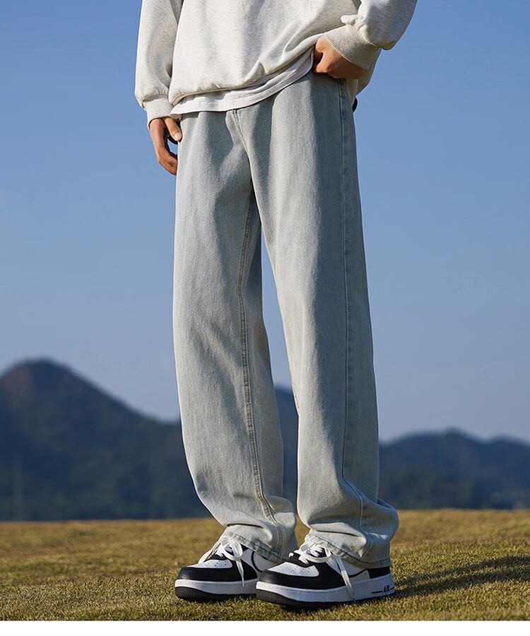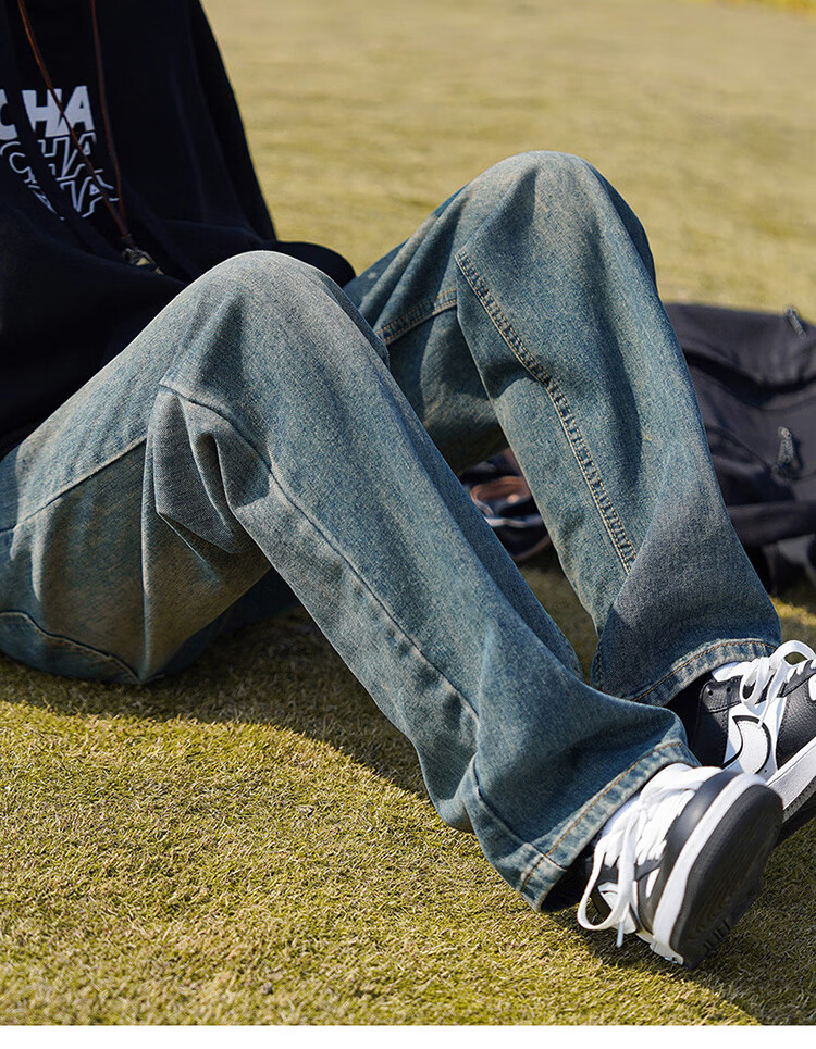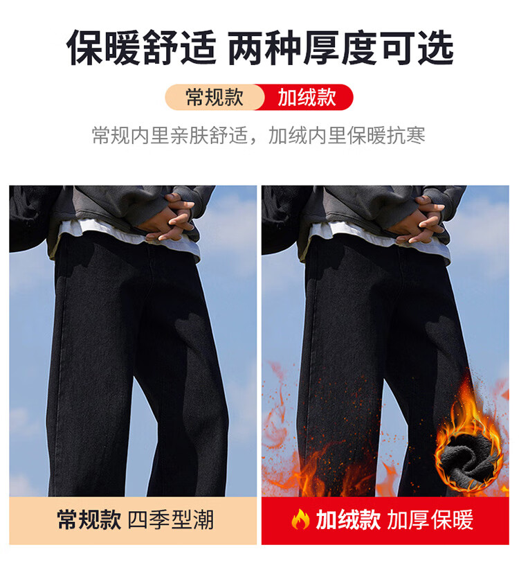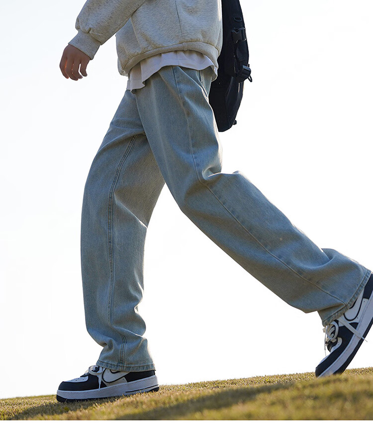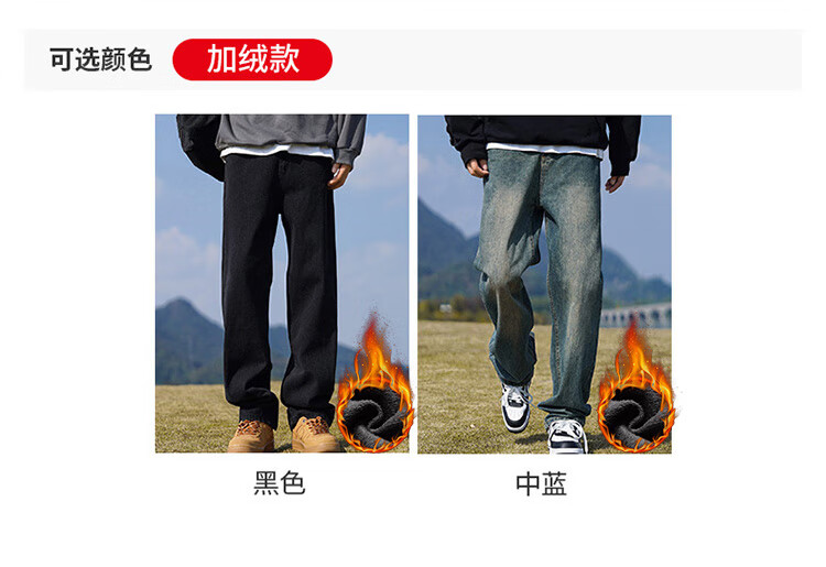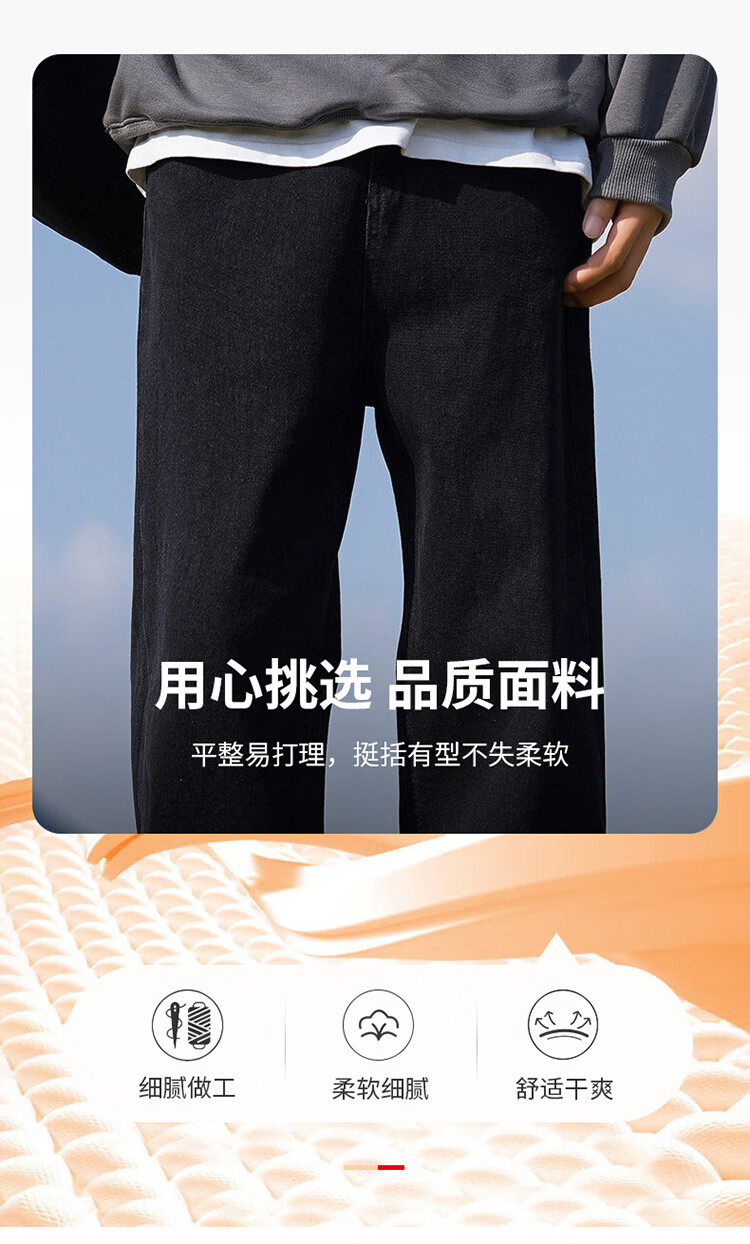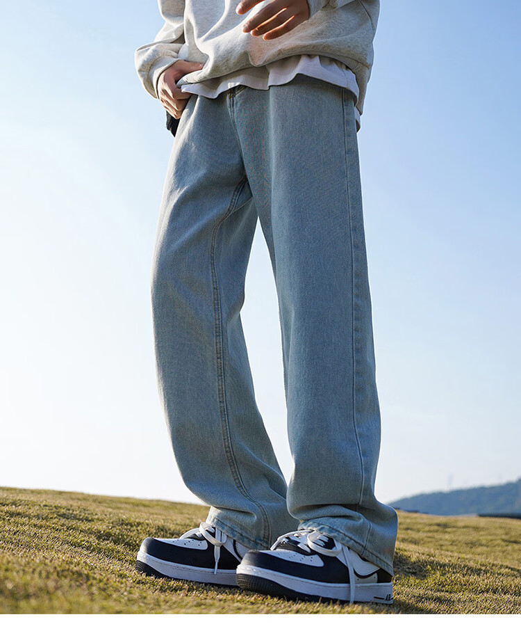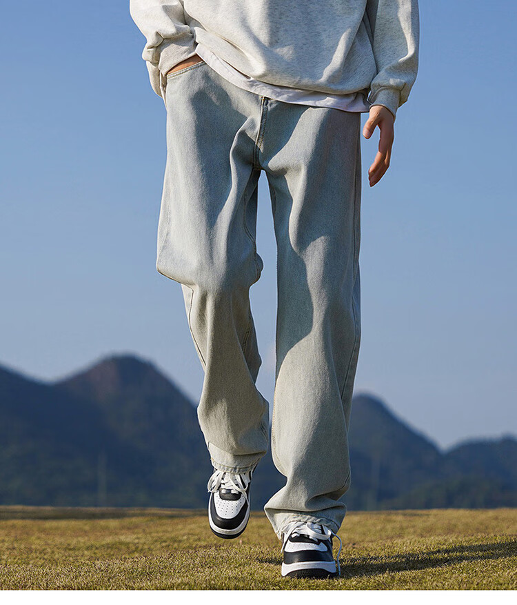 大嘴猴(paul frank)牛仔裤男士秋季直筒裤子男美式复古宽松休闲裤男裤长裤 黑色 XL