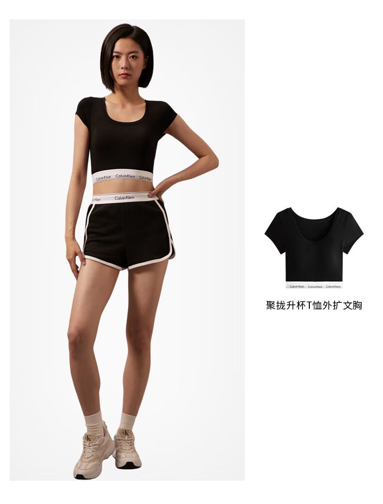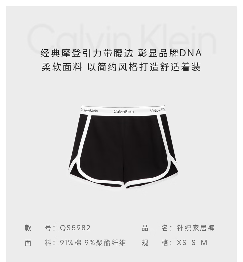 Calvin Klein内衣【摩登引力带】女士本命年ck家居外穿睡裤辣妹运动短裤 001-太空黑 S
