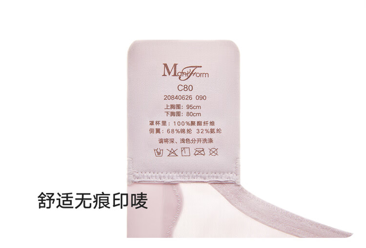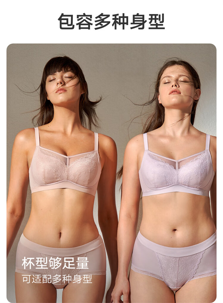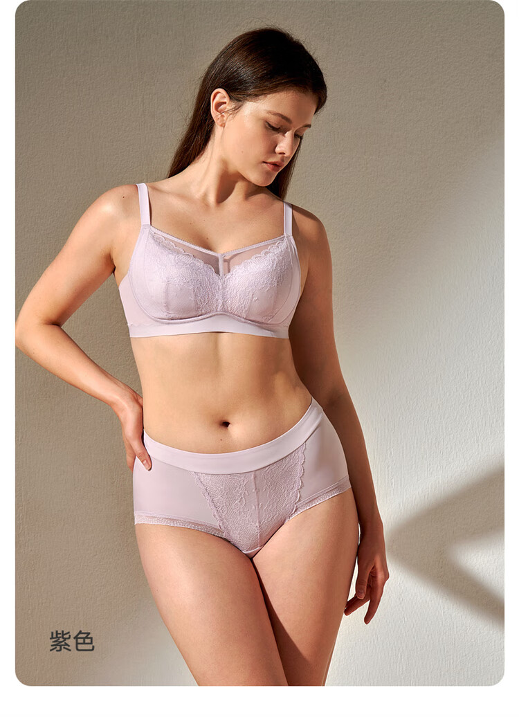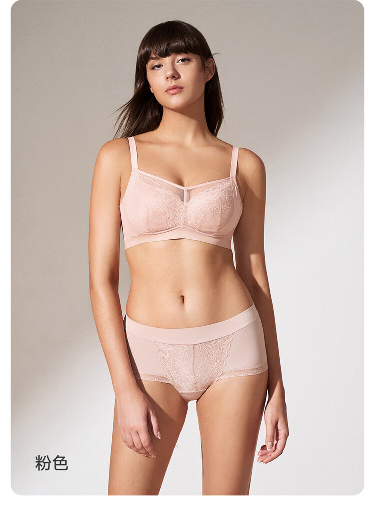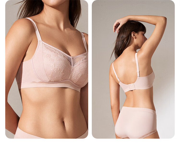 曼妮芬无钢圈大杯文胸薄款女士大胸显小内衣 粉色 80C