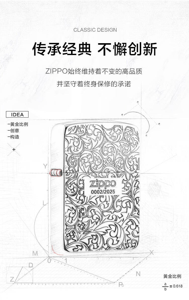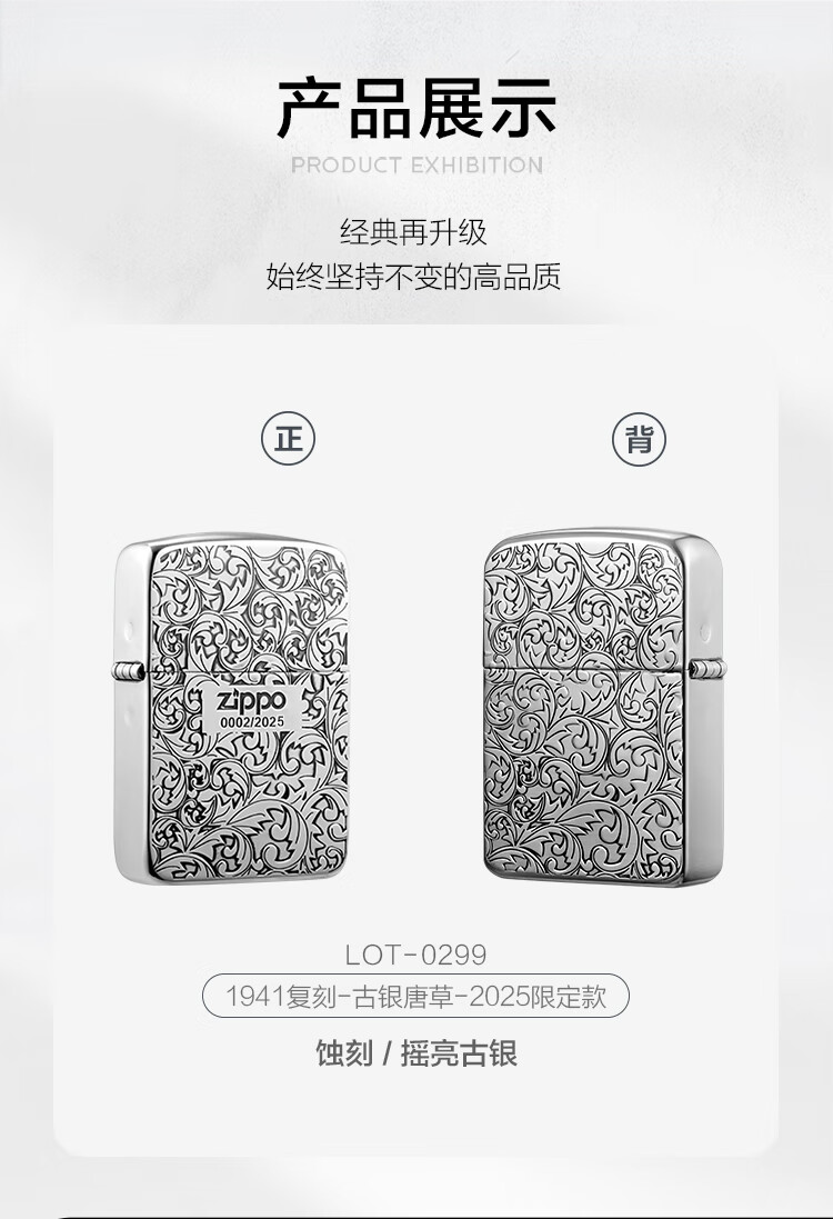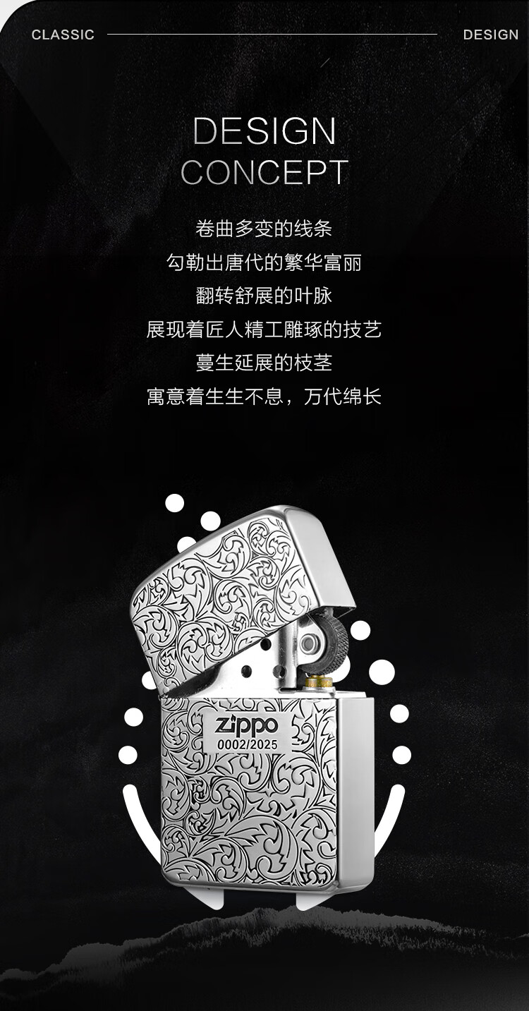 ZIPPO打火机之宝防风煤油 唐草系列1941复刻唐草-25年限定 送男友 单机