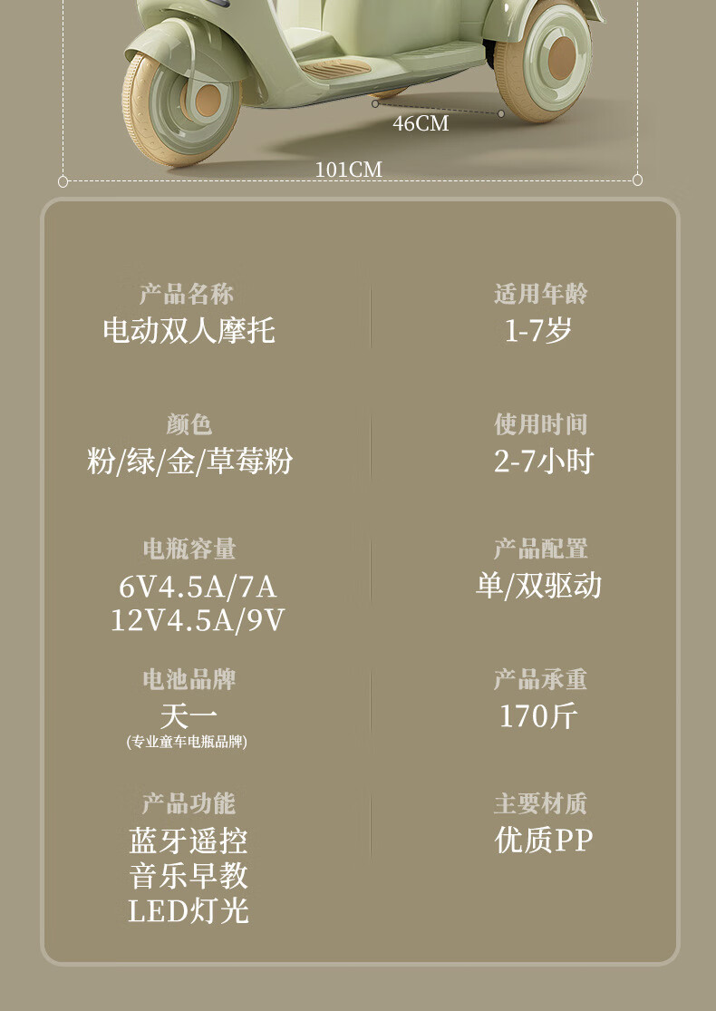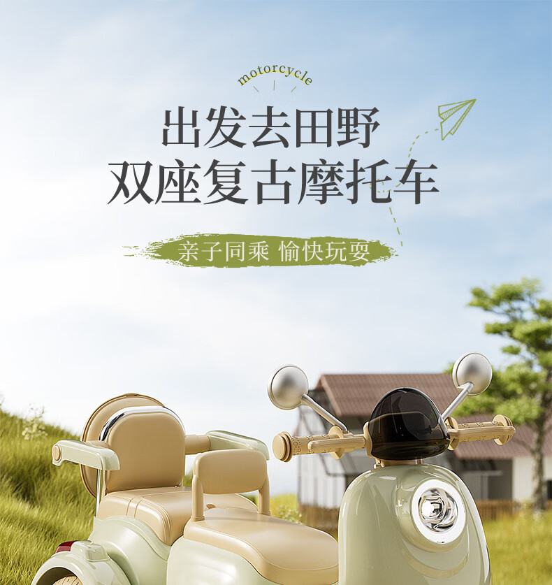 赟娅儿童电动摩托车可坐人遥控车充电三轮车男女孩双人玩具车电动童车 标准版 单驱电池+1h 3-10+岁电动摩托车玩具礼物