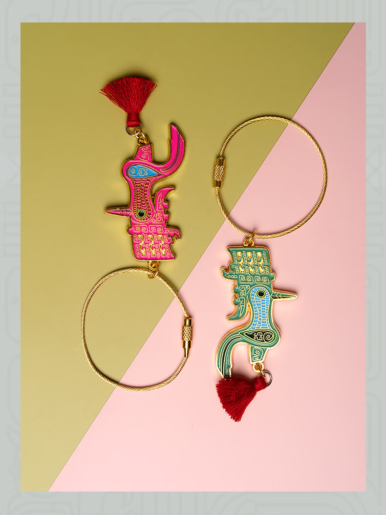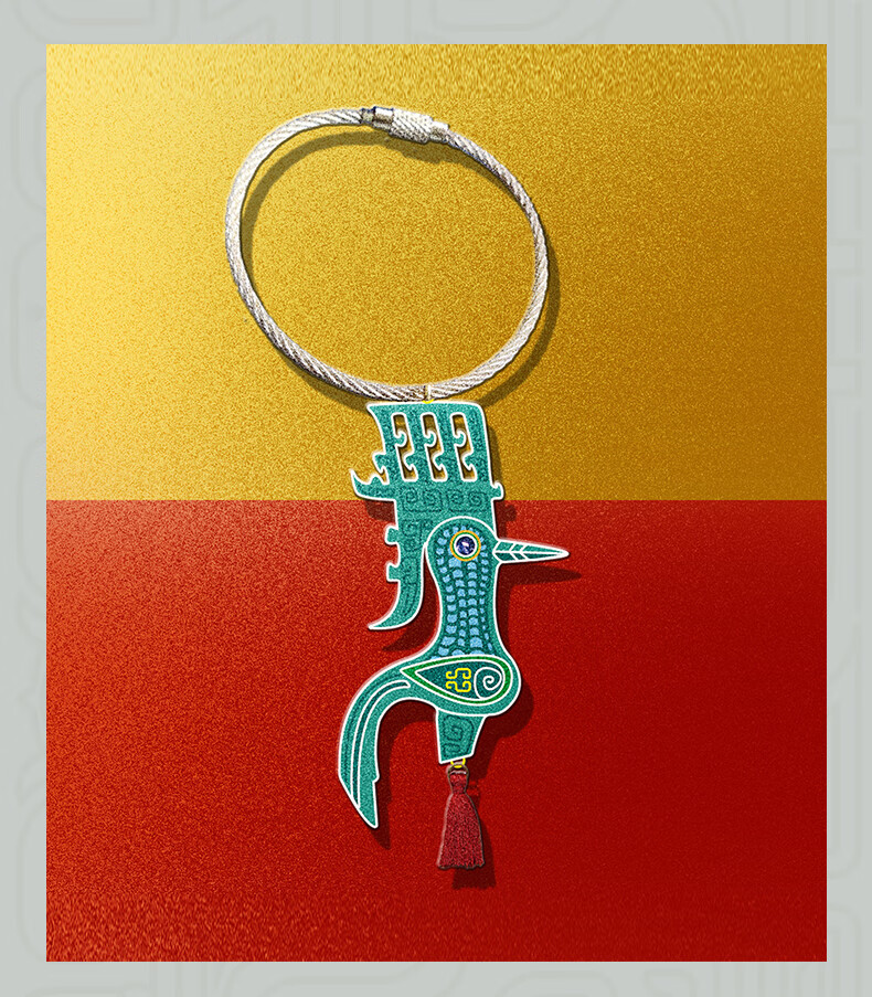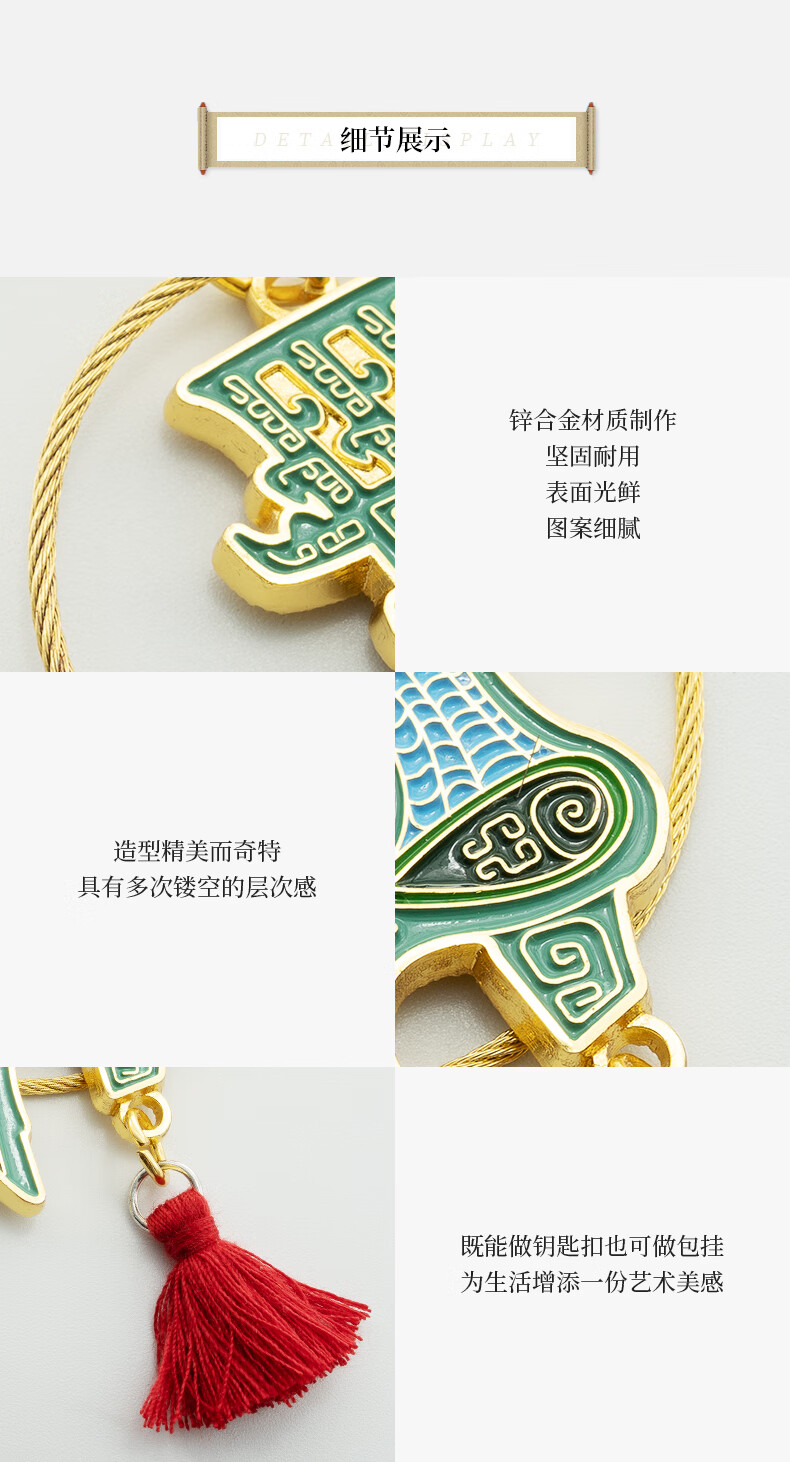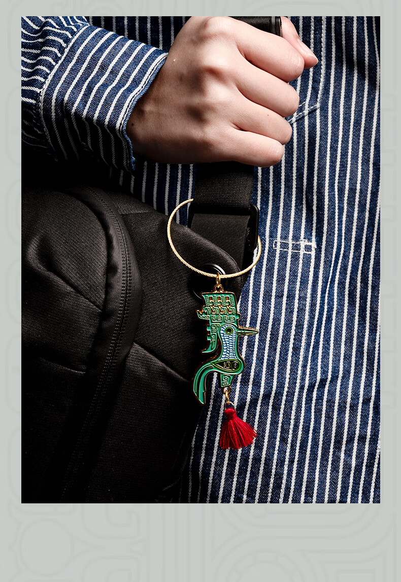 三星堆博物馆文创神鸟羽冠钥匙扣金属挂件旅游纪念品生日礼物送同学送朋友小礼物小礼品书包挂件伴手礼(包挂) 神鸟羽冠钥匙扣挂件绿色