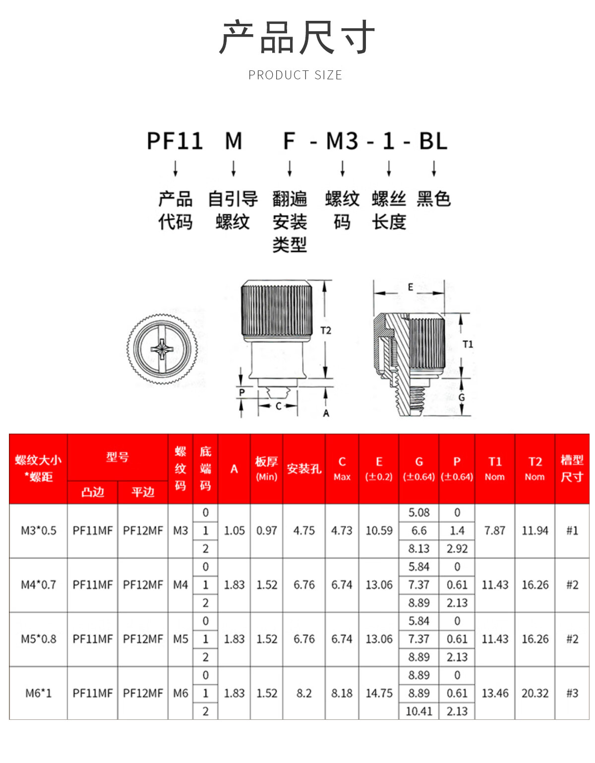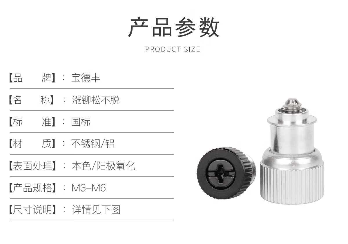 宝德丰涨铆松不脱弹簧螺钉PF11MF机柜面板组合压铆螺丝紧固钉M3M4M5M6 银色 PF11MF-M3-0[5只]