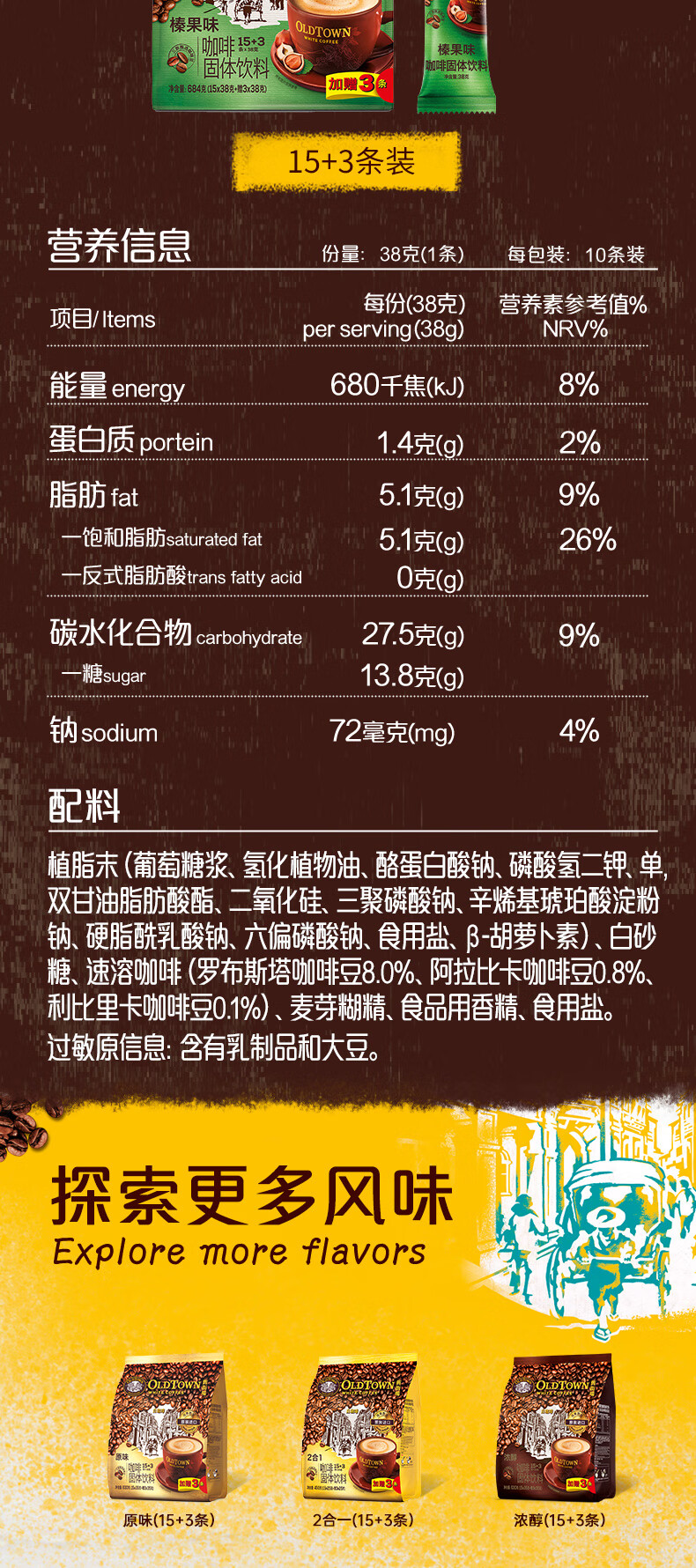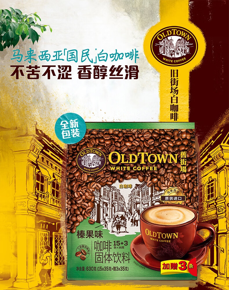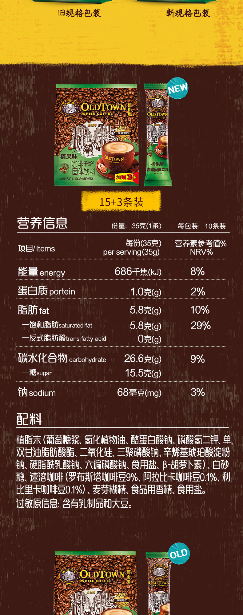 旧街场(OLDTOWN)榛果味白咖啡 35g*18条【临期清仓】