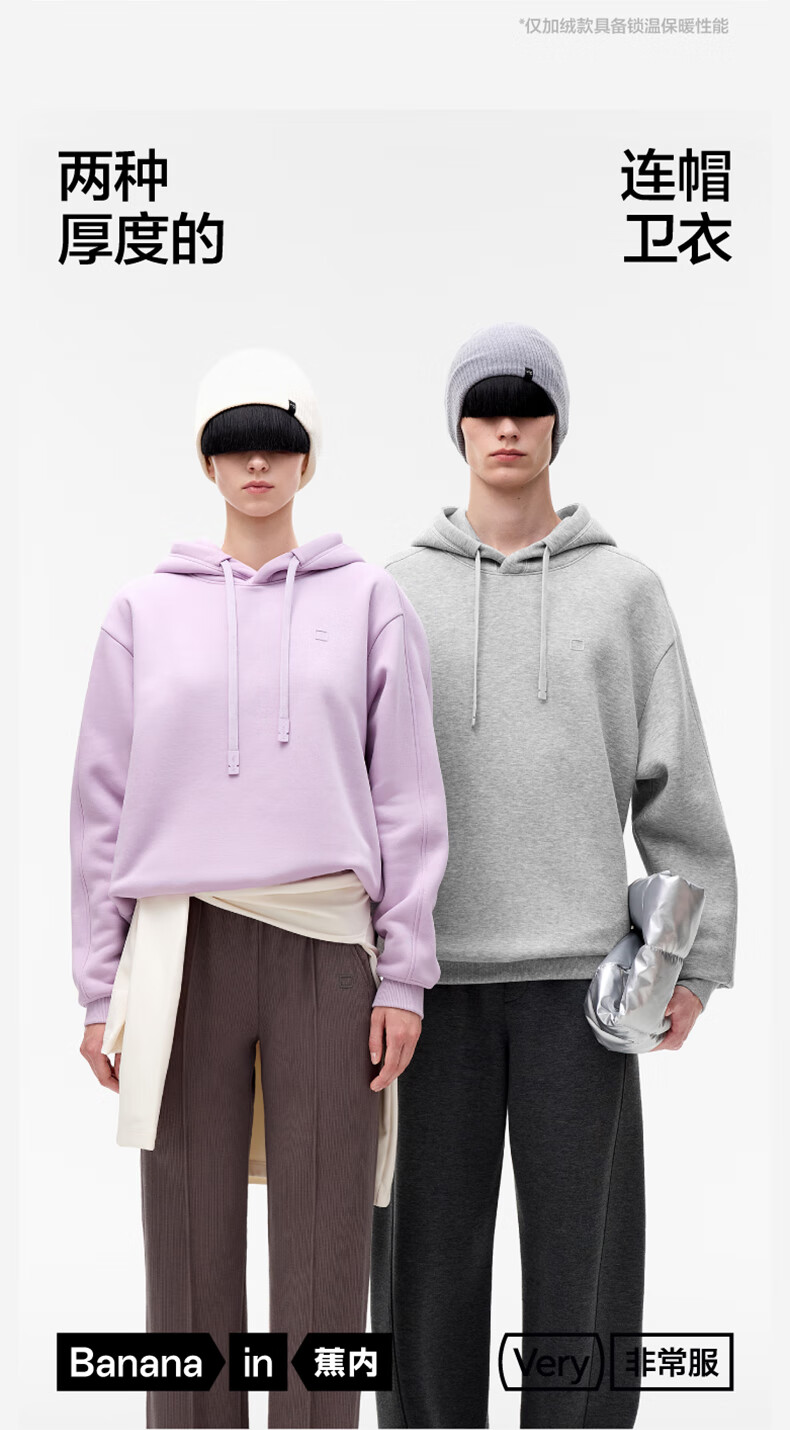 蕉内(Bananain)非常服503Relax男女同款连帽卫衣加绒休闲百搭透气秋冬新款男装 【男女同款加绒】雾霾紫 L