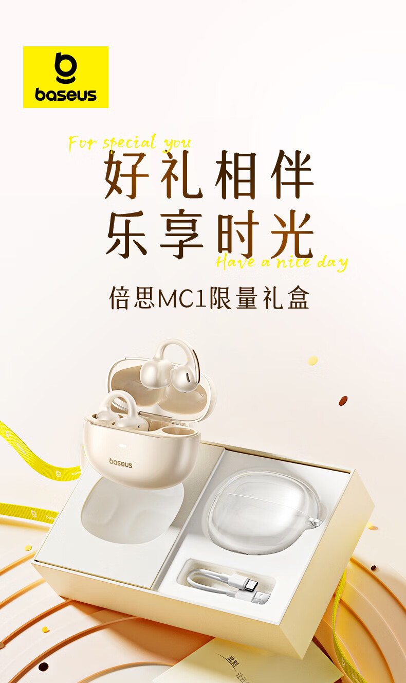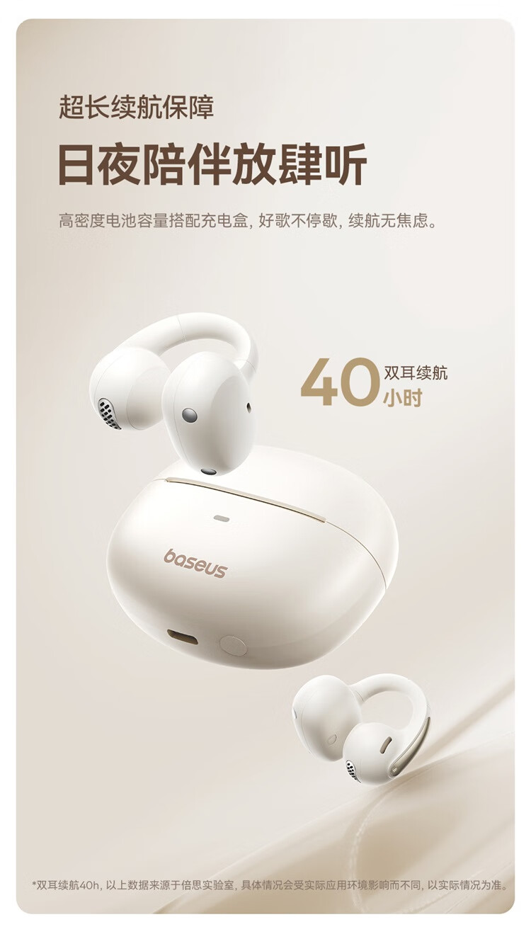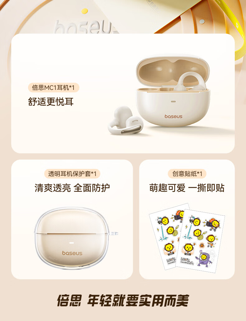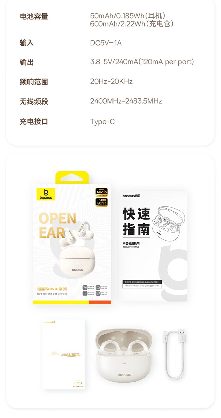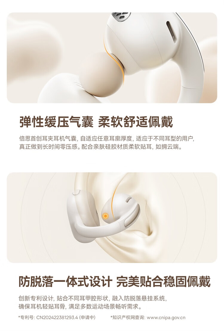 倍思MC1 AI蓝牙耳机【礼盒装赠耳机套】耳夹式开放式小云朵不入耳运动节日礼物适用于苹果华为