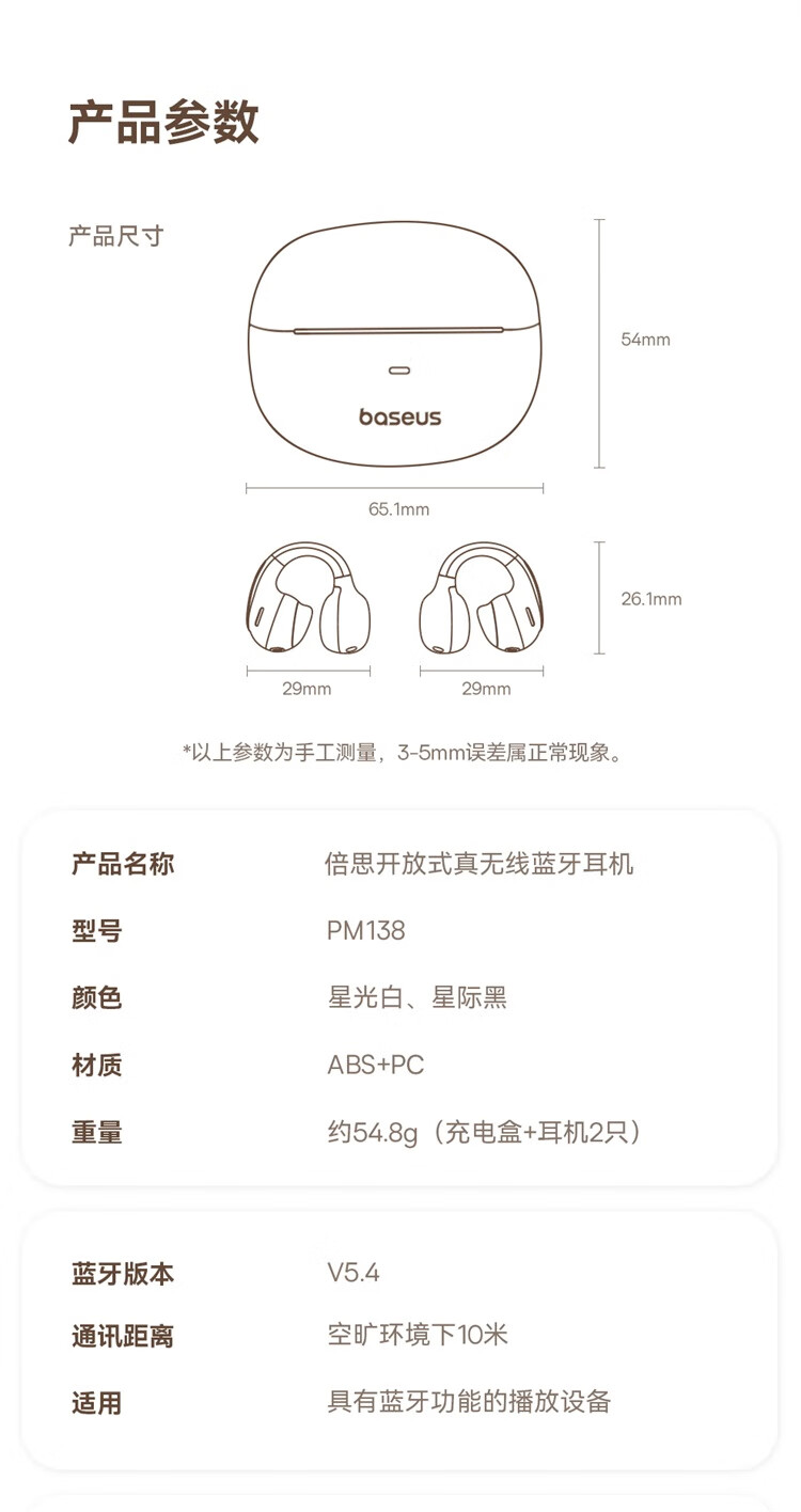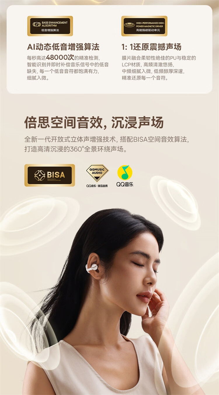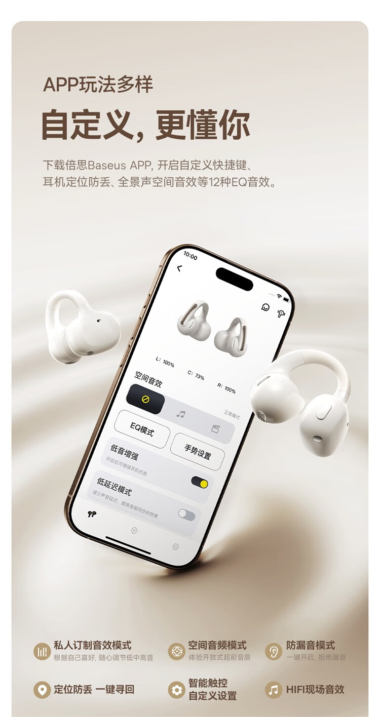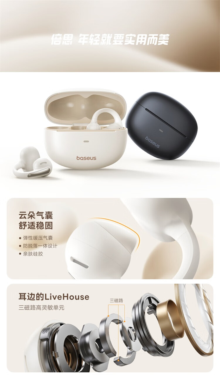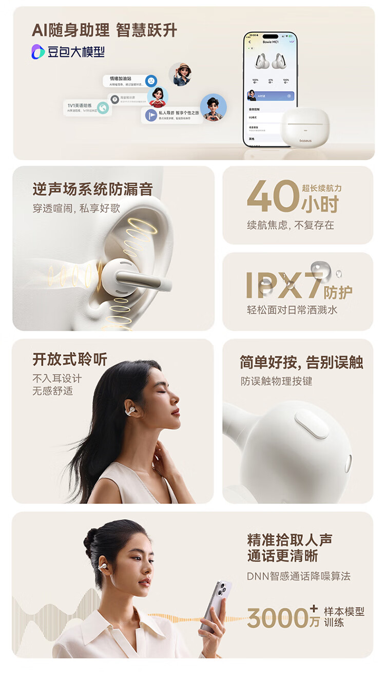 倍思MC1 AI蓝牙耳机【礼盒装赠耳机套】耳夹式开放式小云朵不入耳运动节日礼物适用于苹果华为