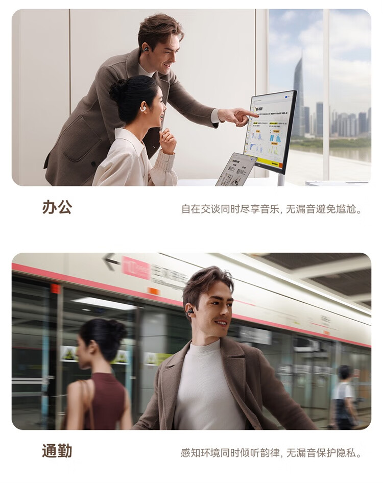 誉沐【顶配双喇叭|音质0差评】挂耳式开放不入耳无线骨传导运动蓝牙耳机长续航高音质半入耳降噪跑步 高雅黑|4麦高清通话-60h续航