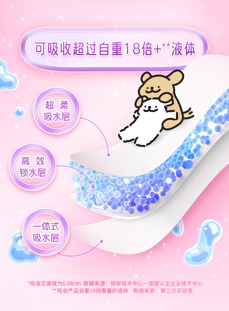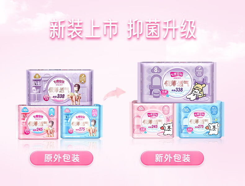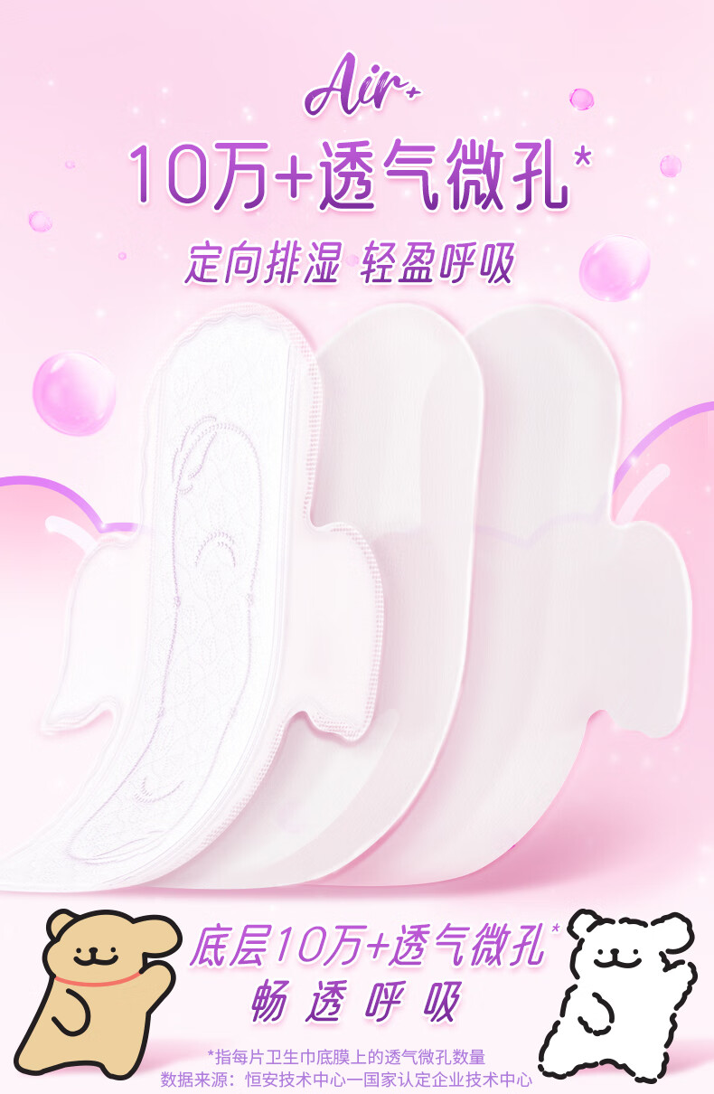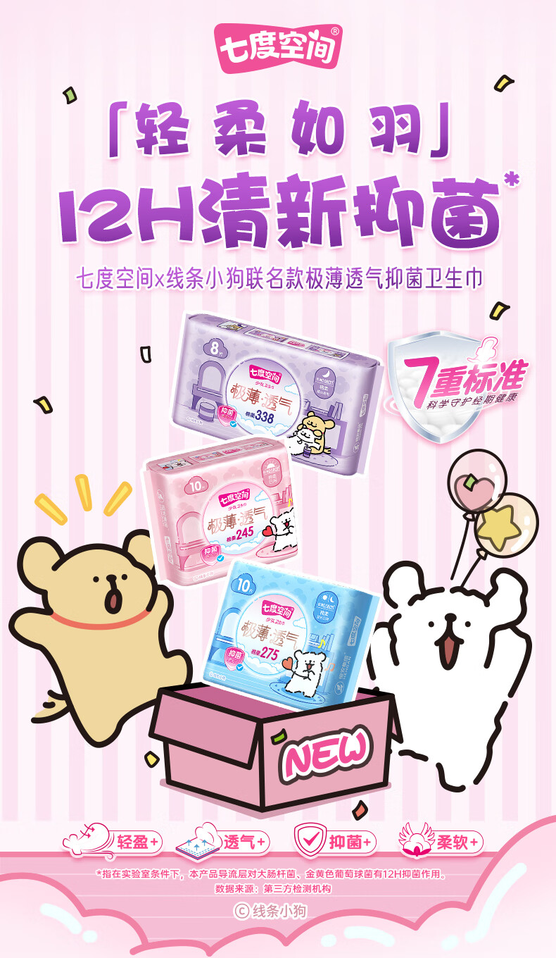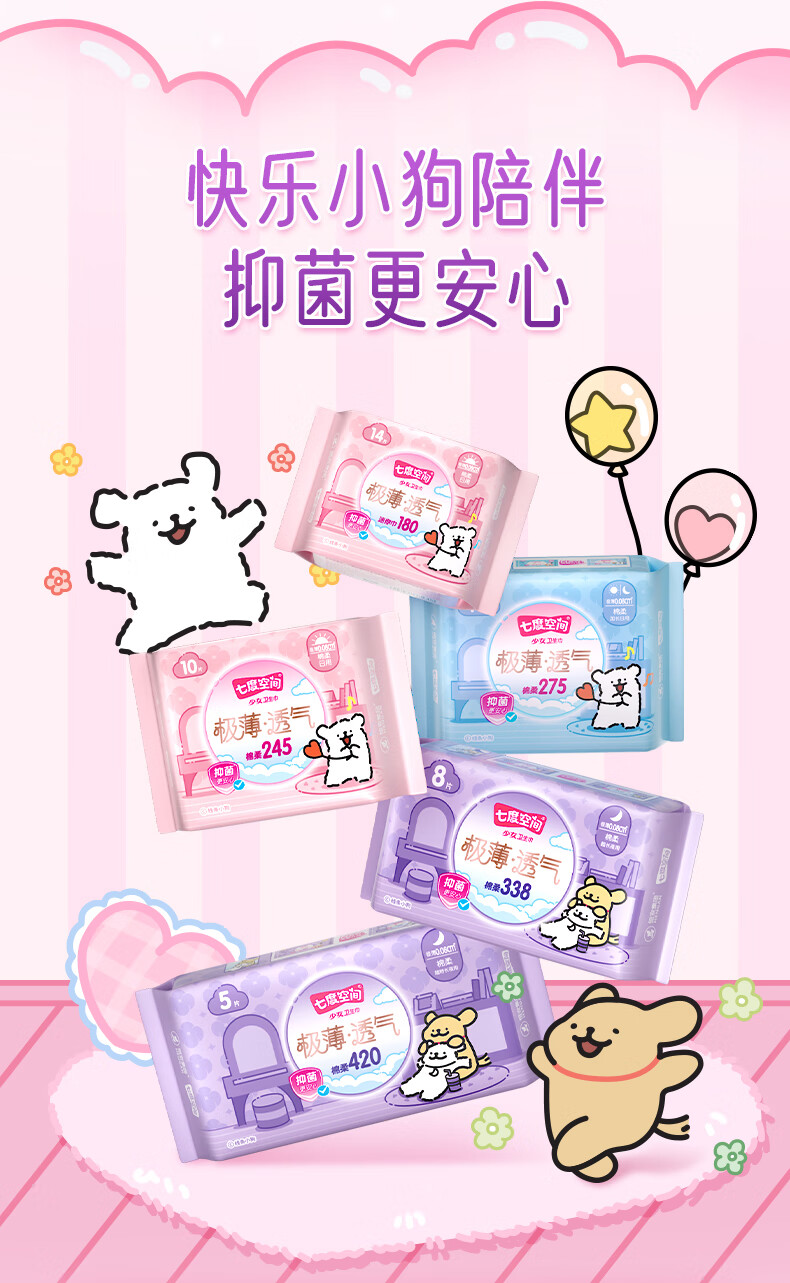 七度空间极薄透气线条小狗IP款抑菌加长日用组套275mm30片【新国标认证】