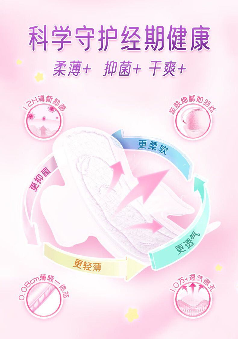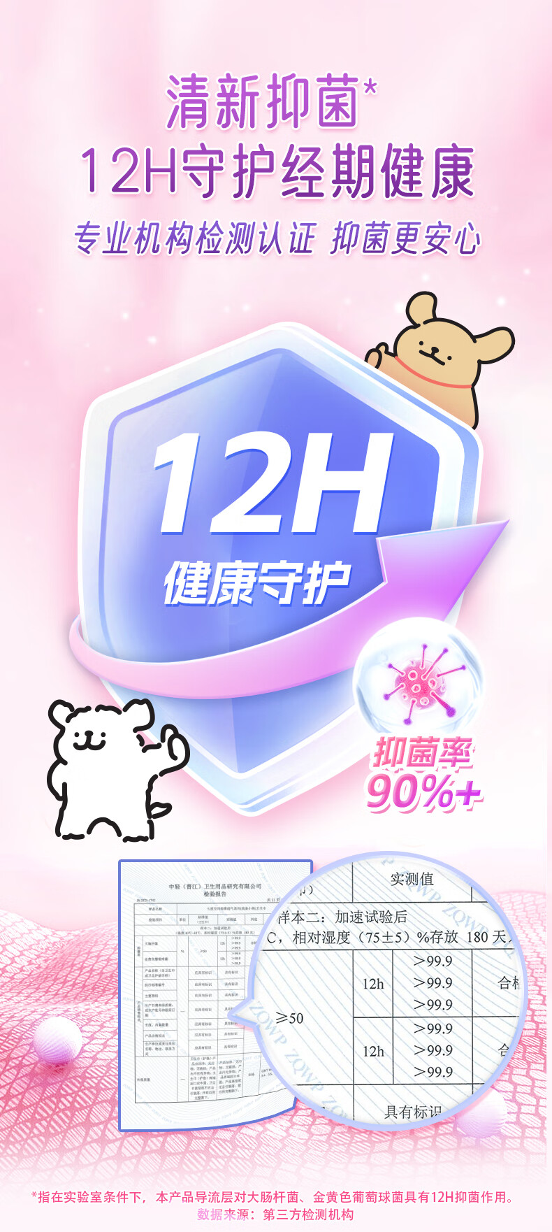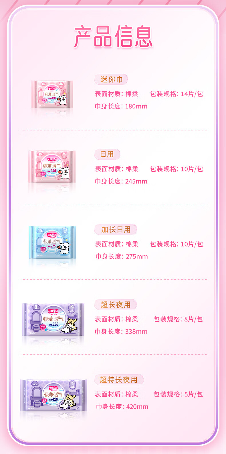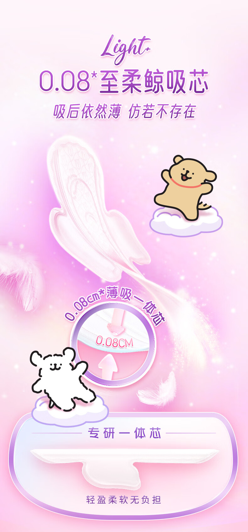 七度空间极薄透气线条小狗IP款抑菌加长日用组套275mm30片【新国标认证】
