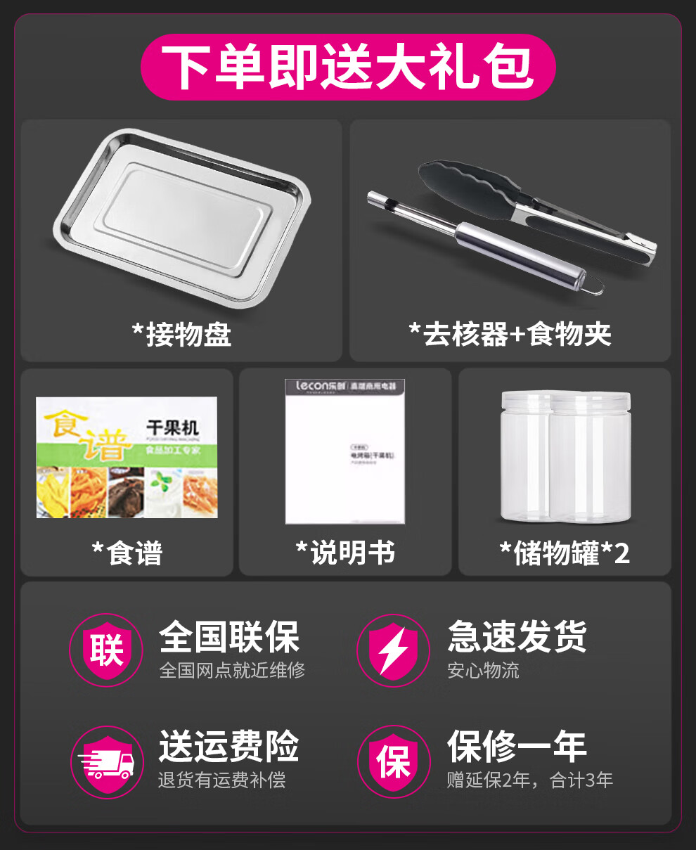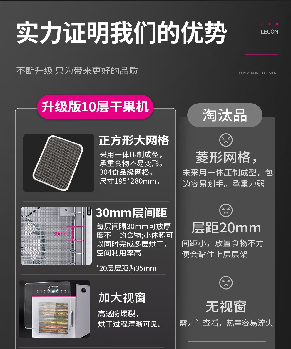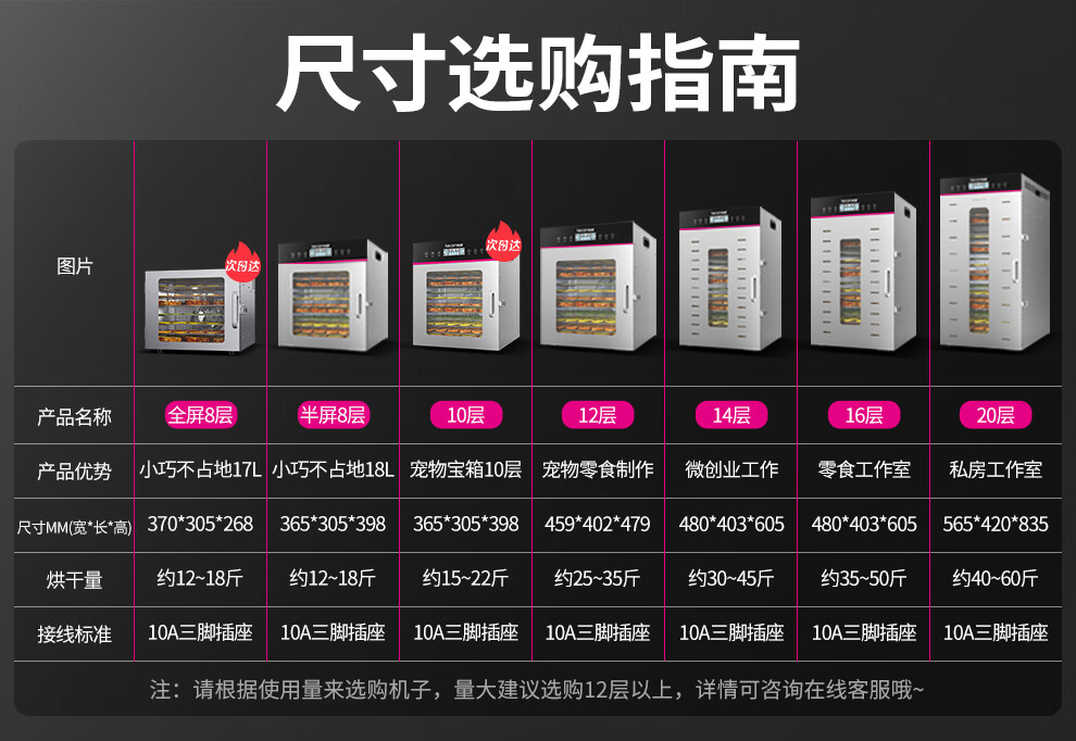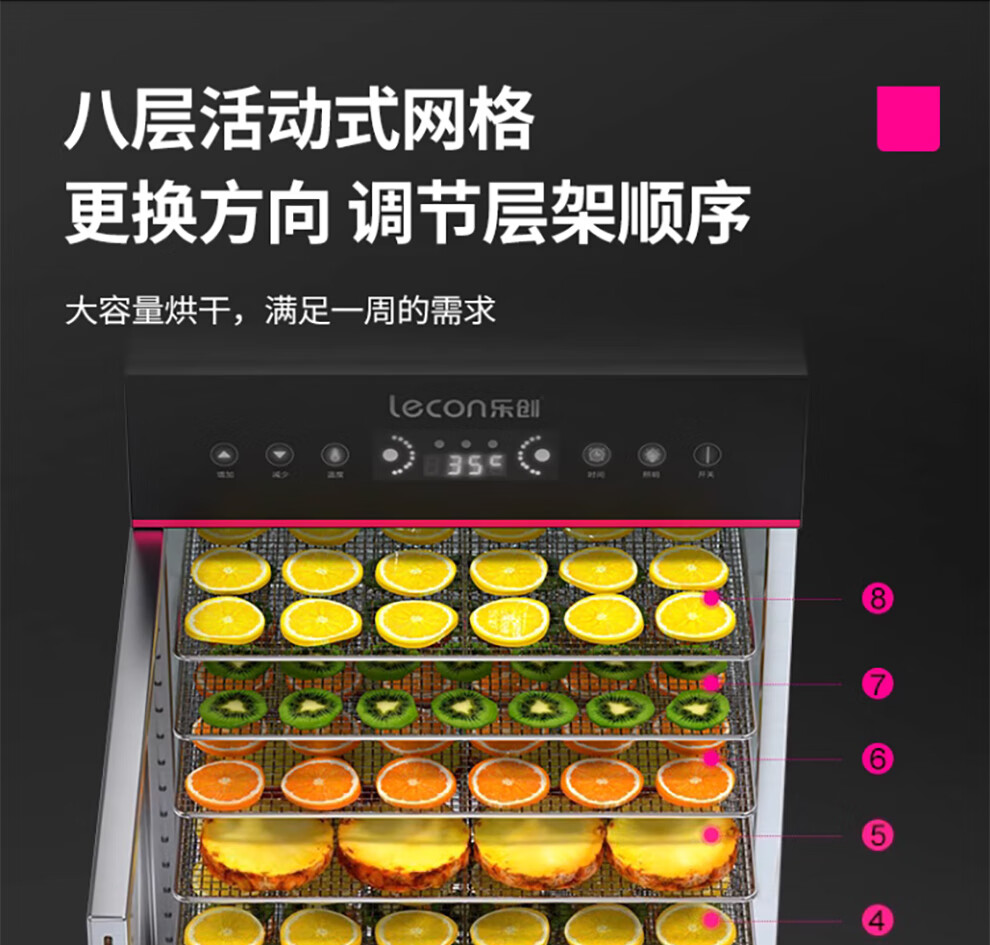 乐创(lecon)干果机商用家用水果零食烘干机10层宠物狗狗冻干食品风干机辣椒药材肉干蔬菜全自动风干机 【25年新款】18层双风机层距20mm