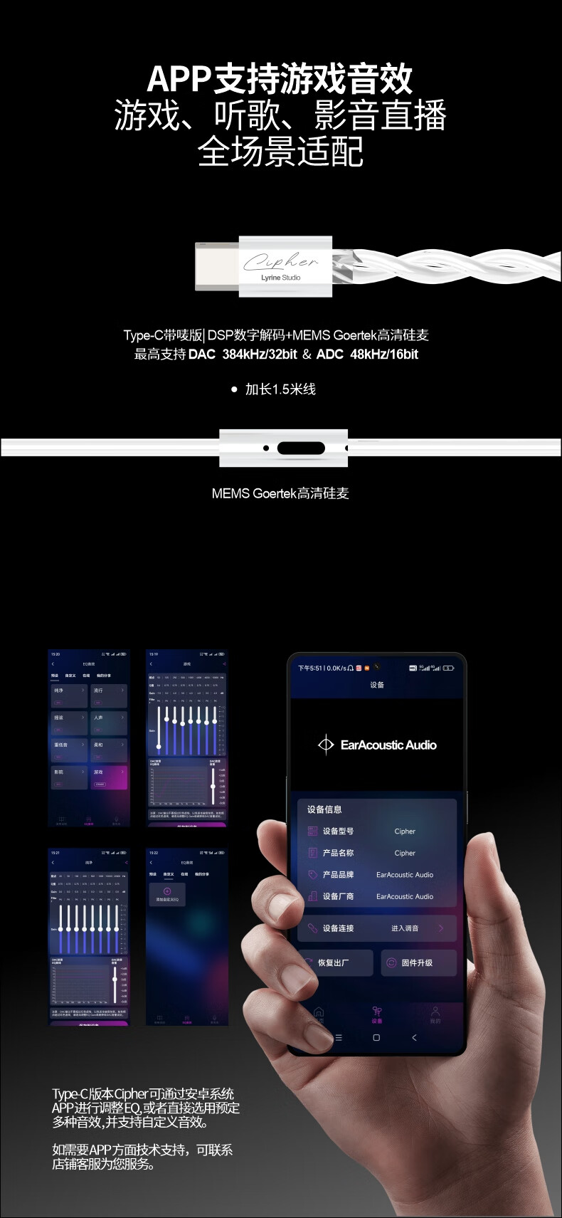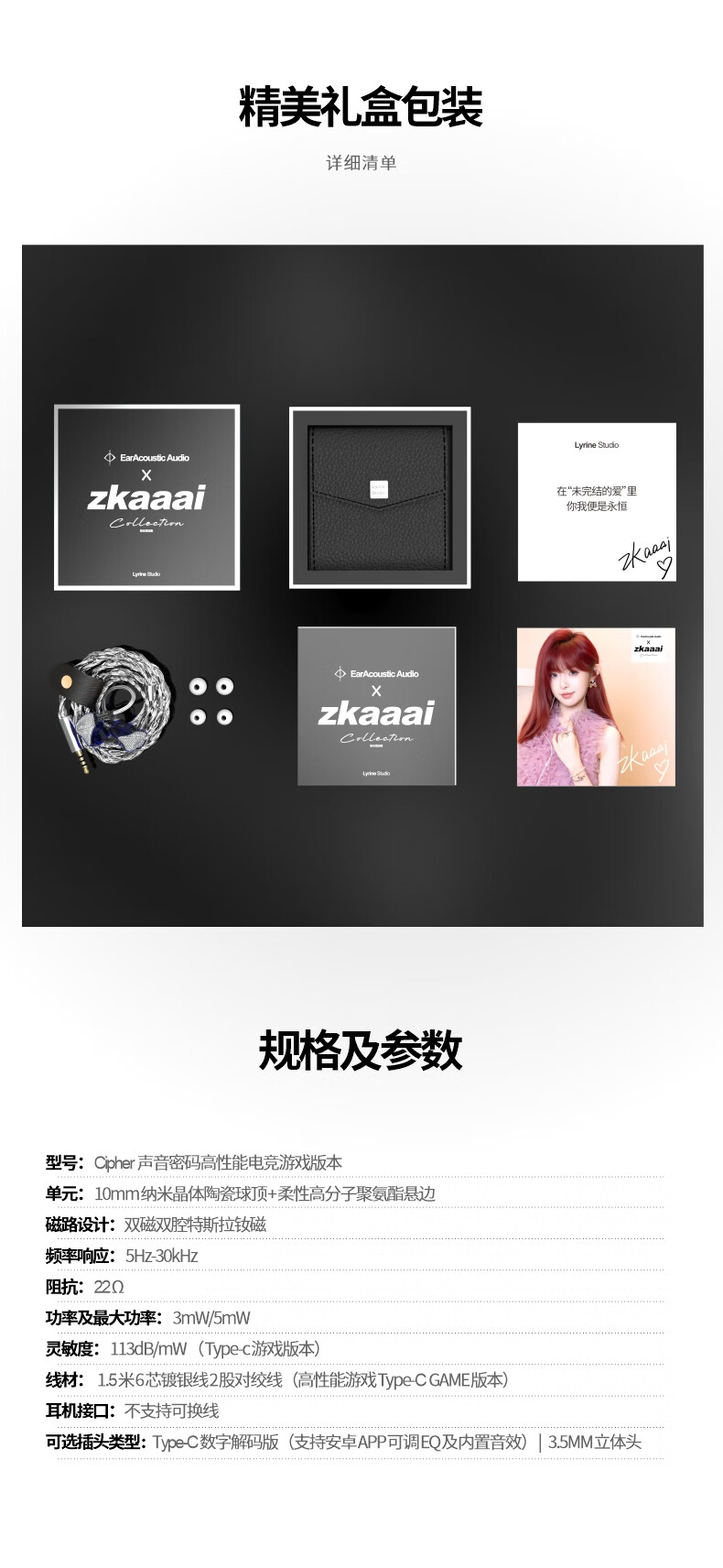 丽弦 Cipher【zkaaai联名限定】电竞游戏耳机入耳式主播直播听声辩位和平精英TYPE-C带麦DSP声卡耳麦 CIPHER电竞游戏耳机TYPE-C口带麦