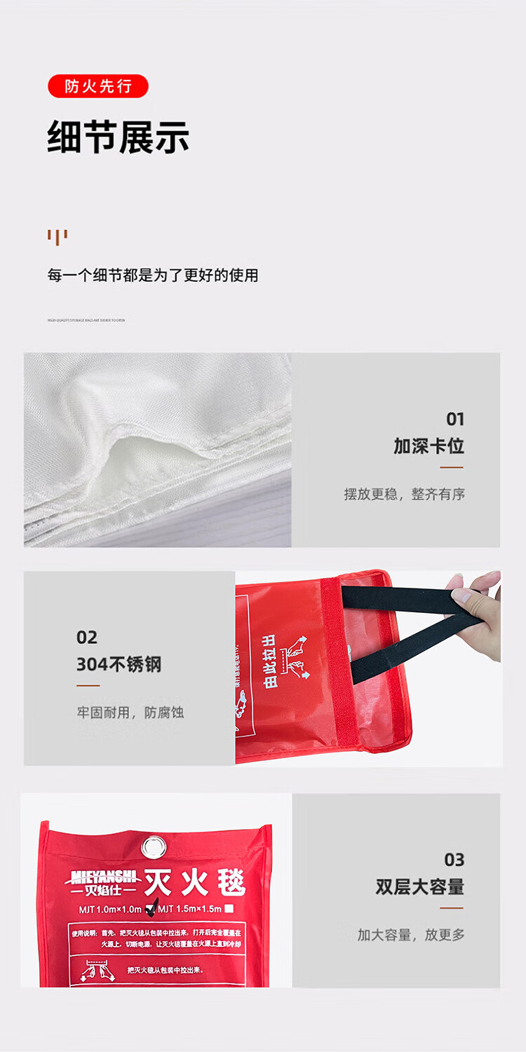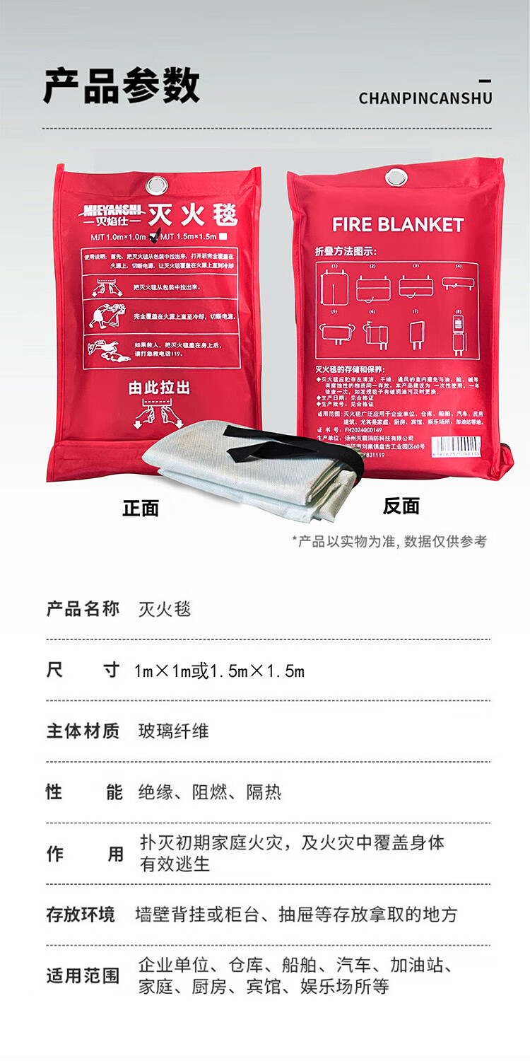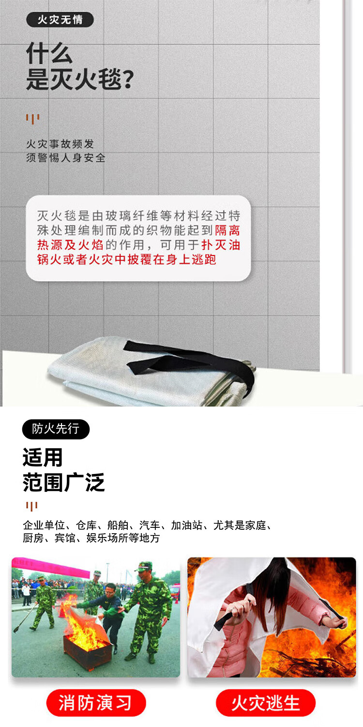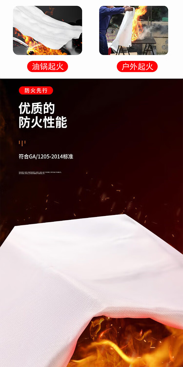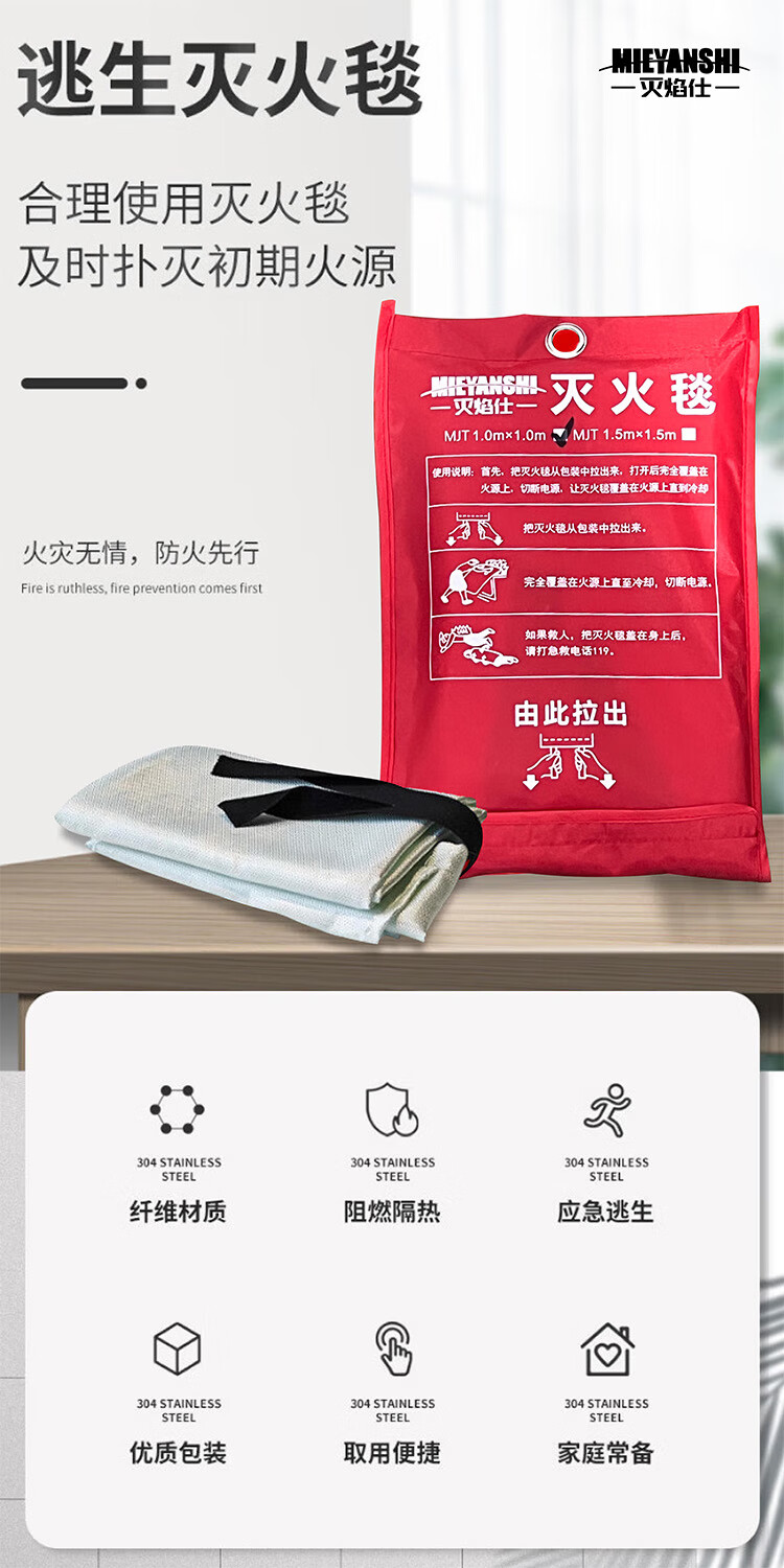 灭焰仕灭火毯玻璃纤维防火毯家庭厨房食堂用灭火器配套逃生毯1.5M 1袋