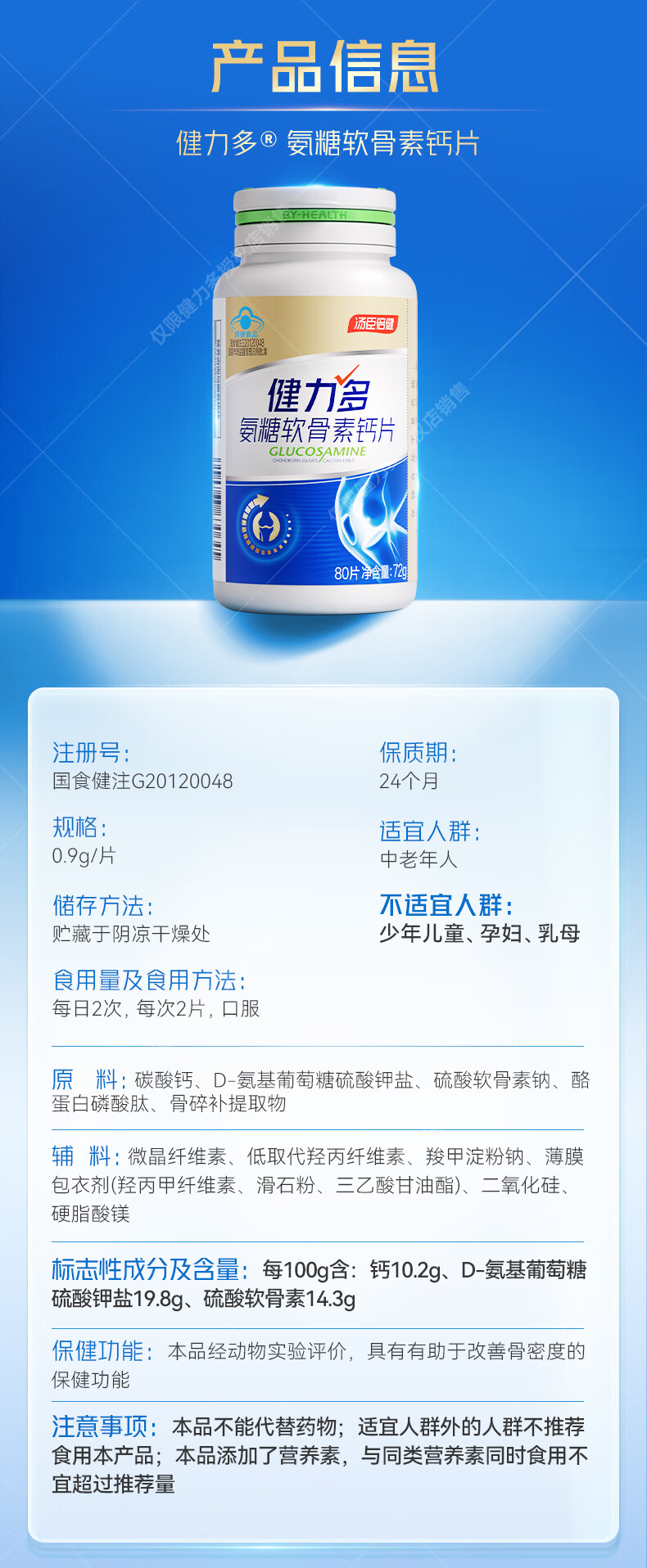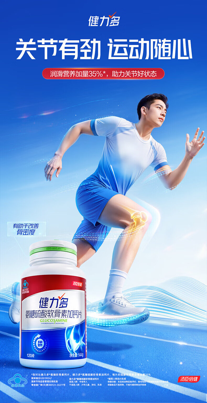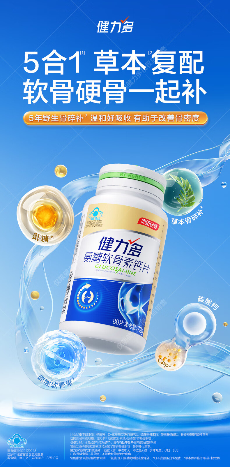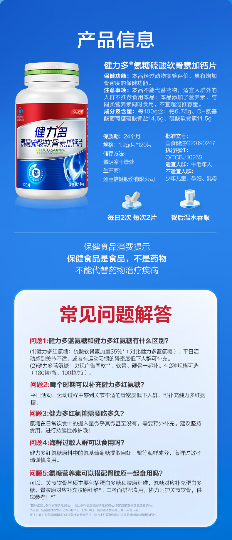 健力多汤臣倍健氨糖硫酸软骨素钙片 中老年人补钙关节膝盖 高钙片保健品 【288片72天量】红氨糖48片*6瓶