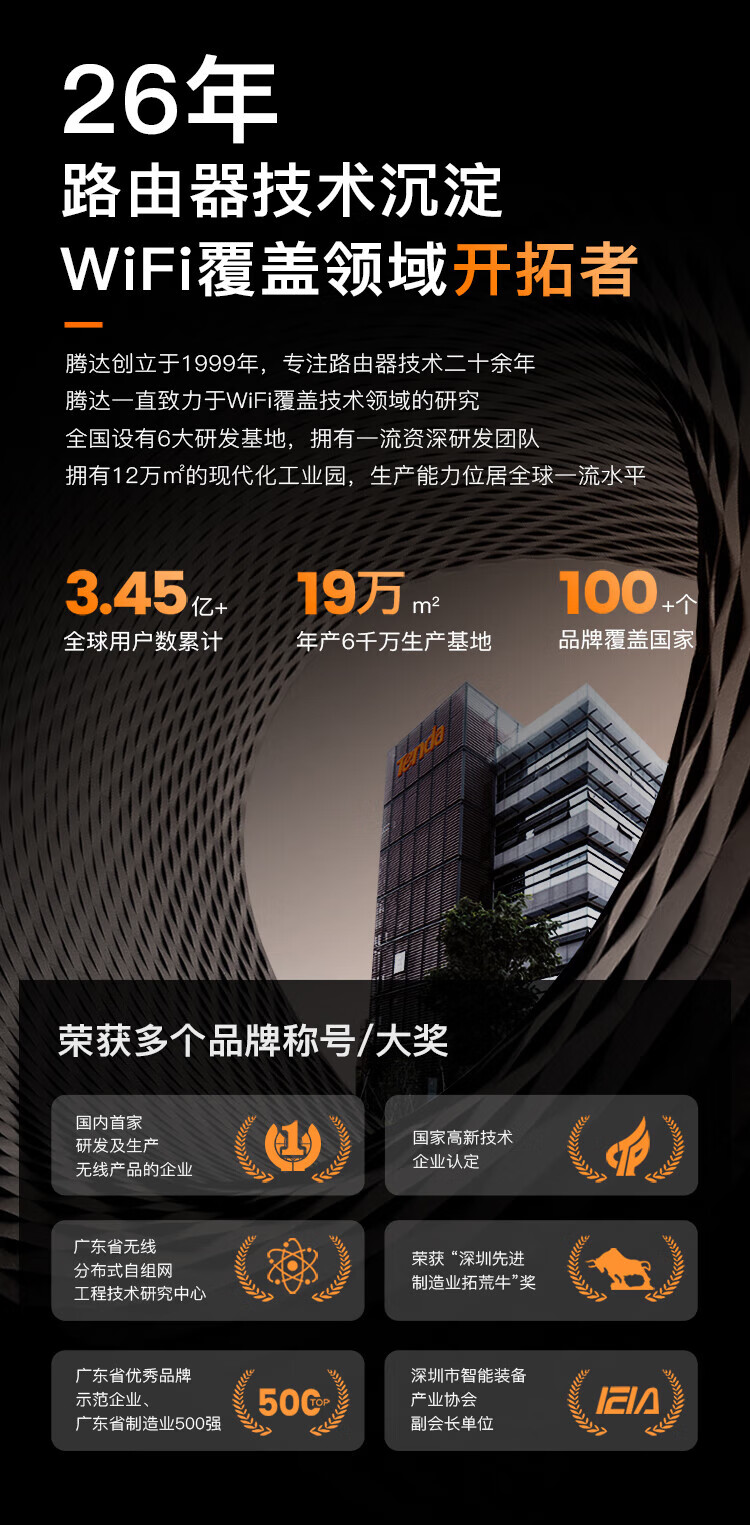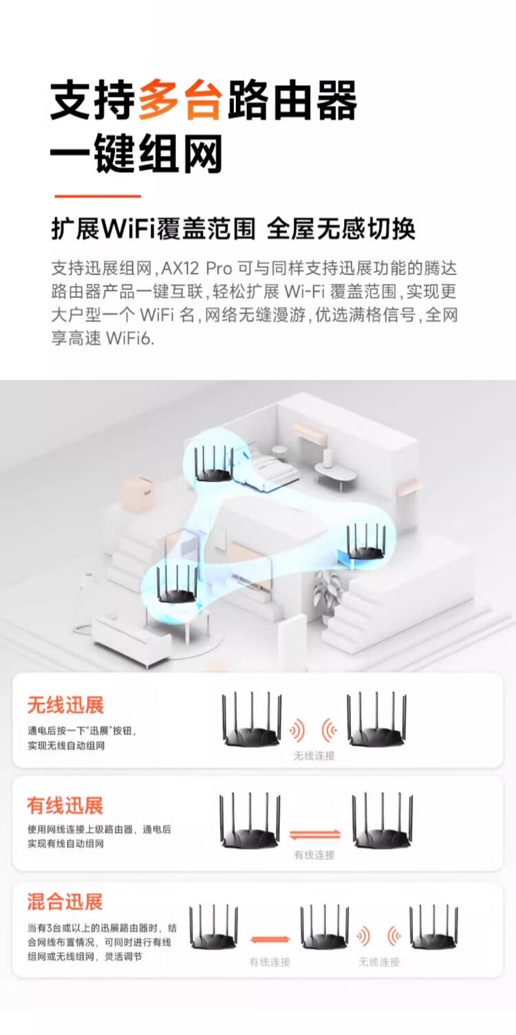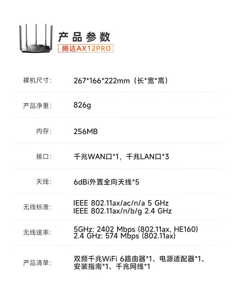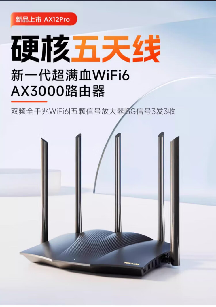 Tenda腾达路由器千兆WiFi6高速满血穿墙王信号增强无线家用Mesh全屋WiFi全千兆网口路由器AX12Pro