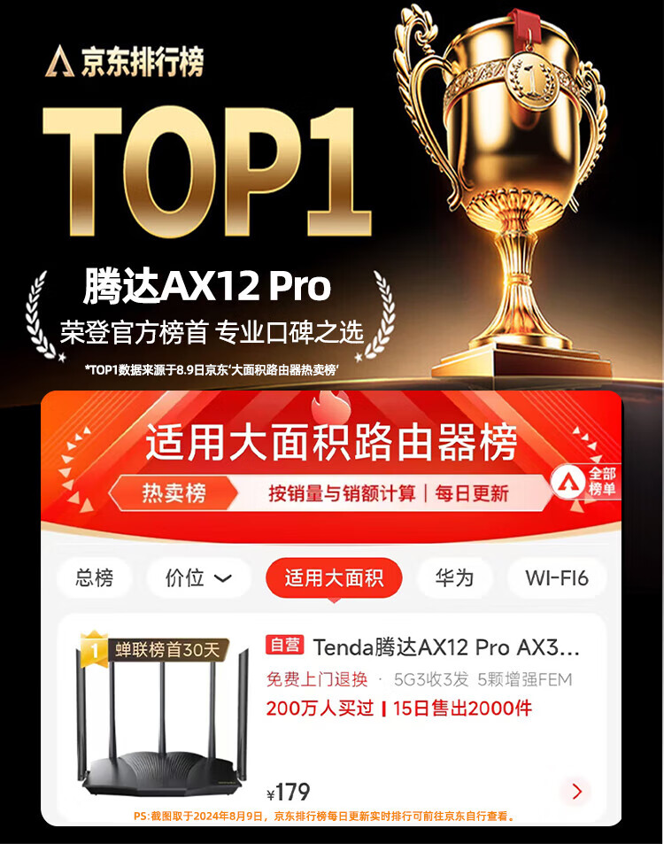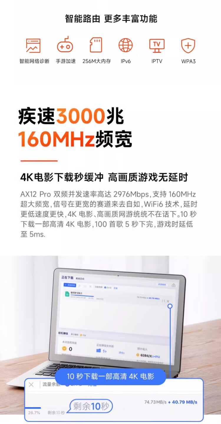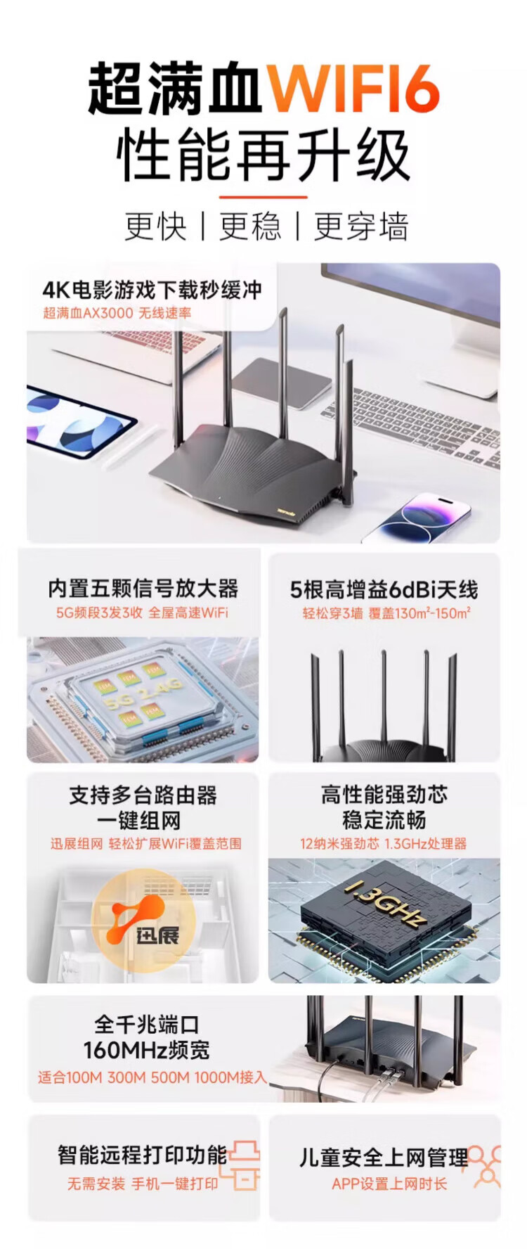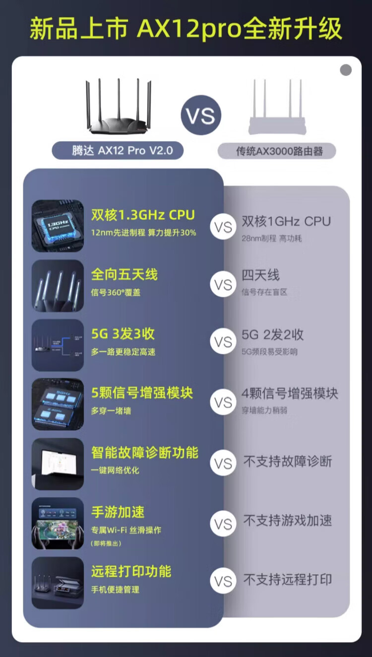 Tenda腾达路由器千兆WiFi6高速满血穿墙王信号增强无线家用Mesh全屋WiFi全千兆网口路由器AX12Pro