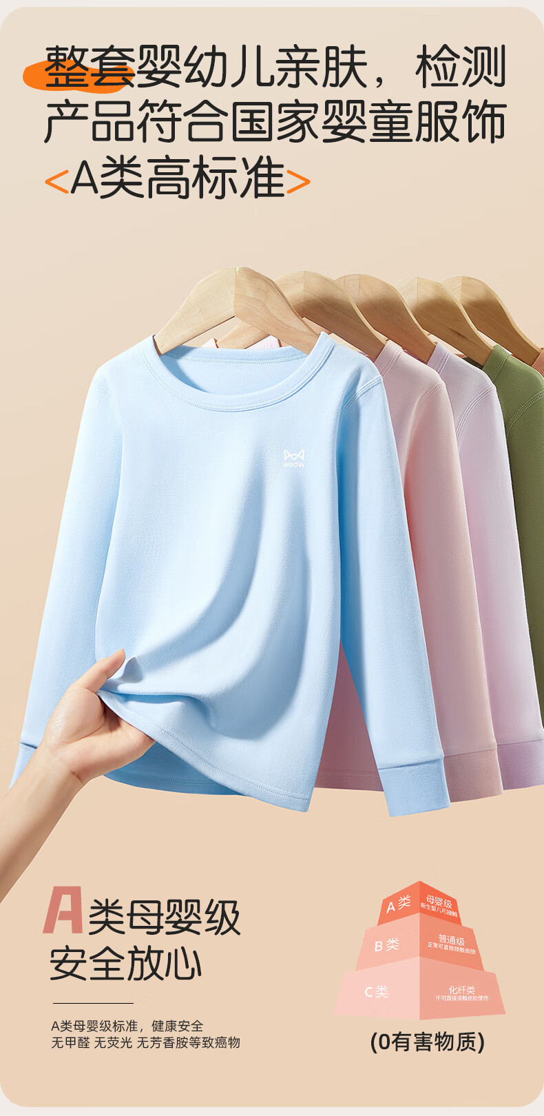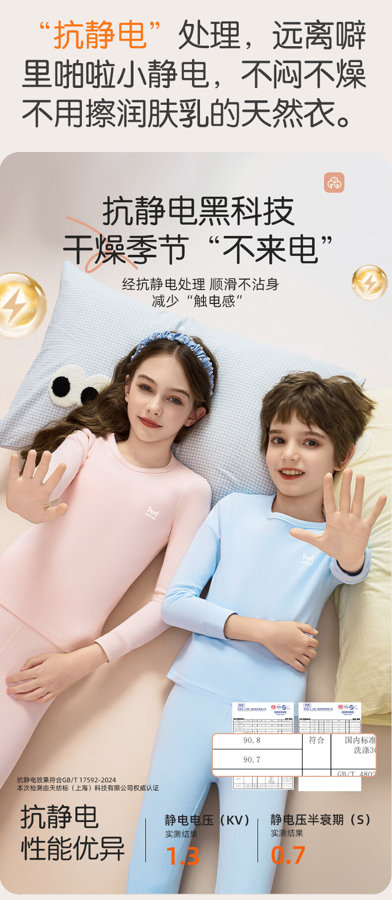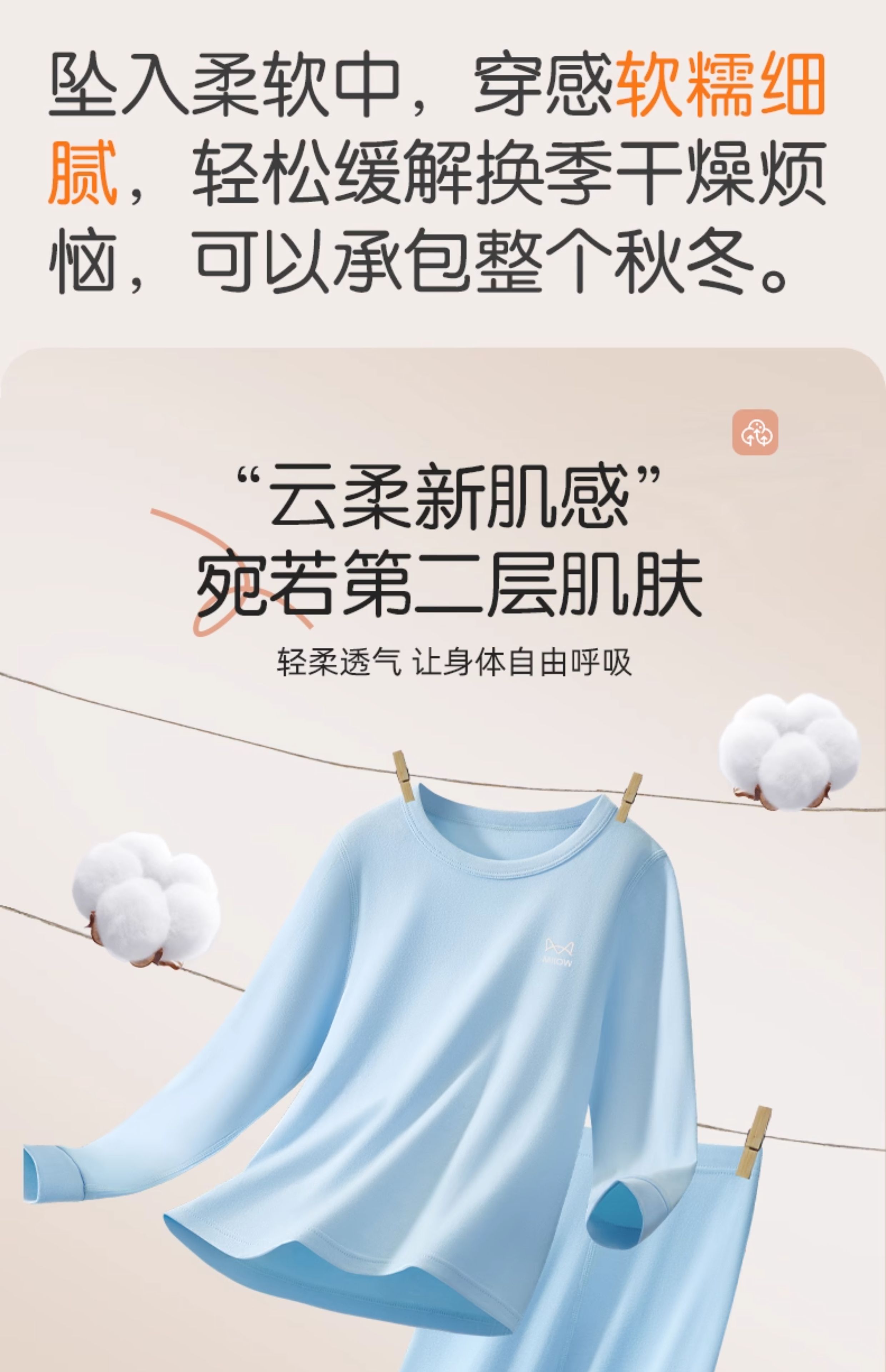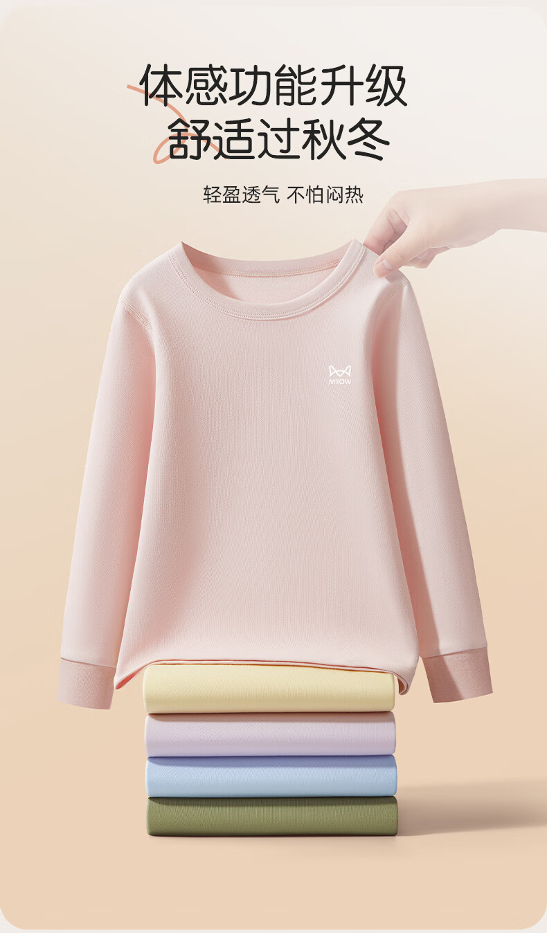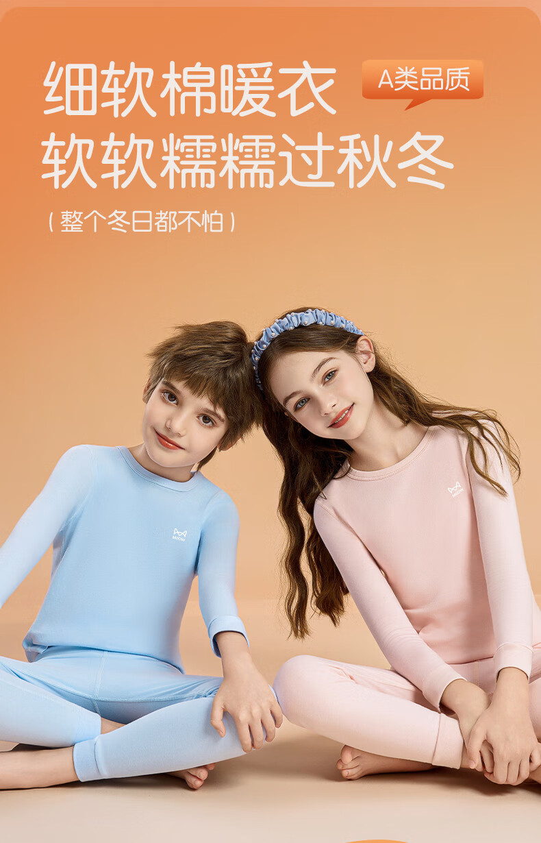 猫人(MiiOW)儿童保暖内衣套装女童纯棉秋衣秋裤a类男孩2025秋冬打底线衣 天蓝色 110 建议体重20-31斤