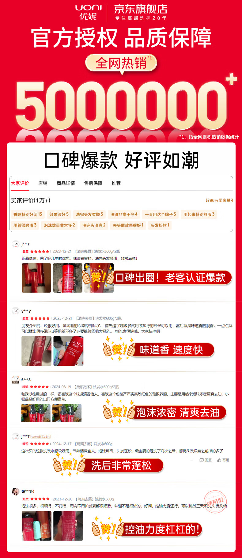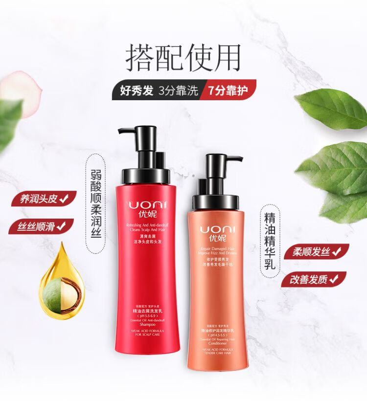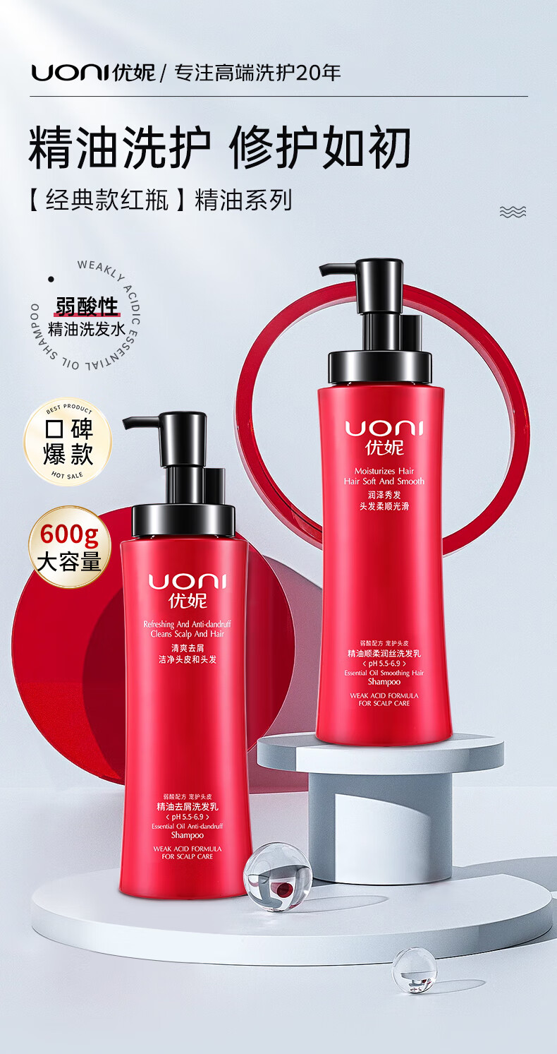 优妮精油洗发水大瓶套装洗发露去屑控油柔顺修护乳液洗头膏留香男女士 【清爽去屑】洗发水600ml*2瓶 【经典款红瓶】