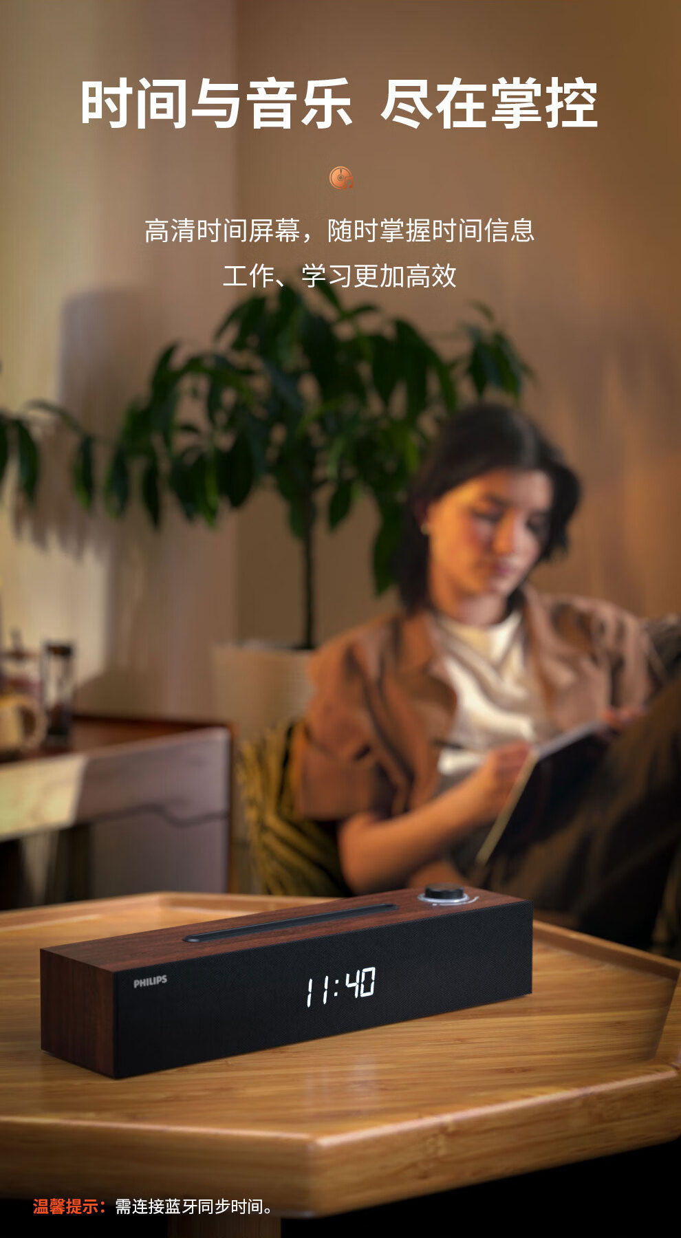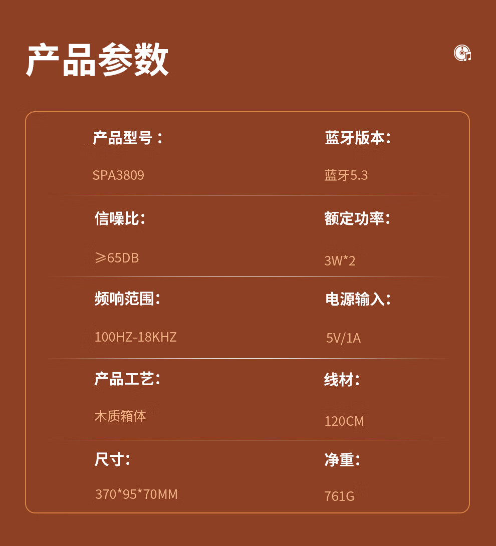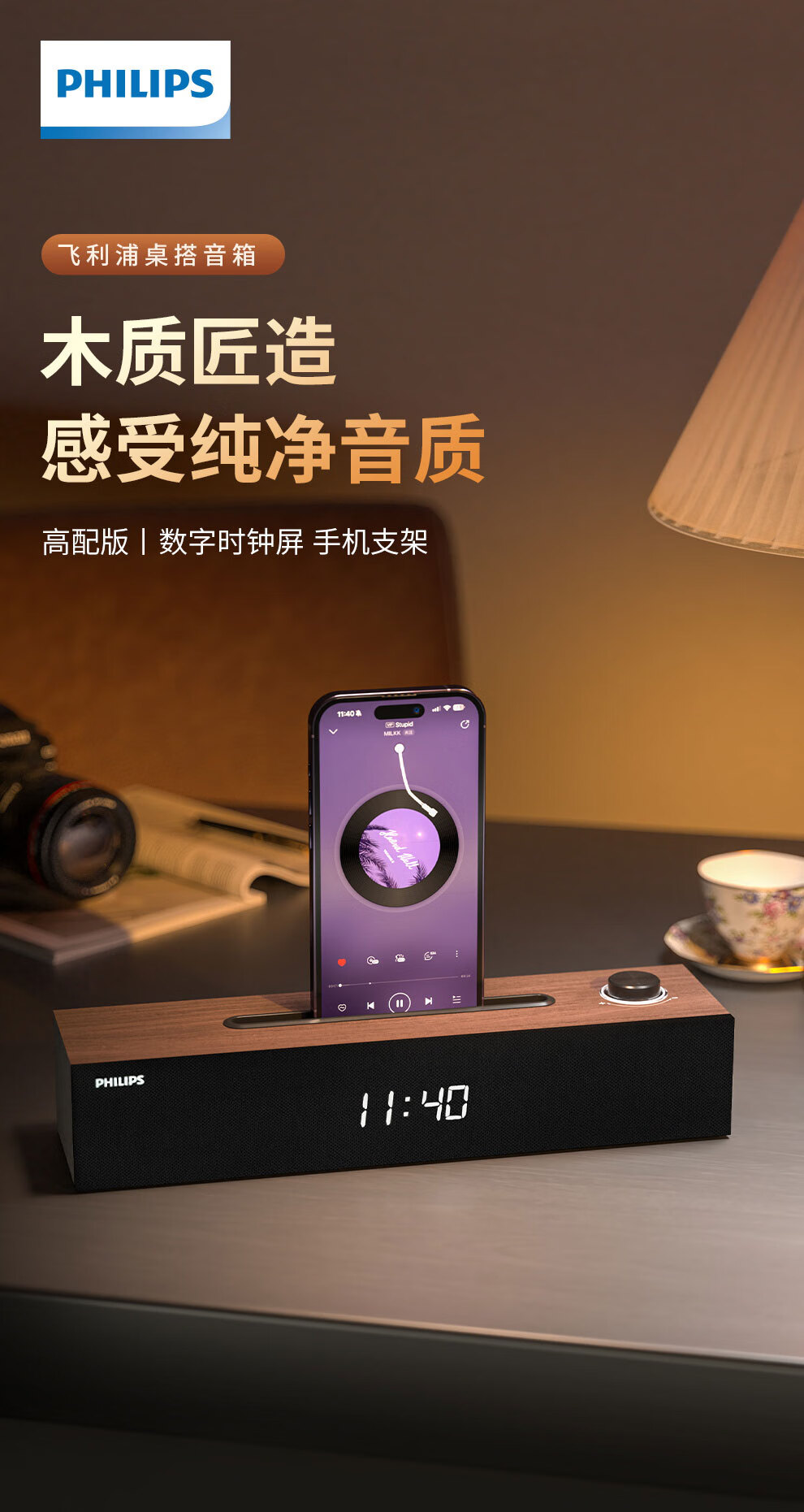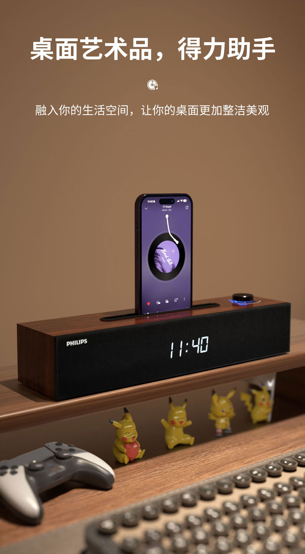 飞利浦(PHILIPS)SPA3809 蓝牙音箱 电脑音响 家用桌面台式机笔记本音箱 重低音 木质时钟音箱