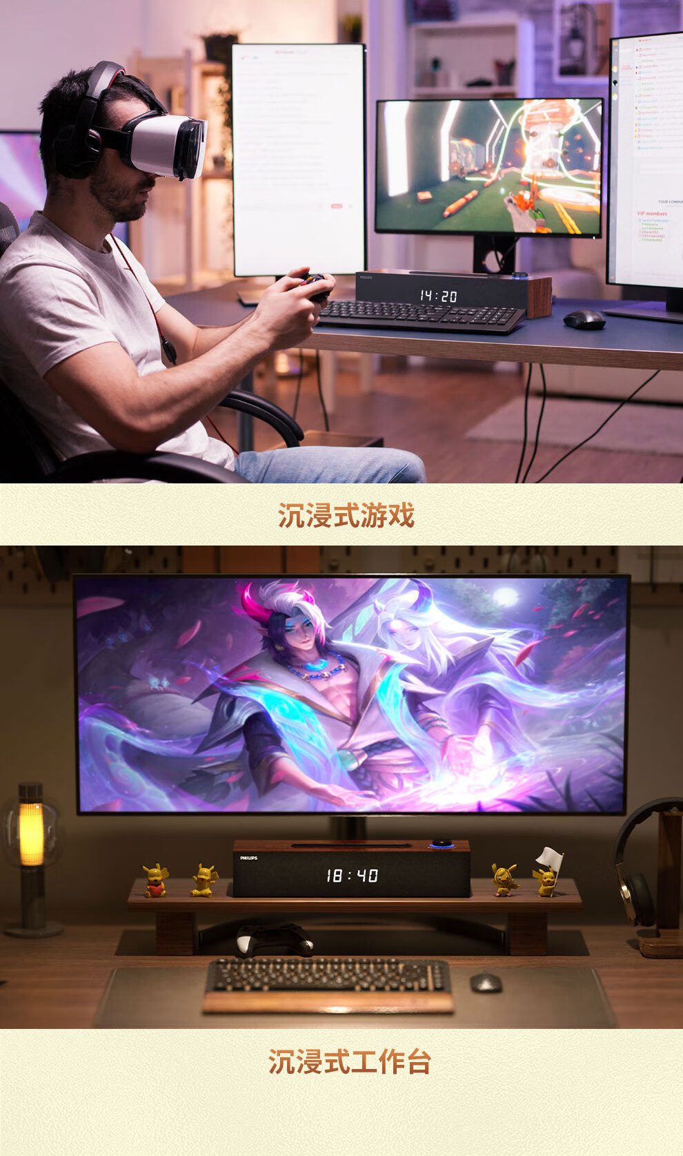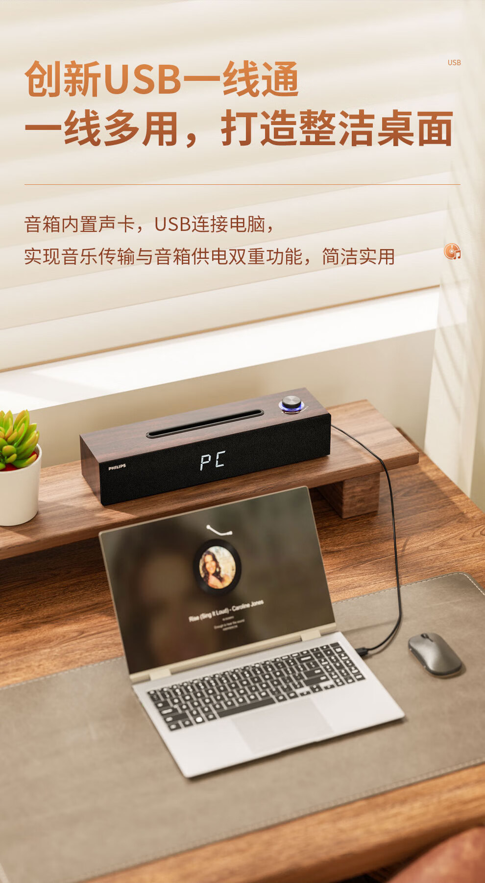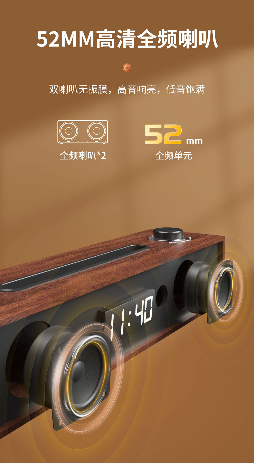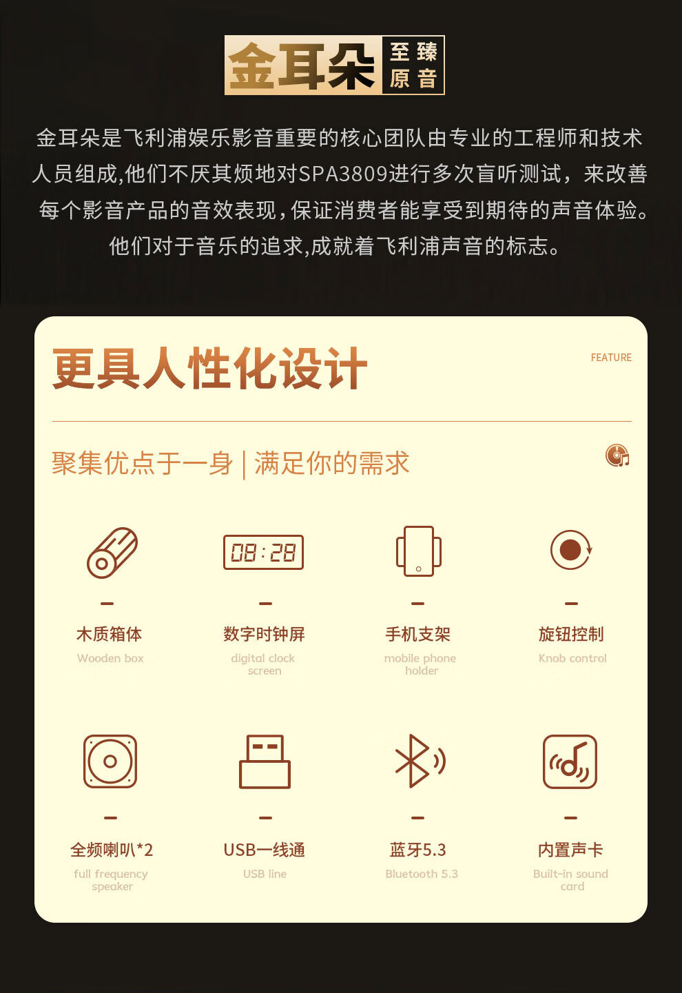 飞利浦(PHILIPS)SPA3809 蓝牙音箱 电脑音响 家用桌面台式机笔记本音箱 重低音 木质时钟音箱