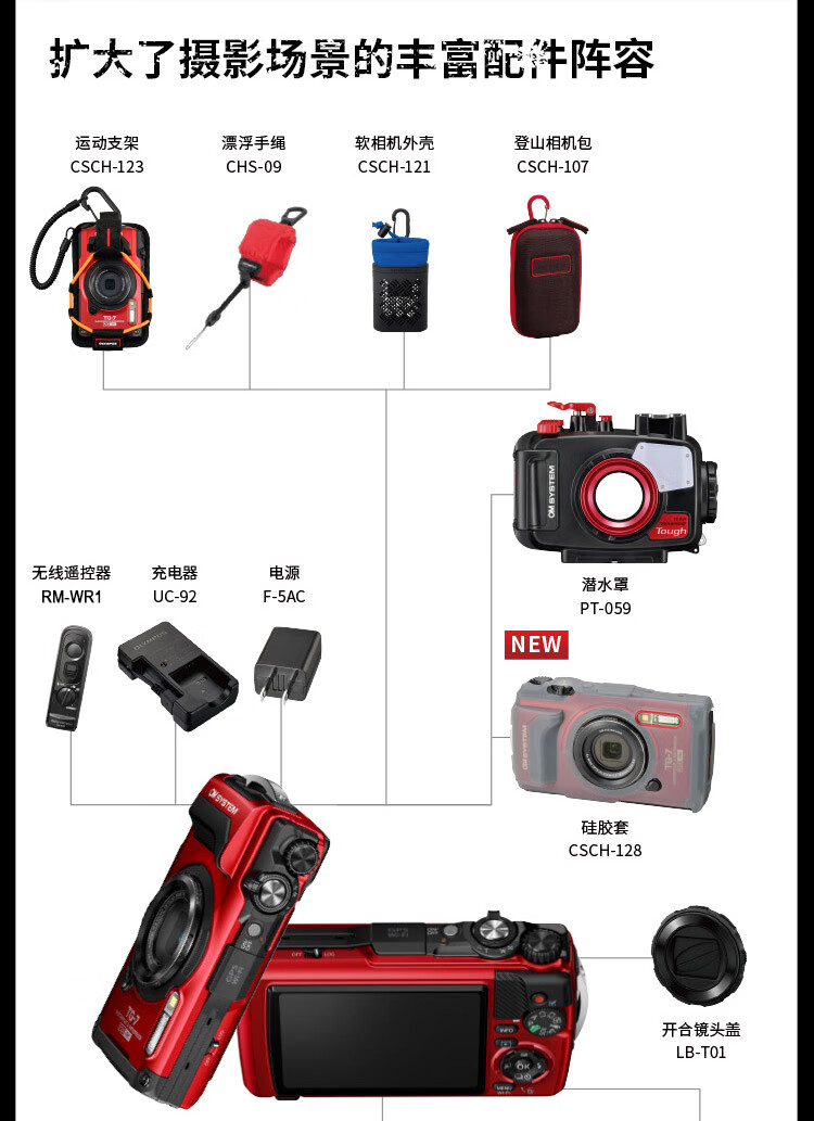 奥之心TG-7 数码相机 多功能运动相机 Tough照相机 六防卡片机 微距潜水 户外旅游 4K视频 红色