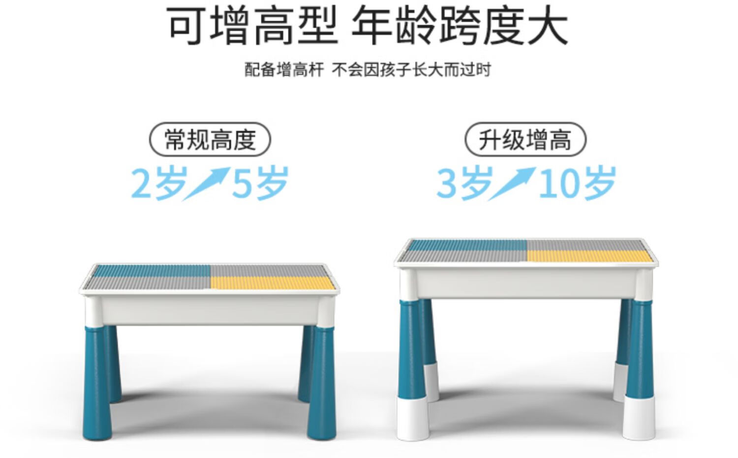 MECHILE积木桌儿童多功能学习桌兼容乐高积木拼装玩具方便收纳带椅子 可升降大颗粒桌+1椅+小颗粒面板【送282大颗粒套装】