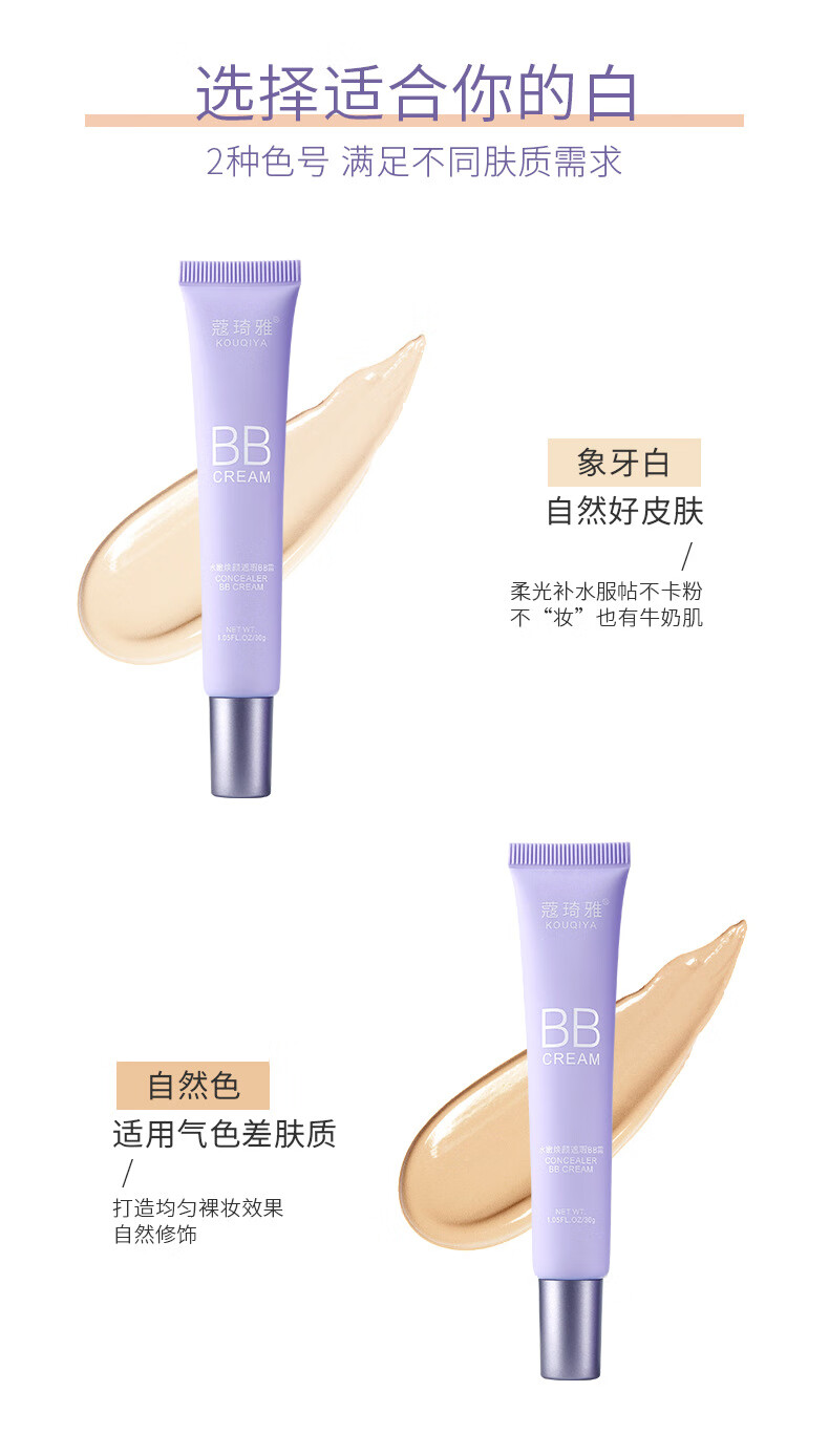琦【直发】BB霜遮瑕不脱妆防水防汗持久强保湿隔离 象牙白 30g