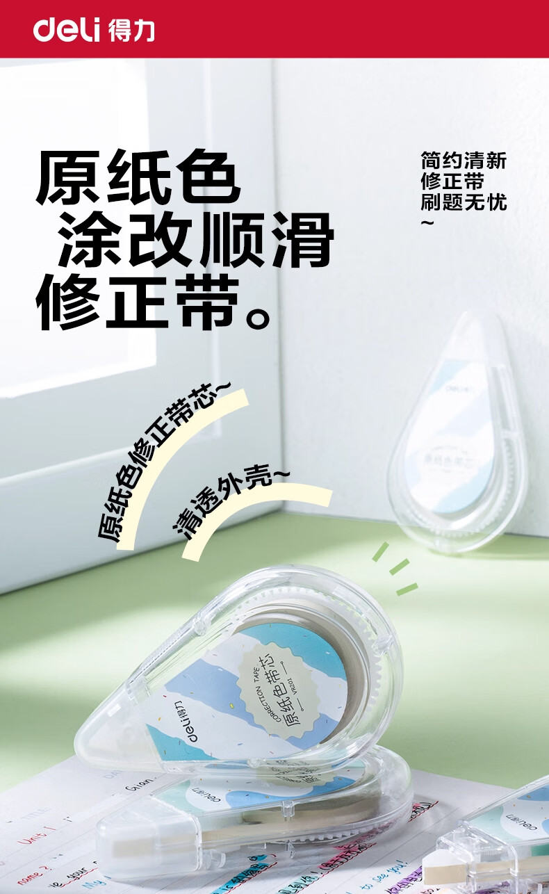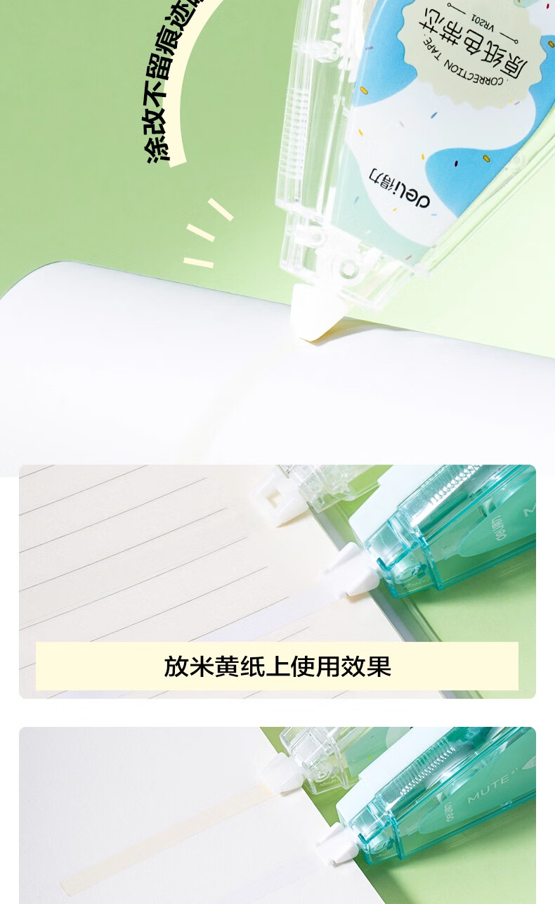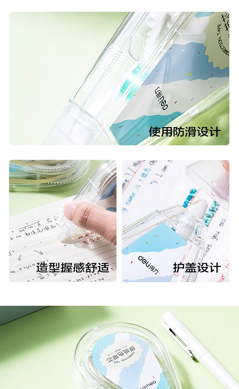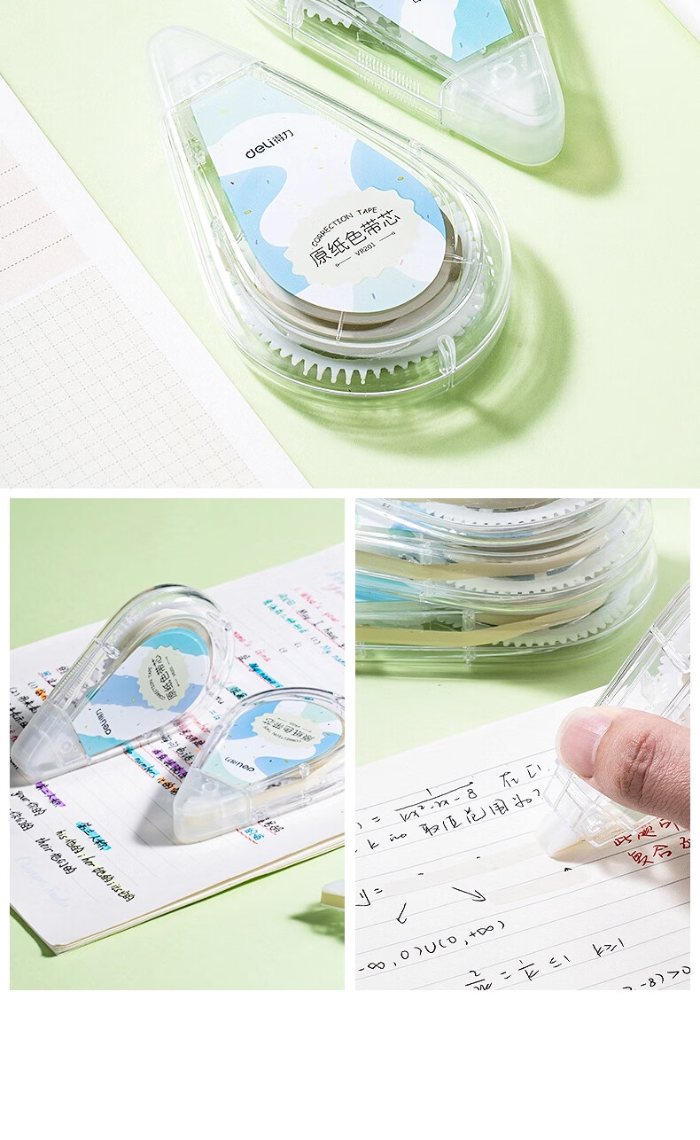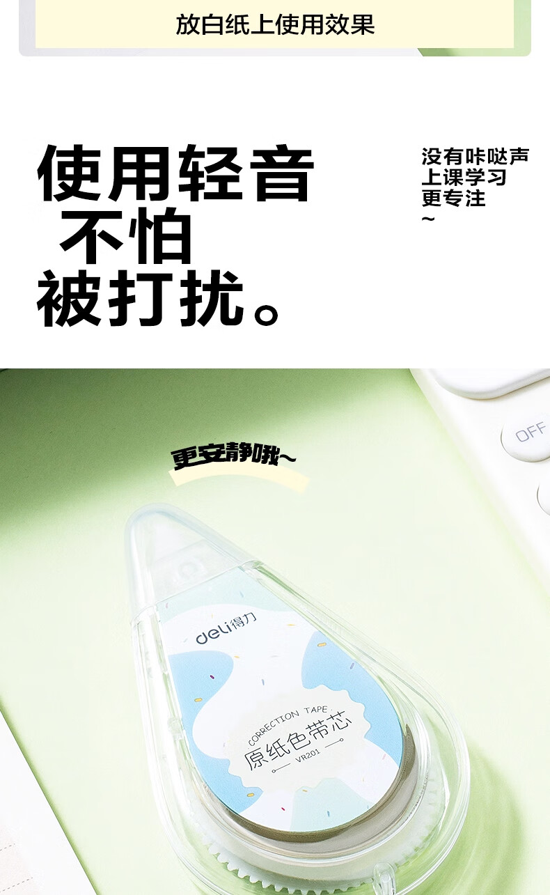 得力隐形修正带初中小学生三年级专用大容量顺滑静音涂改带无痕去字改正带女生高中生黑科技改错字神器 【原纸色/隐形静音修正】6个装72m