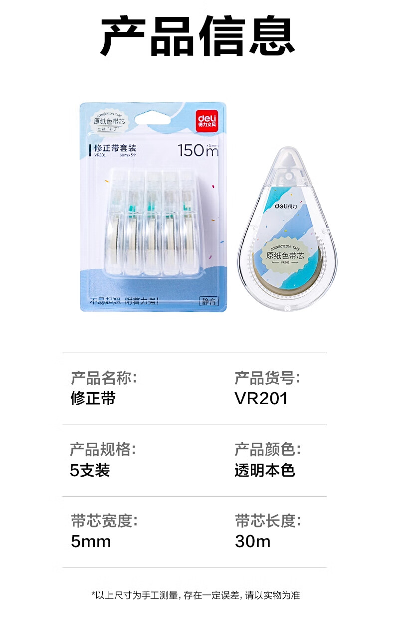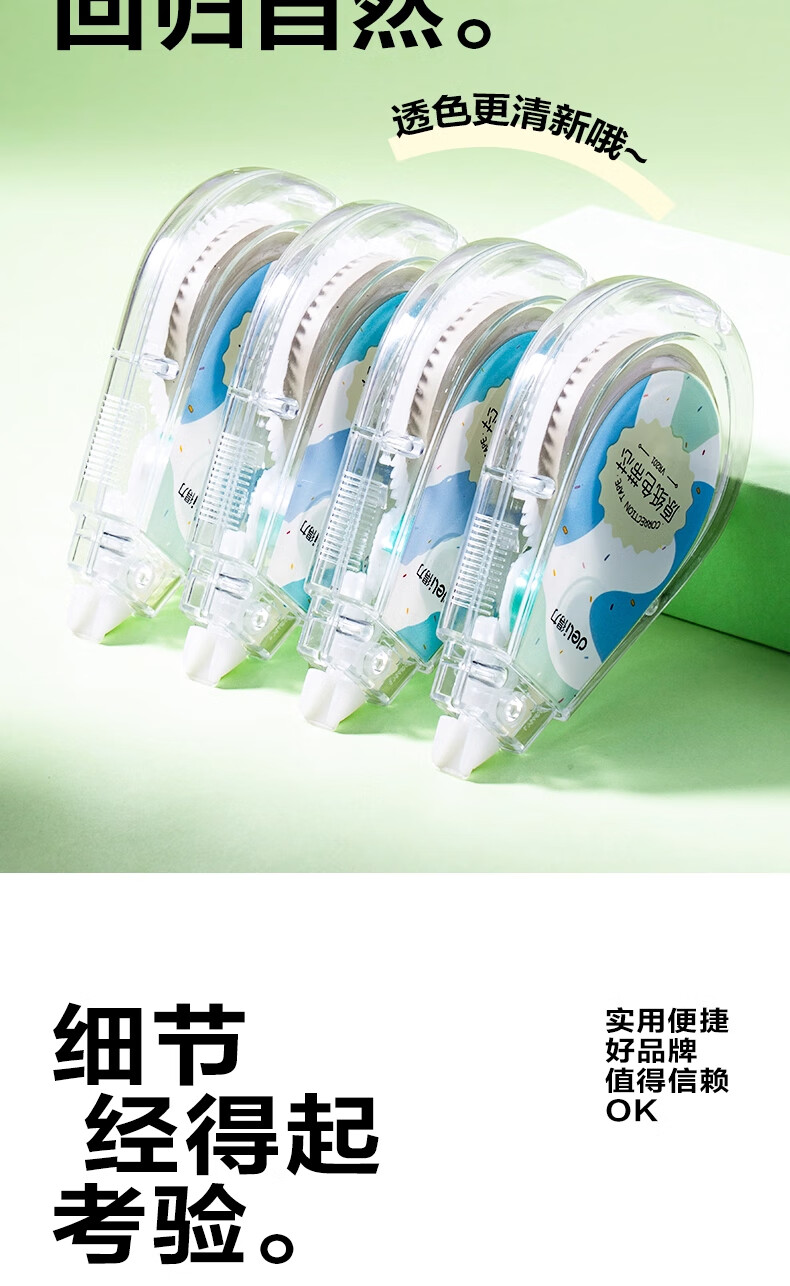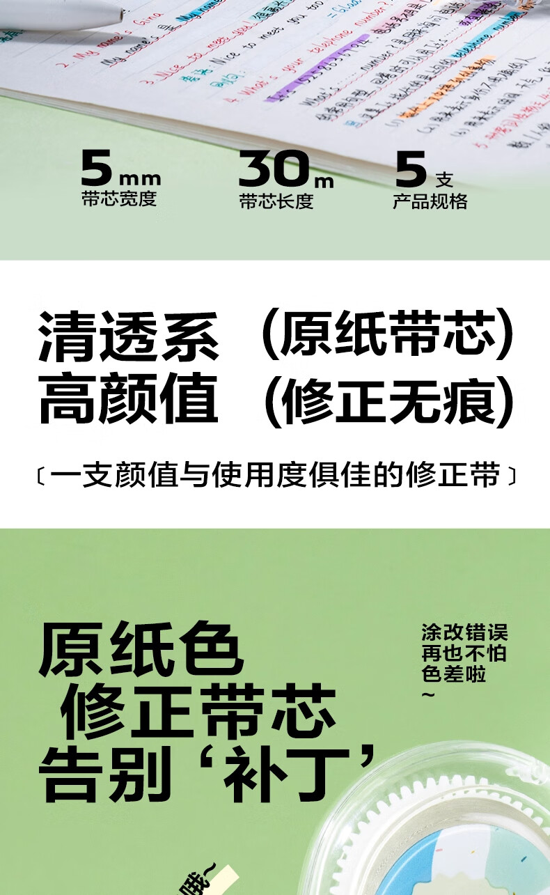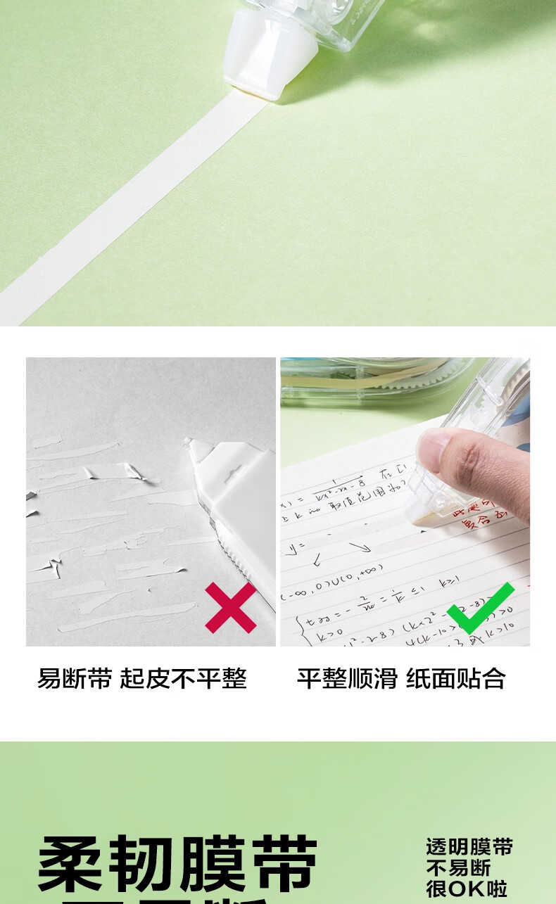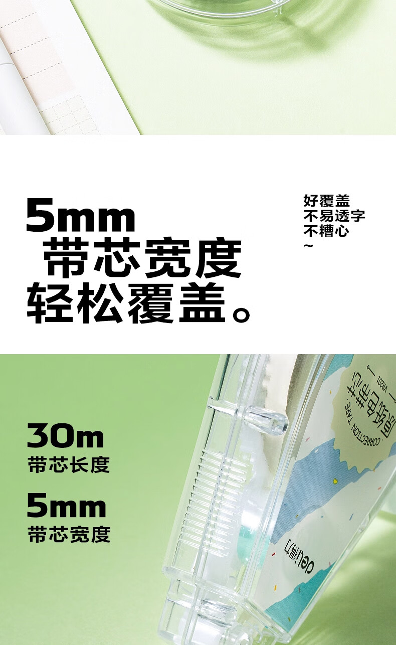 得力隐形修正带初中小学生三年级专用大容量顺滑静音涂改带无痕去字改正带女生高中生黑科技改错字神器 【原纸色/隐形静音修正】6个装72m