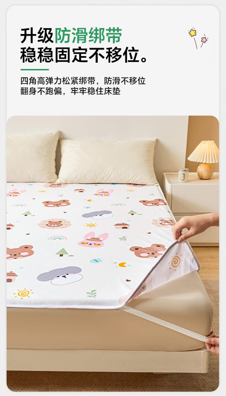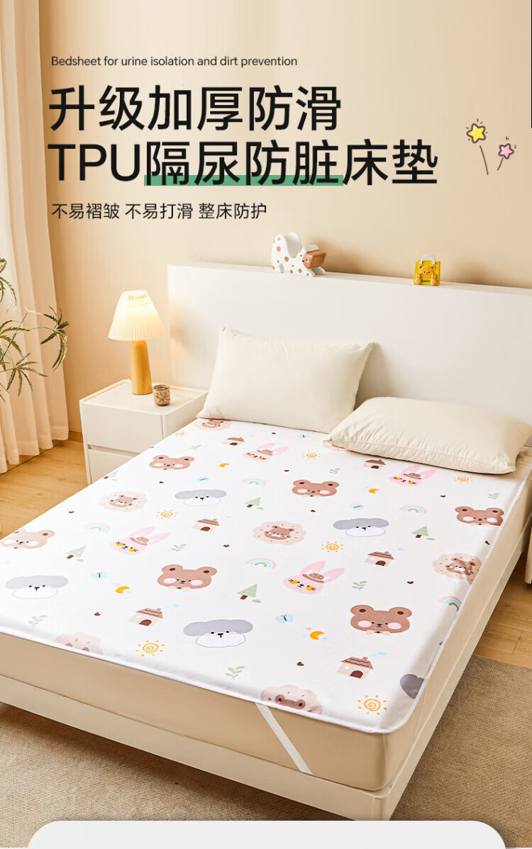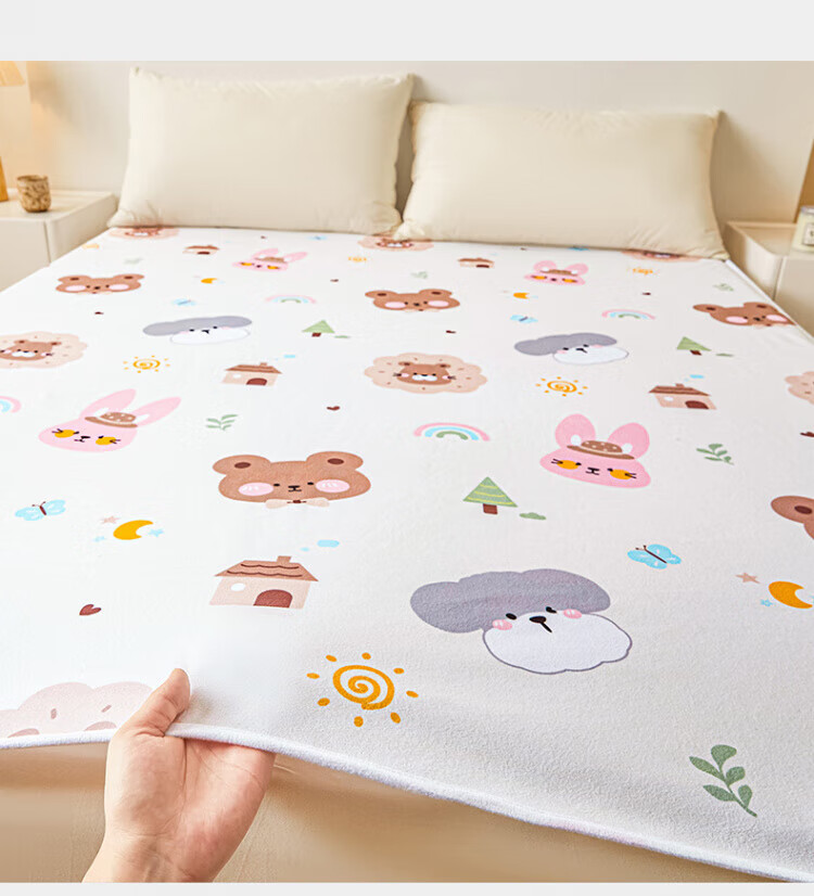 DEATKN德国床护垫婴儿童防水老人隔尿垫可水洗床单大号大尺寸姨妈月经生 DZ防水呆萌熊 50*70单床垫