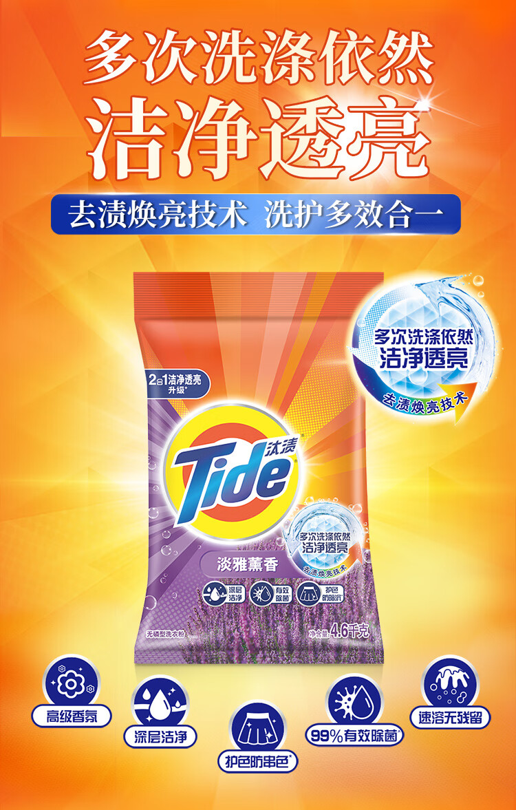 汰渍洁净透亮洗衣粉淡雅薰香9.2斤装 强效去渍 大袋批发非皂粉家庭装