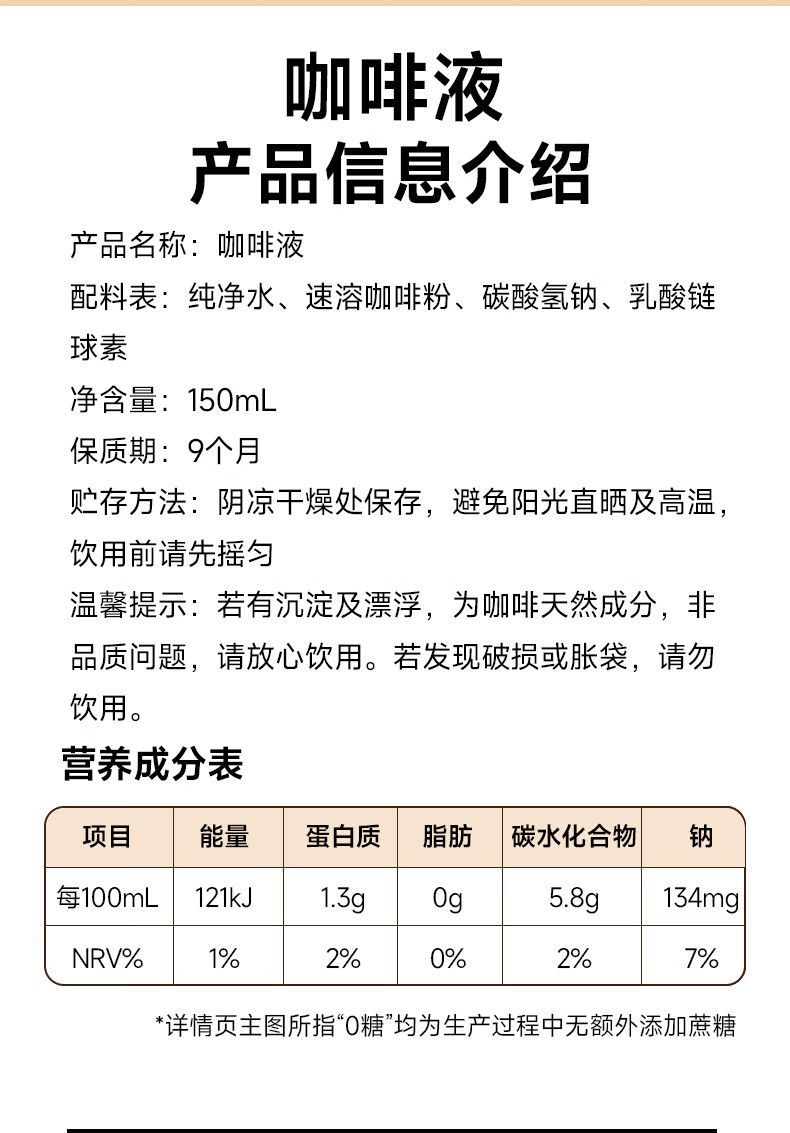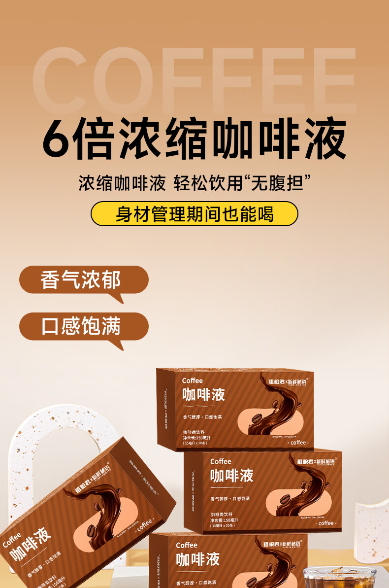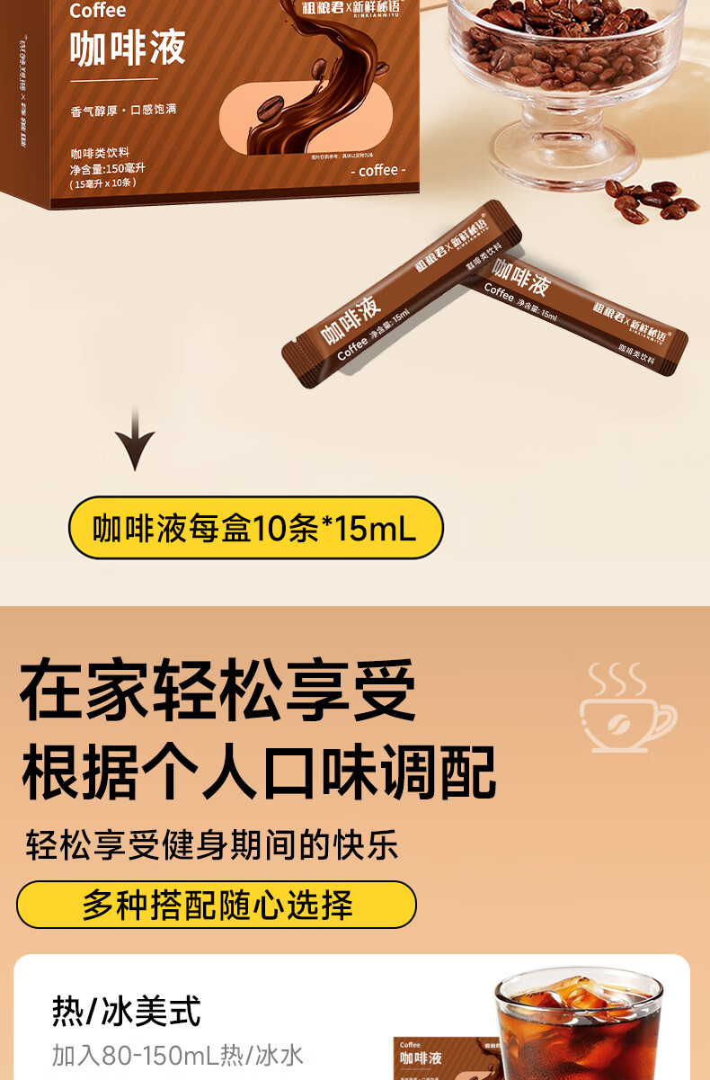新鲜秘语咖啡液浓缩速溶0脂肪0蔗糖即冲即饮黑咖啡液 1盒150ml