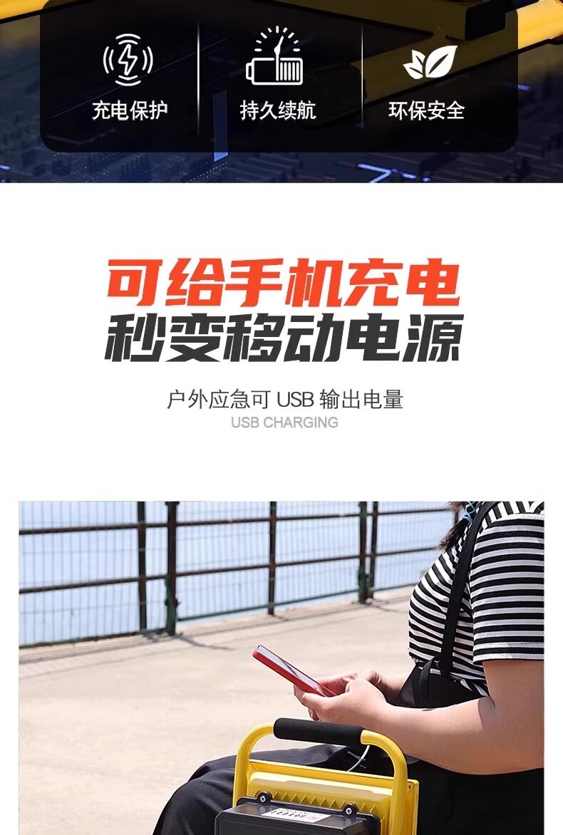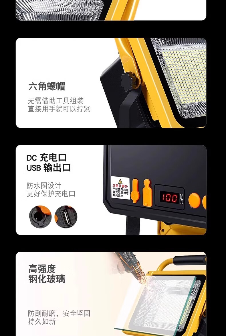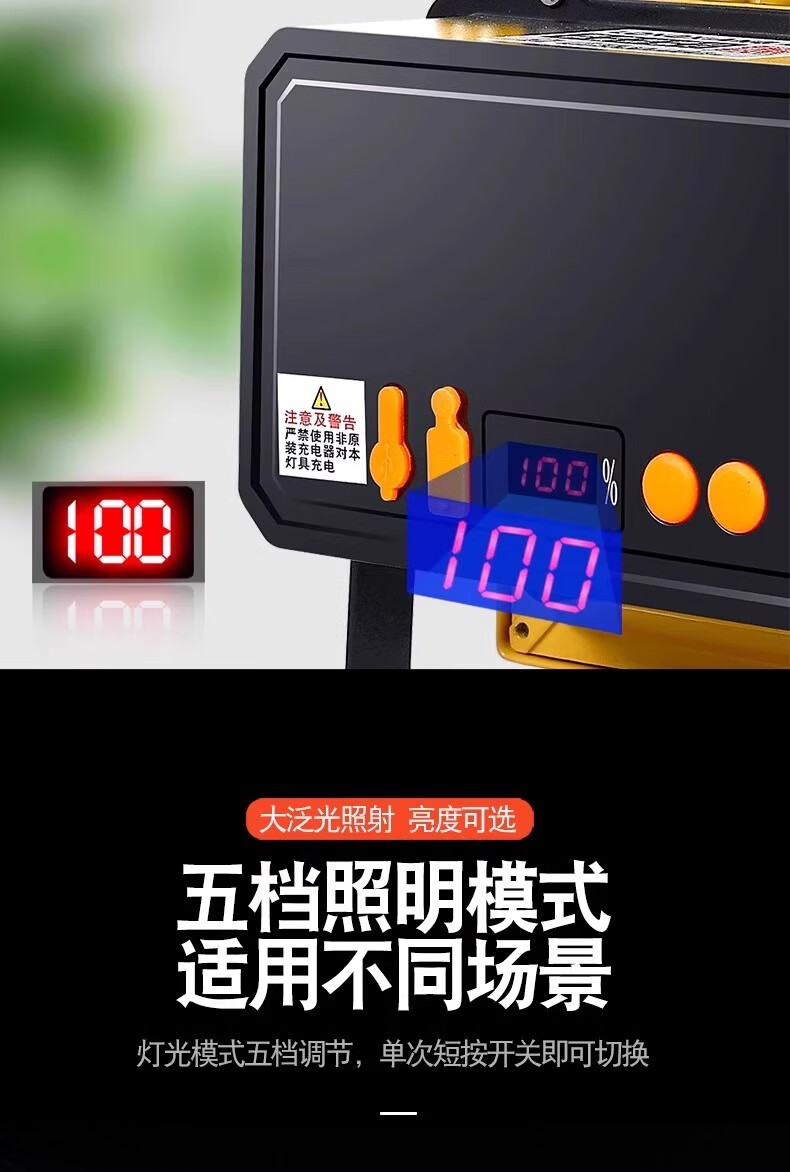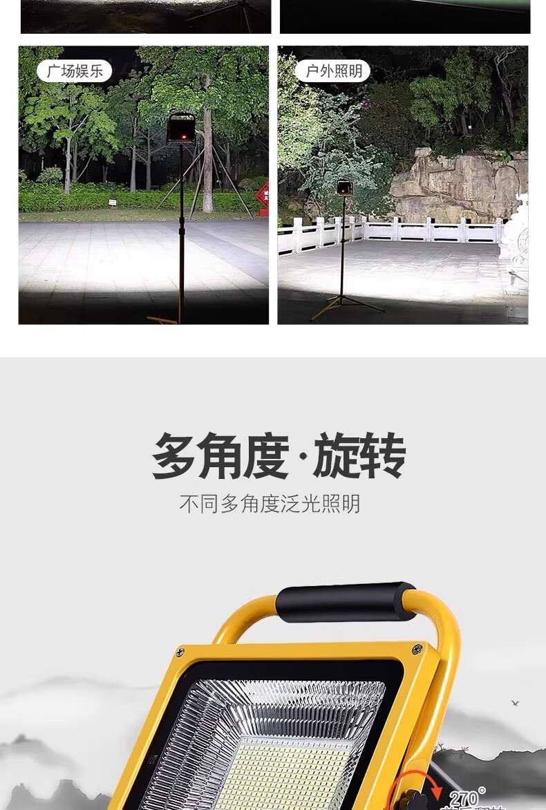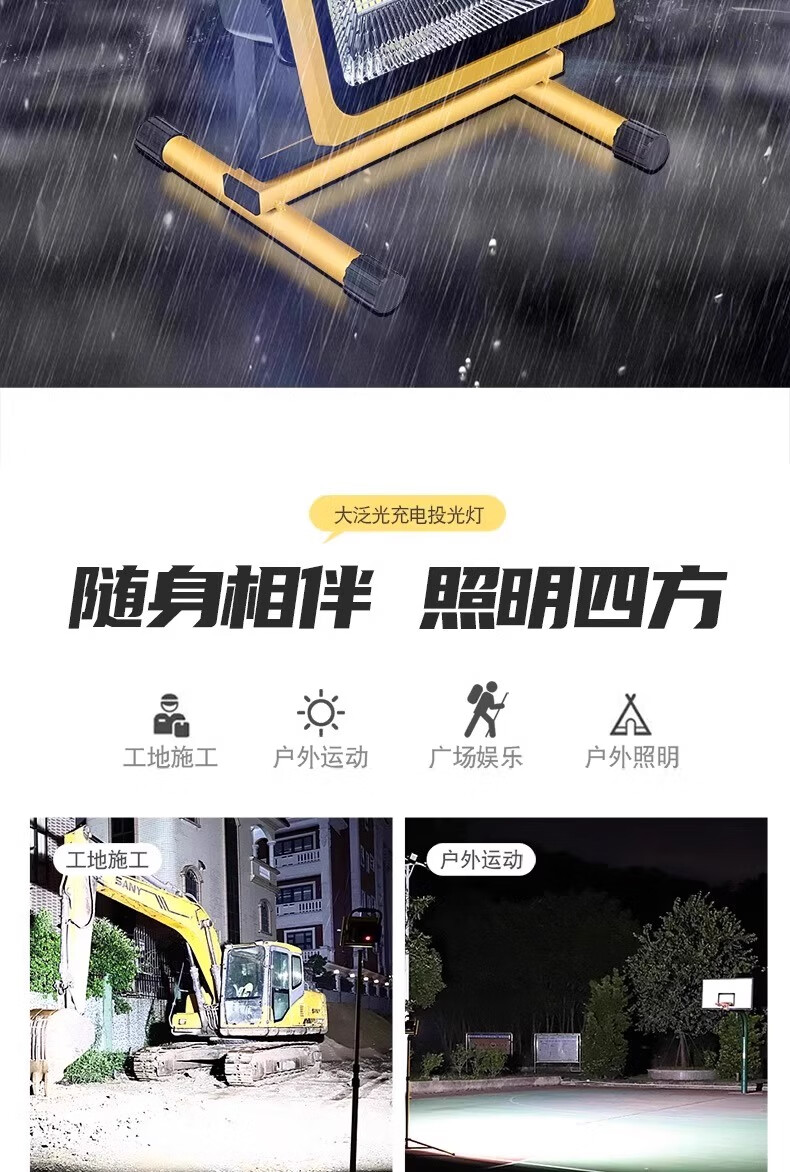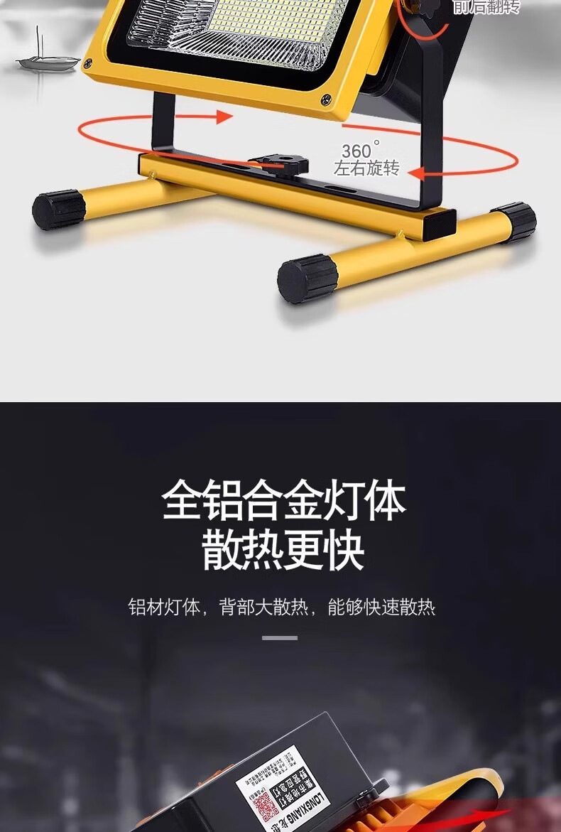 振牛充电投光灯led家用应急照明停电备用户外工地施工手提超亮露营灯 【4节锂电】56灯珠500W