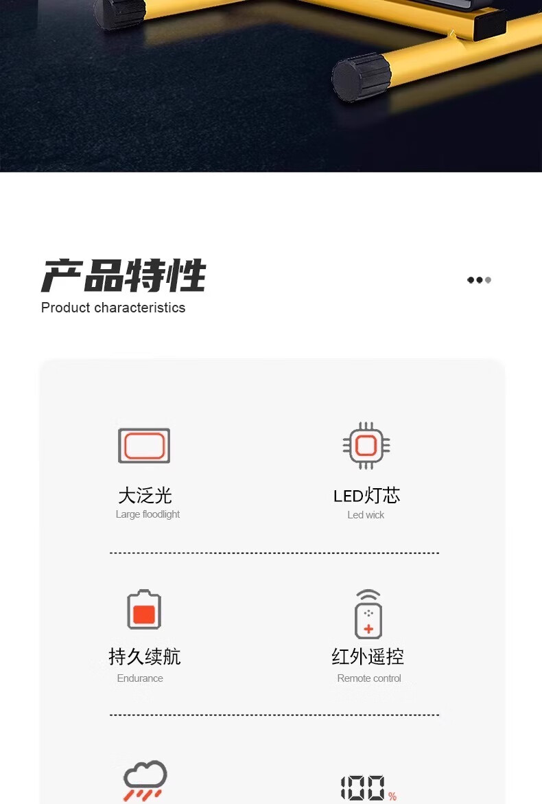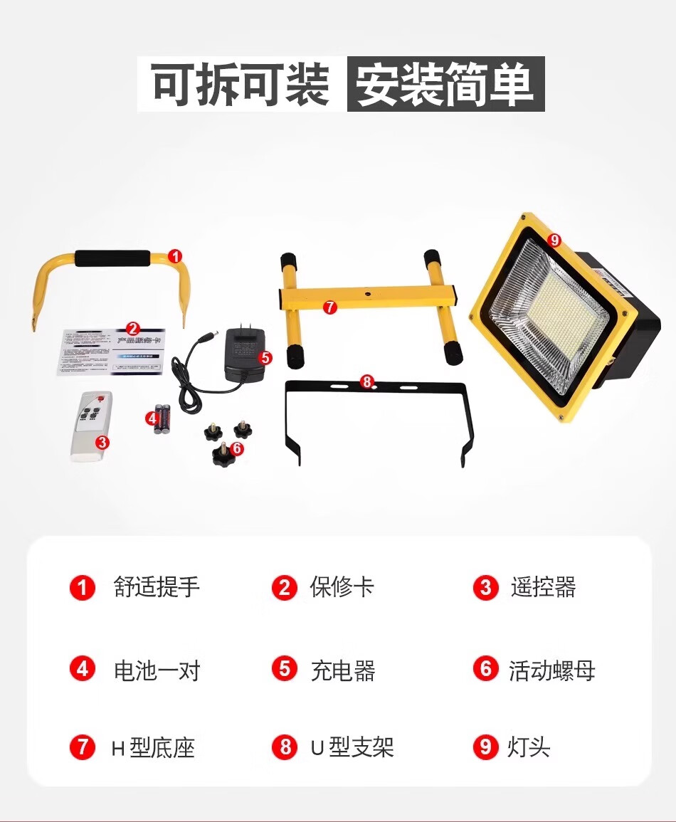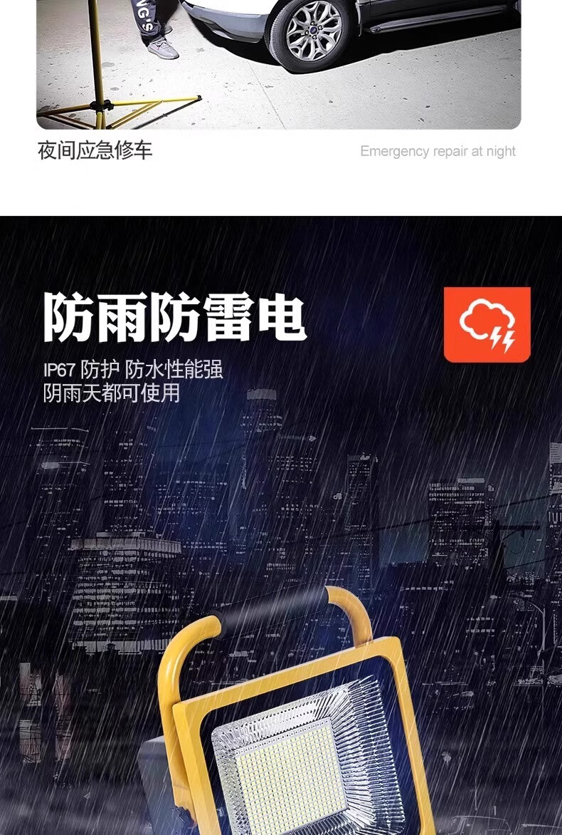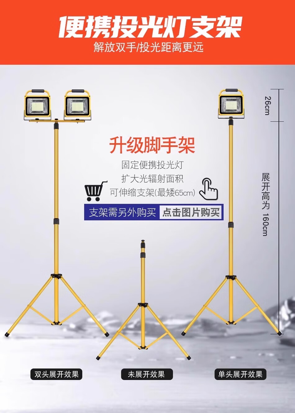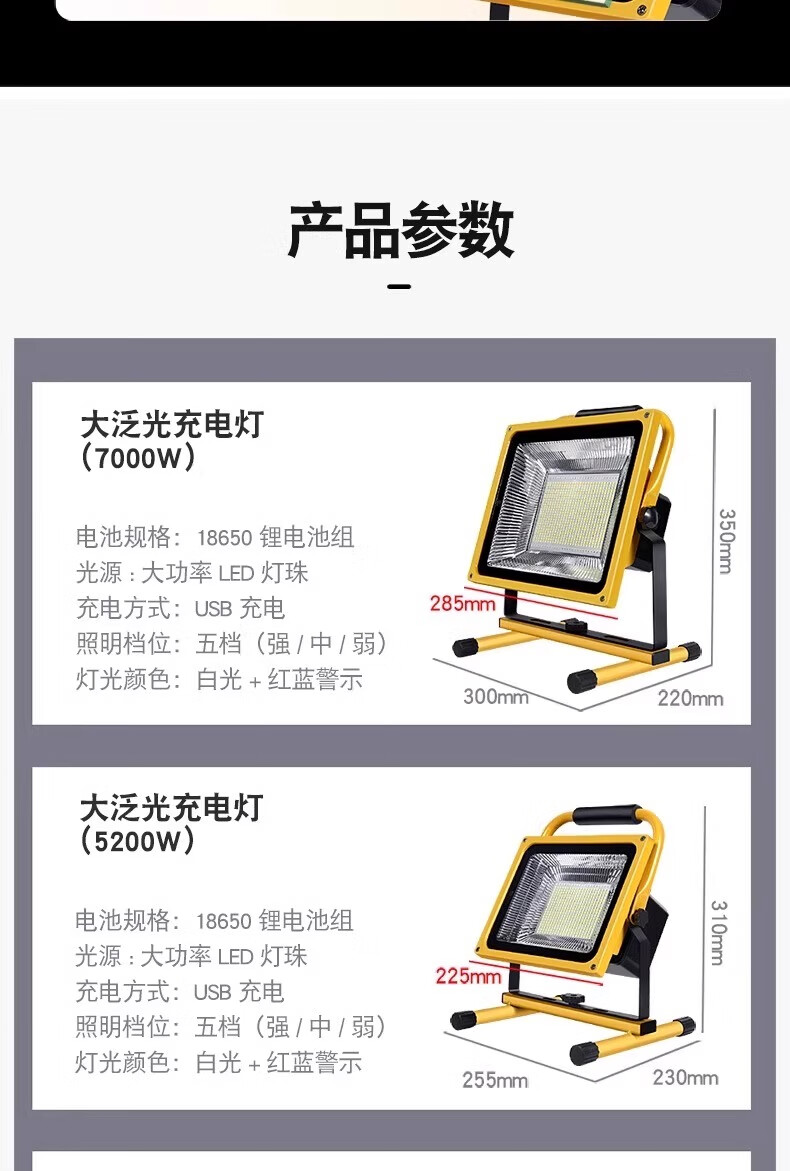 振牛充电投光灯led家用应急照明停电备用户外工地施工手提超亮露营灯 【4节锂电】56灯珠500W