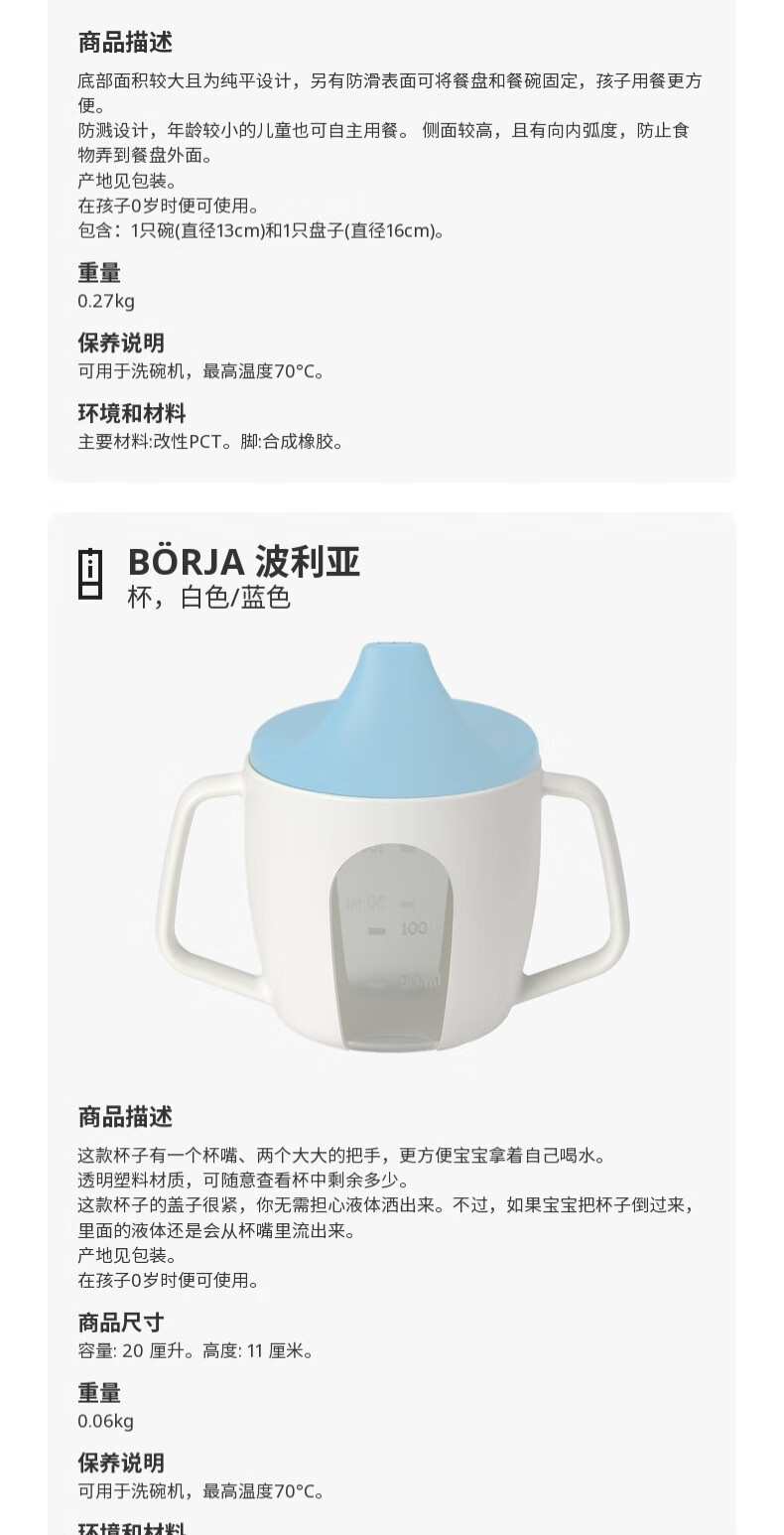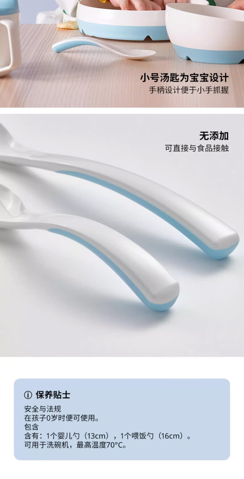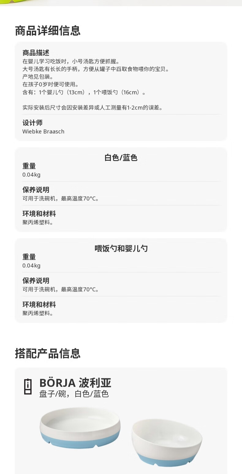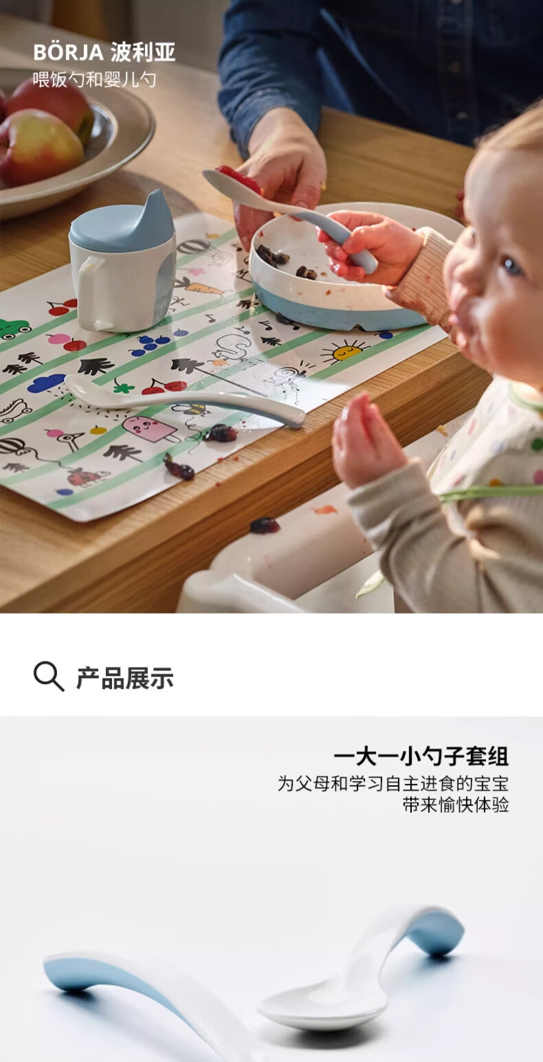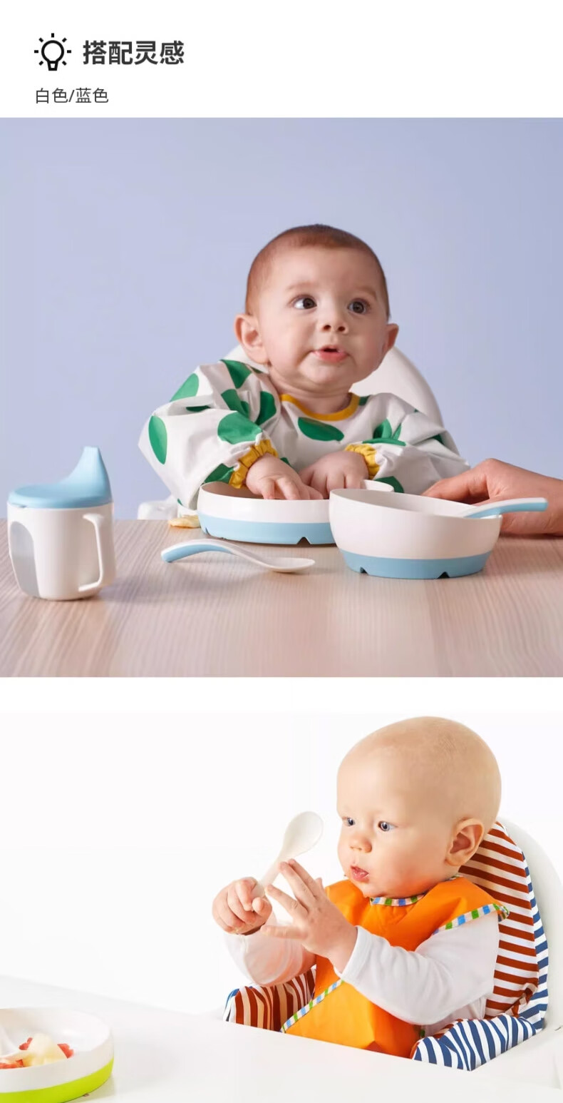宜家(IKEA)BORJA波利亚喂饭勺和婴儿勺现代简约北欧风儿童用具 白色/蓝色喂饭勺和婴儿勺
