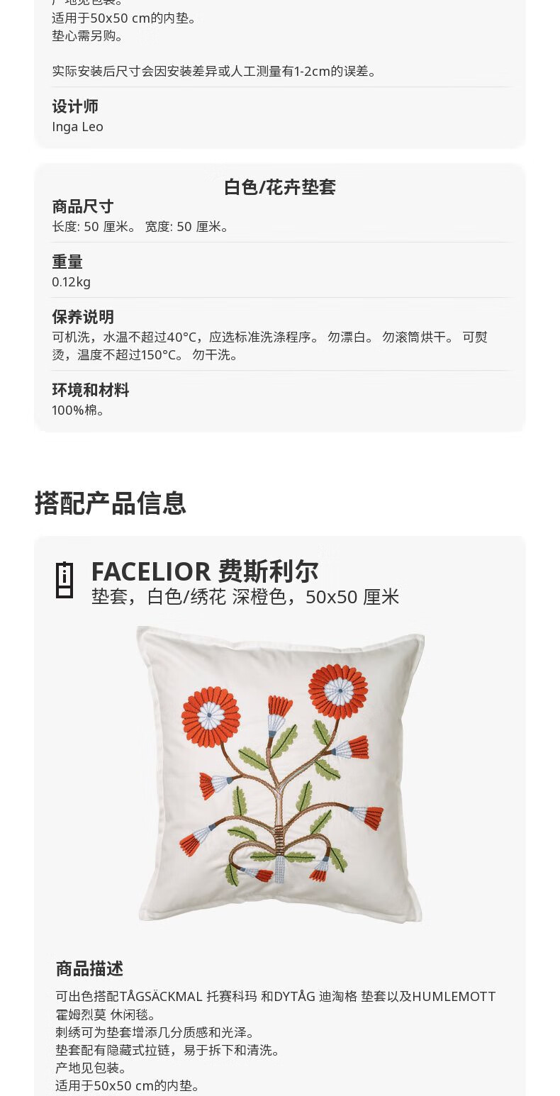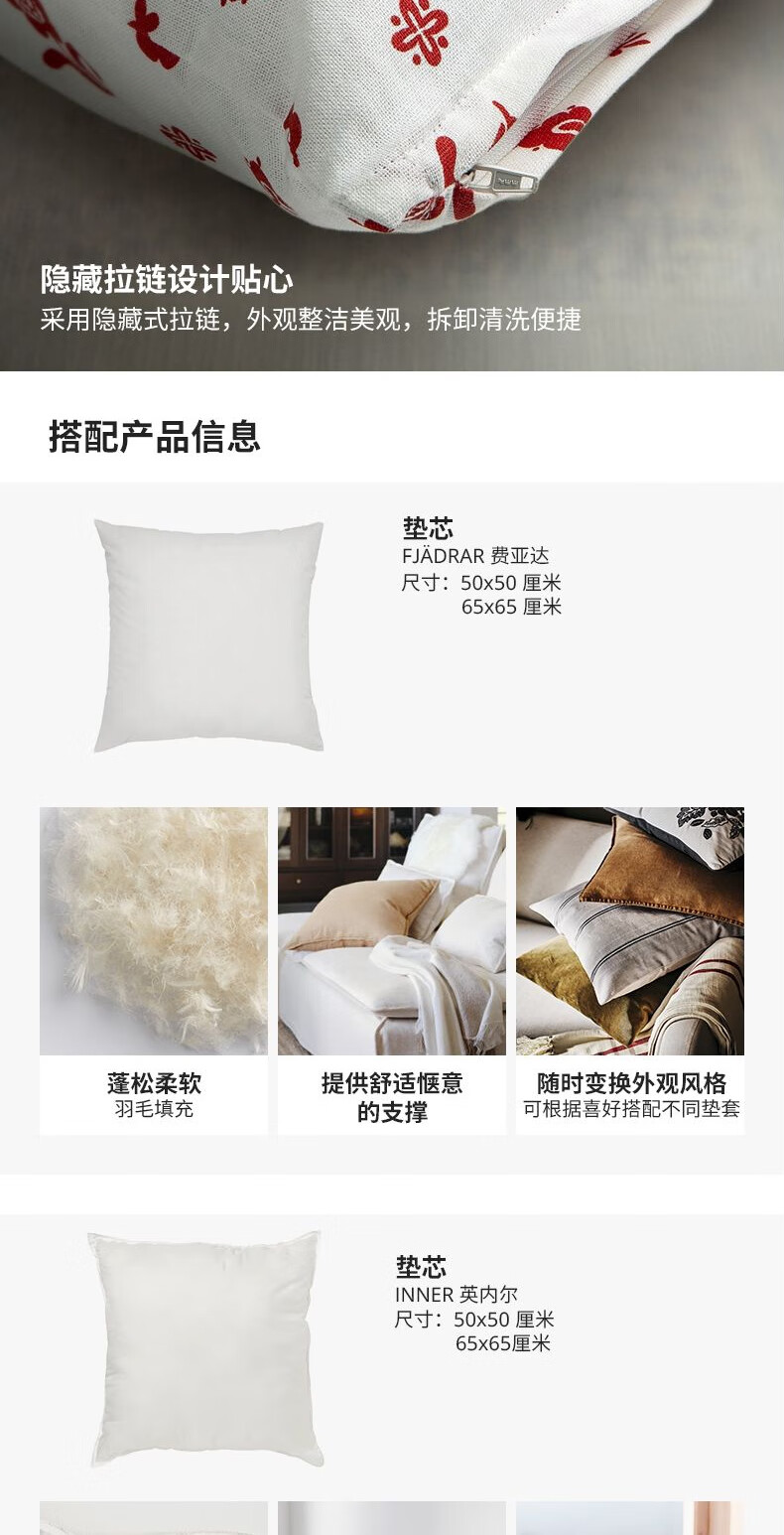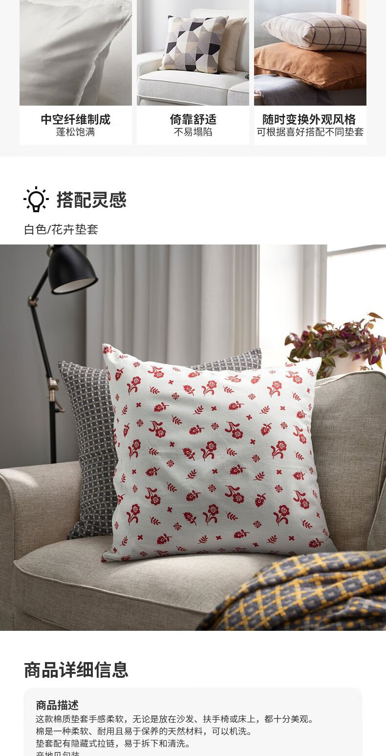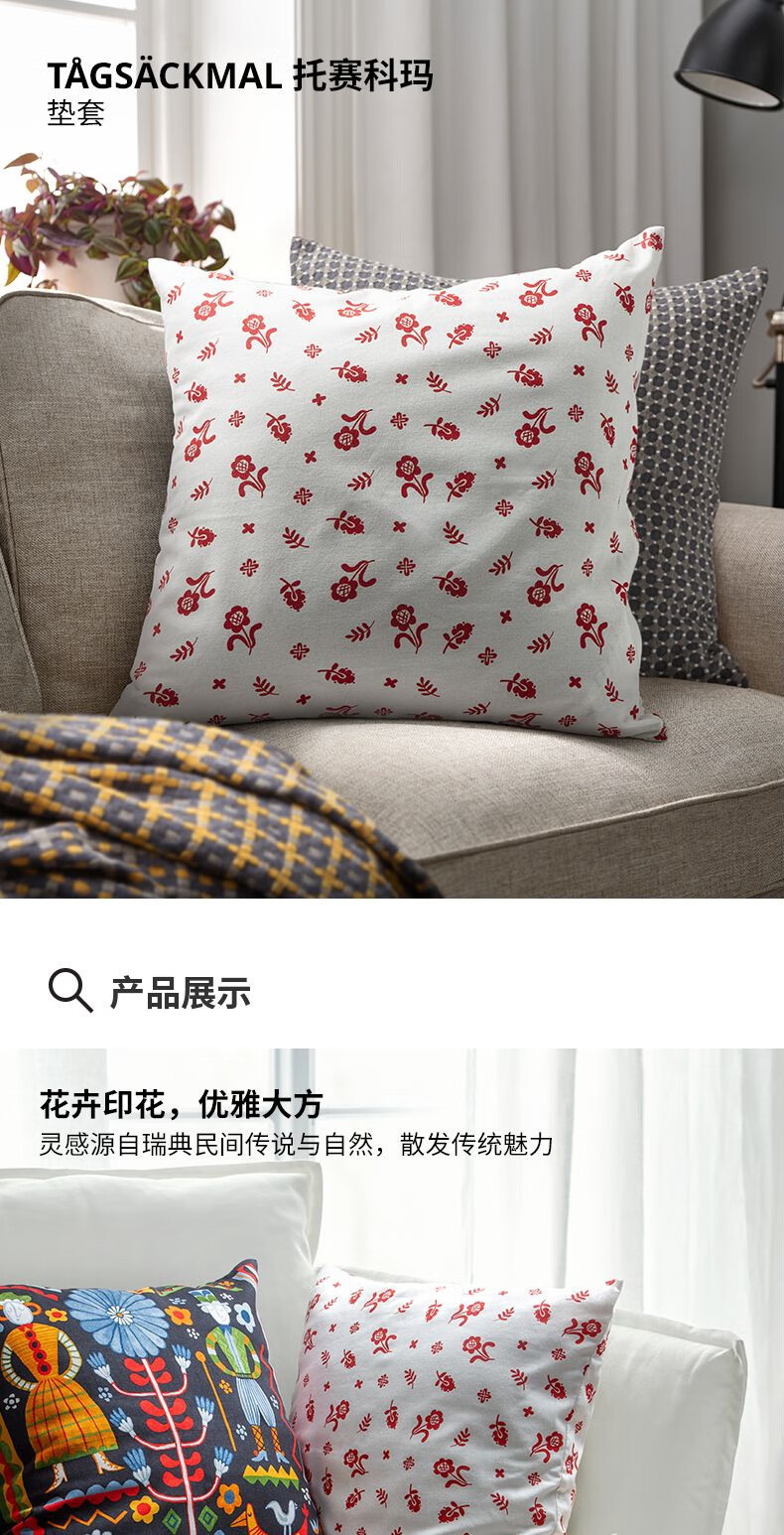 宜家(IKEA)【新品】TAGSACKMAL托赛科玛垫套卧室办公室床头靠枕腰枕 【新品】白色/花卉图案垫套+纤维垫芯