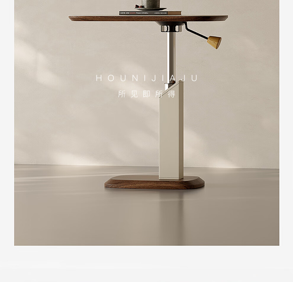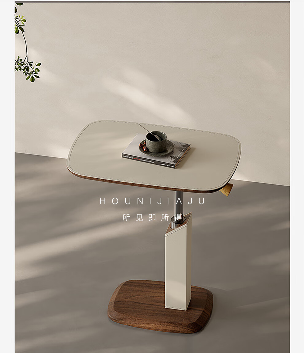 逅你意式可升降马鞍皮边几沙发小茶几客厅家用极简床头角几原创桌子 设计师_升降边几