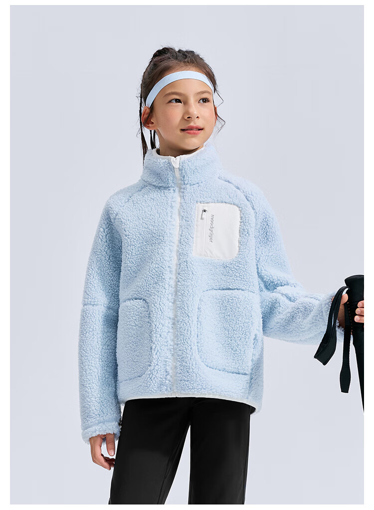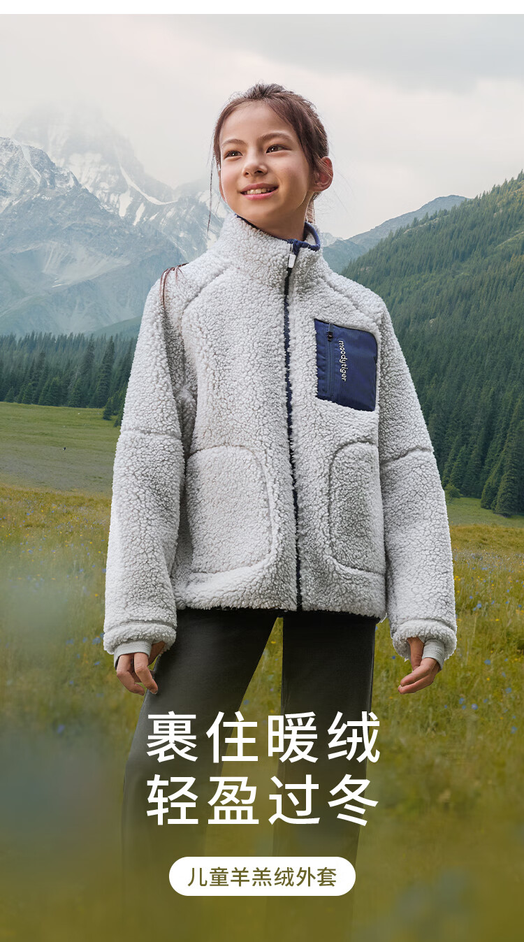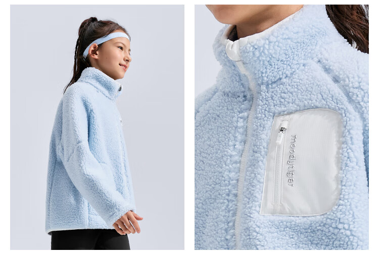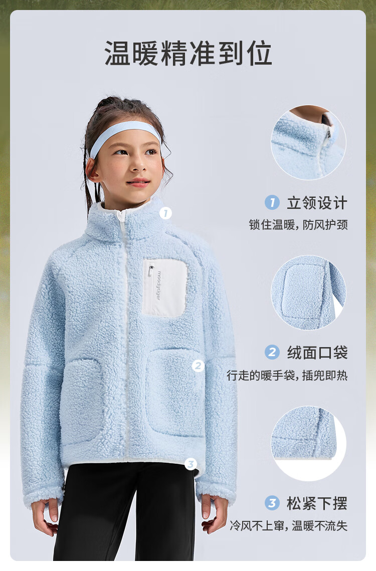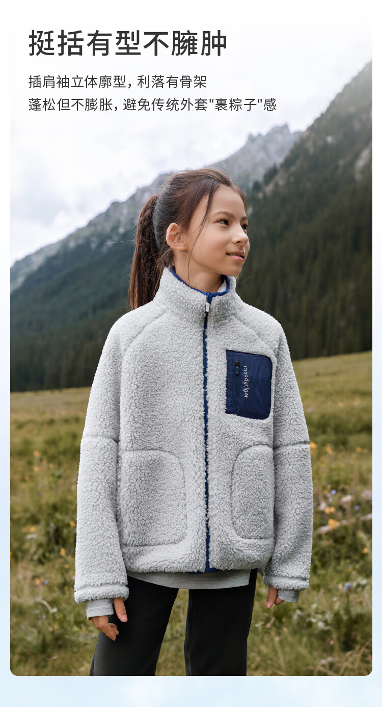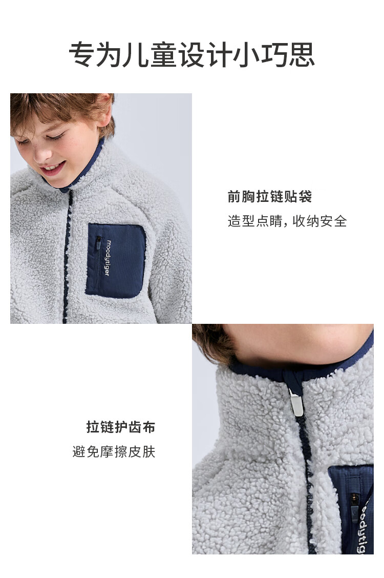 moodytiger儿童羊羔绒外套保暖25年冬季新品男童上衣防风立领挺括女童运动衣