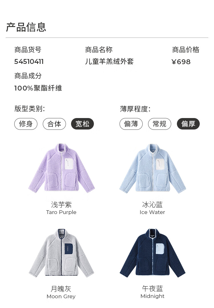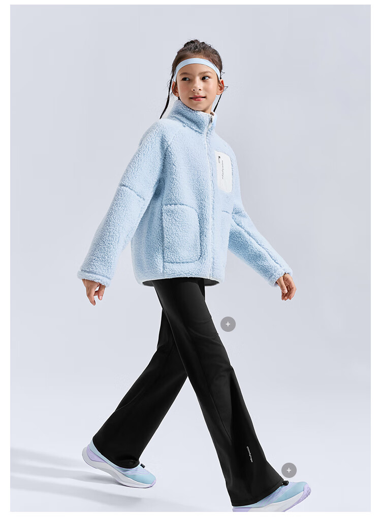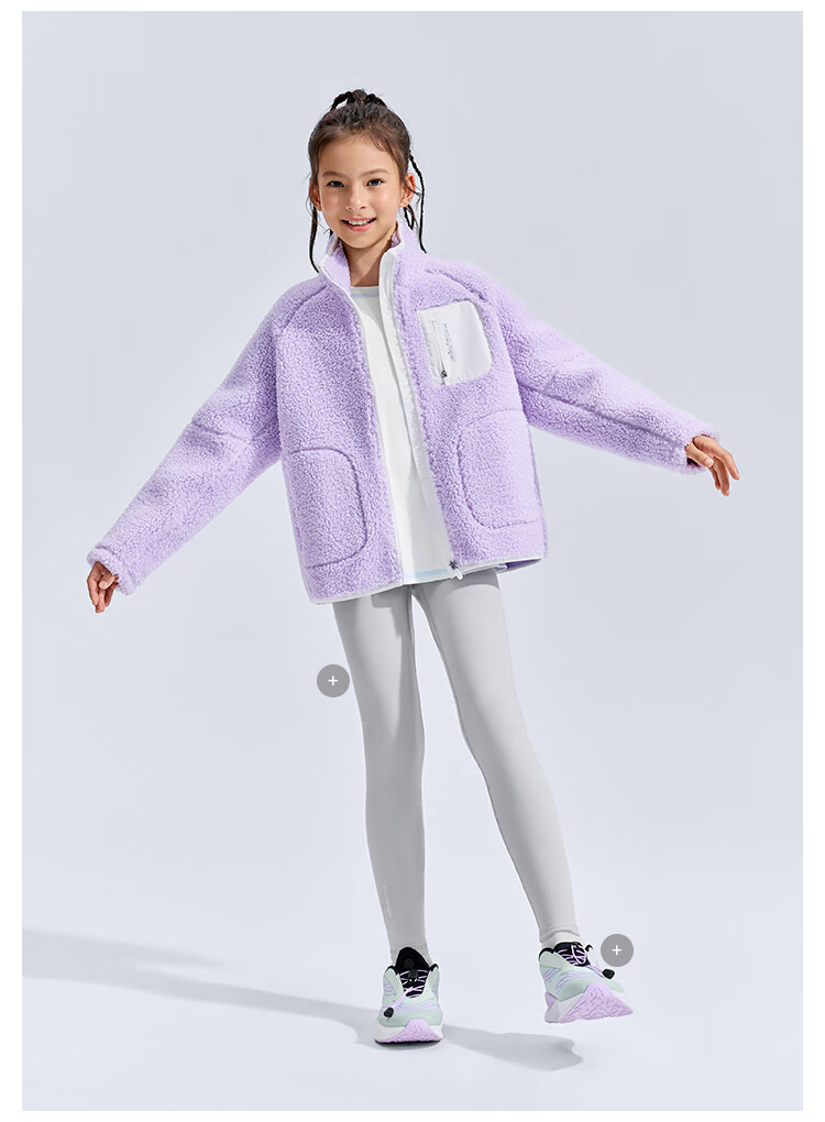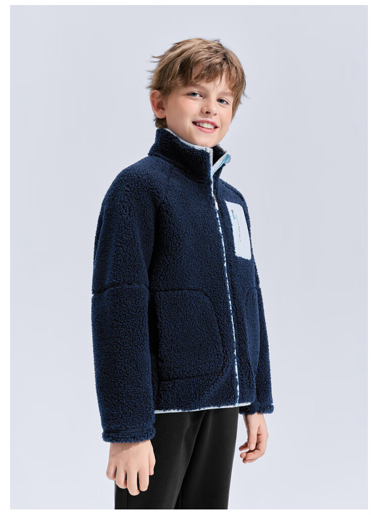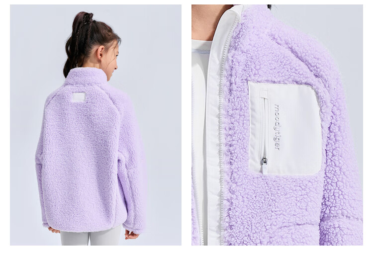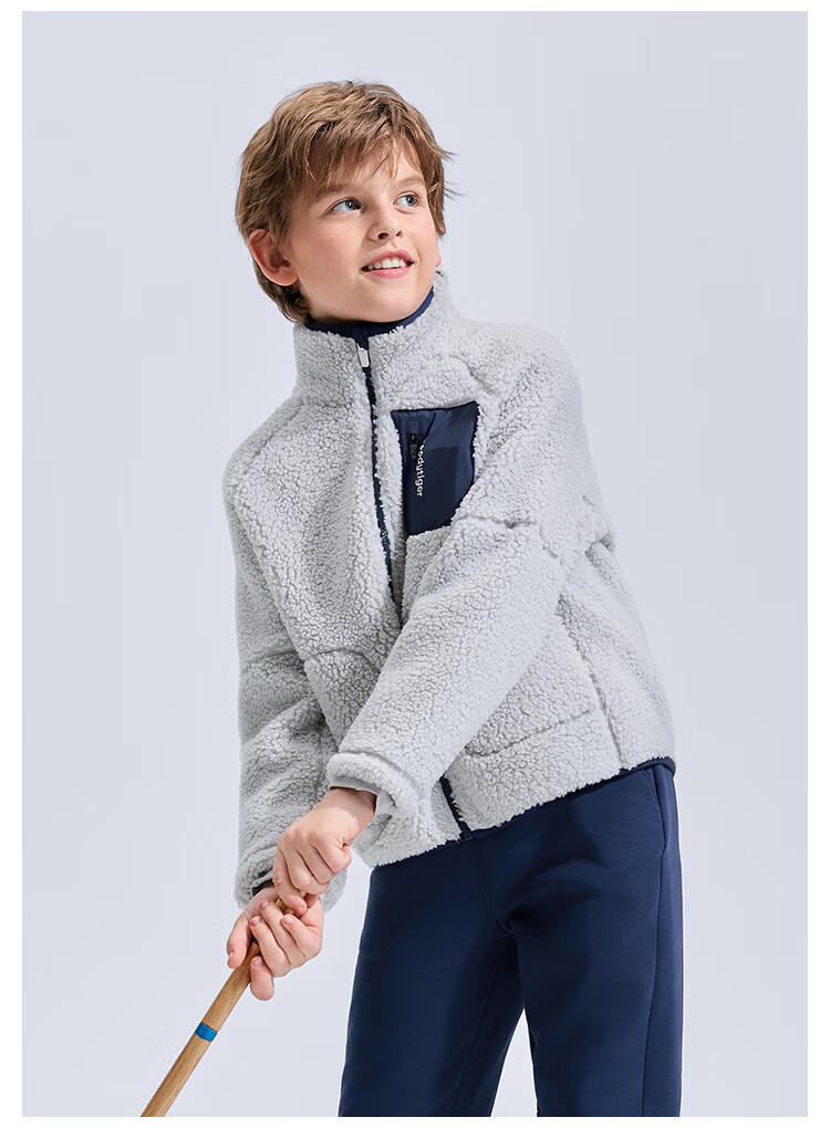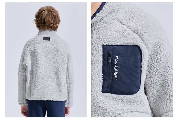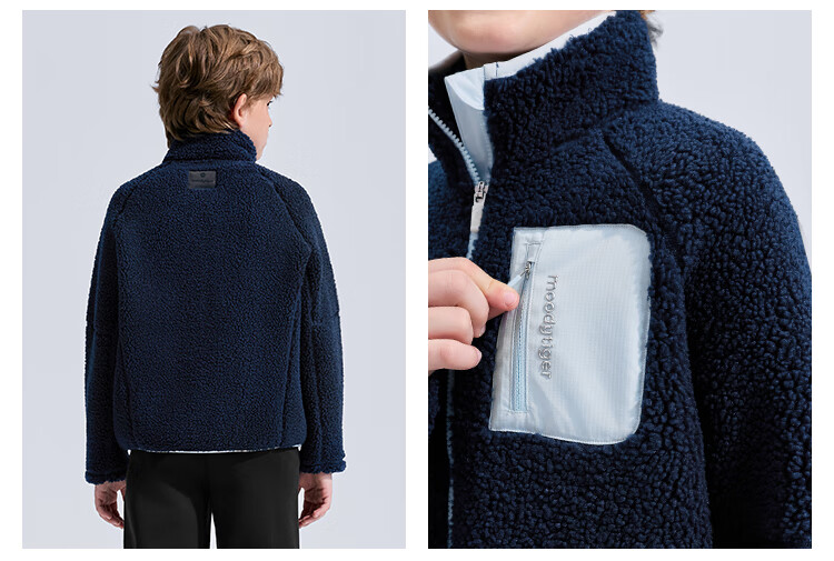 moodytiger儿童羊羔绒外套保暖25年冬季新品男童上衣防风立领挺括女童运动衣