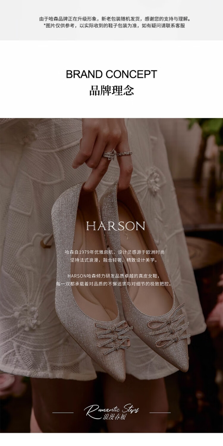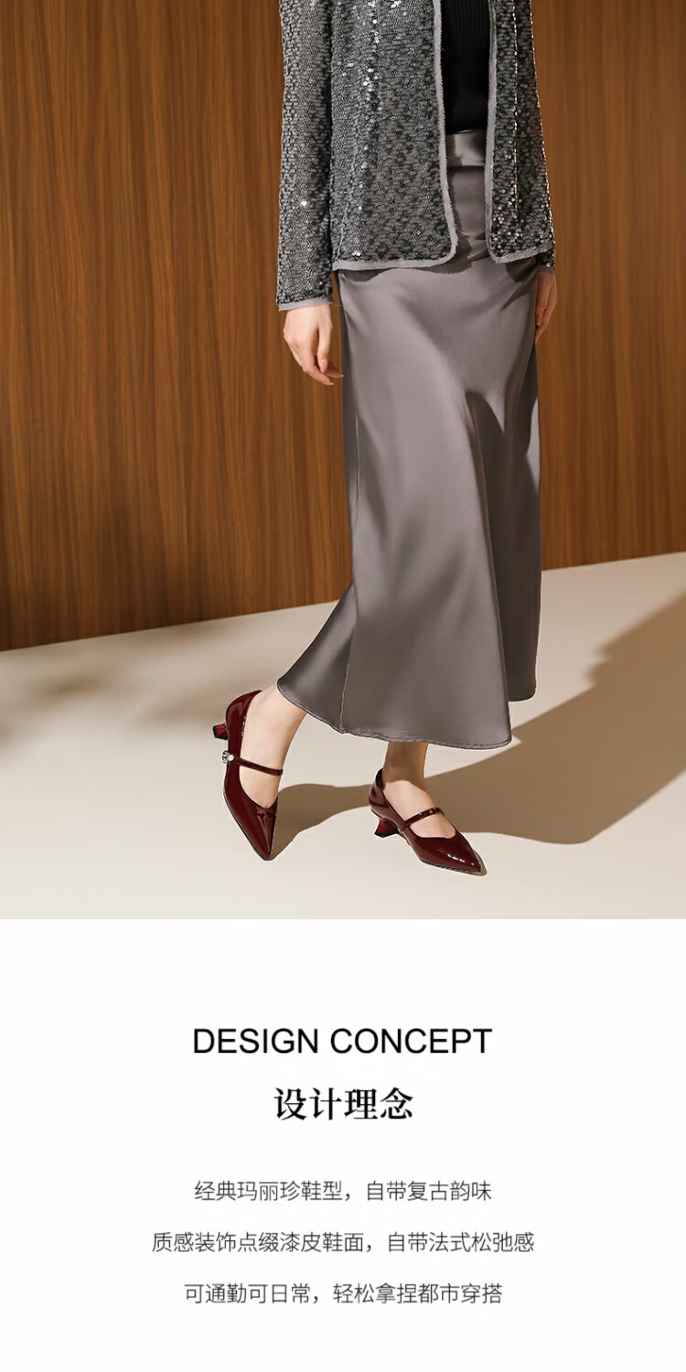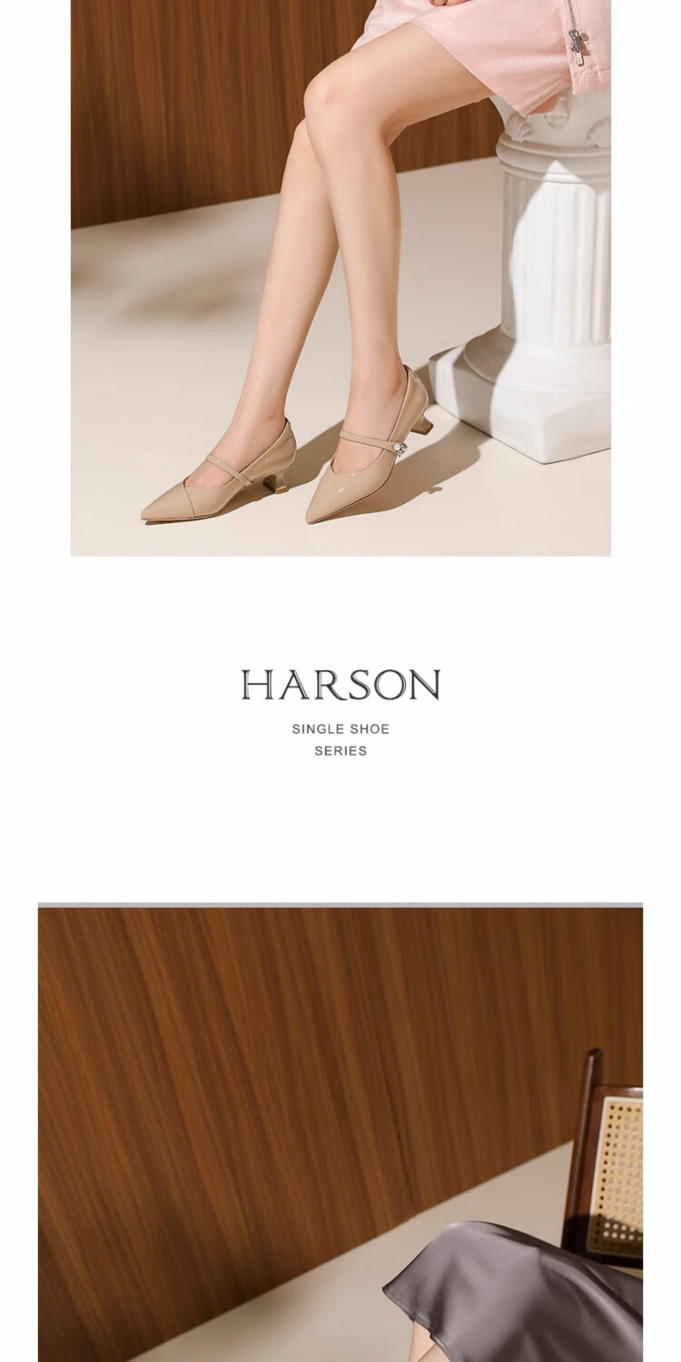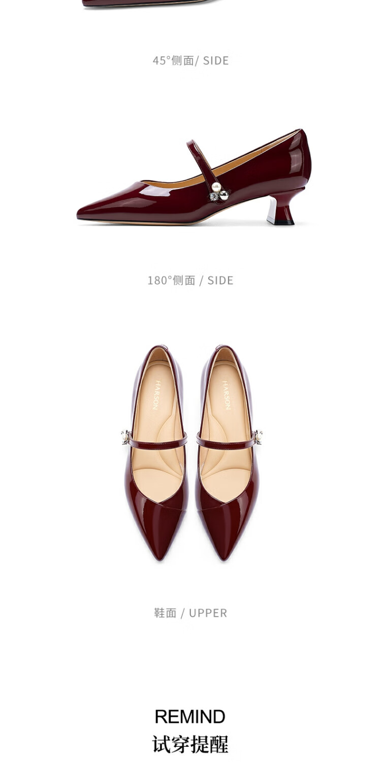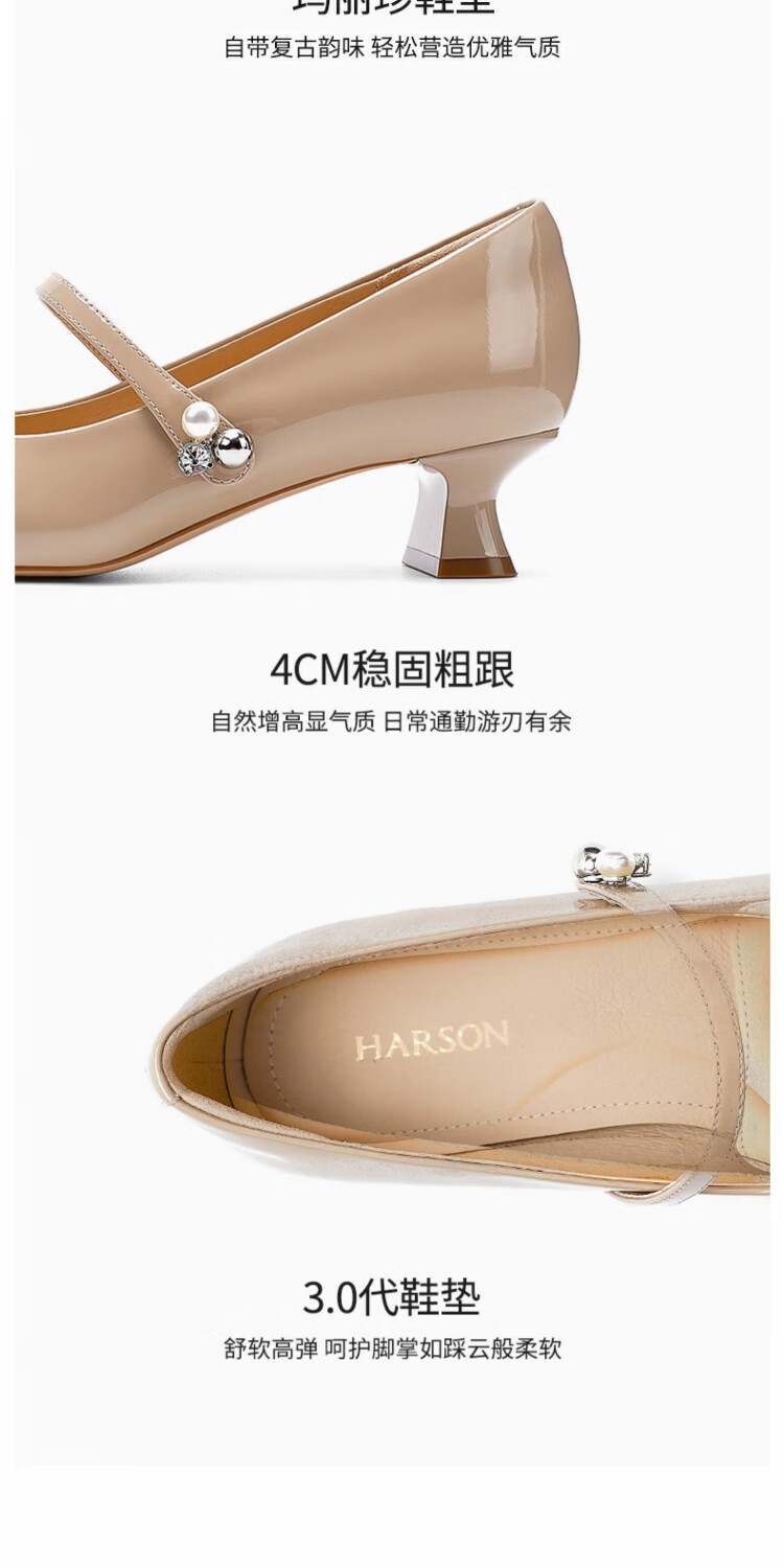 哈森玛丽珍女鞋2025新款法式红色气质粗跟尖头单鞋HS267105 裸杏色 牛皮革(涂覆层除外) 34
