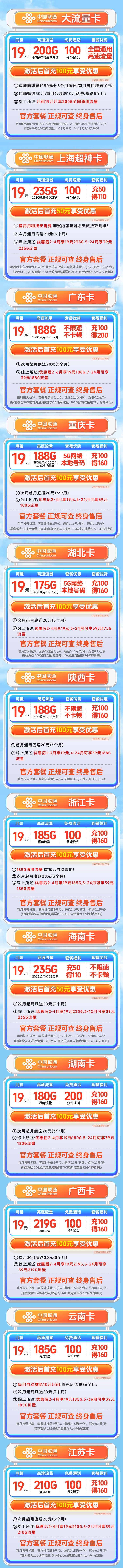 中国联通19元流量卡【超大流量】手机卡电话卡全国低月租通用非无限信纯上网5g大王卡 流量王 19元200G+100分钟通话丨发全国