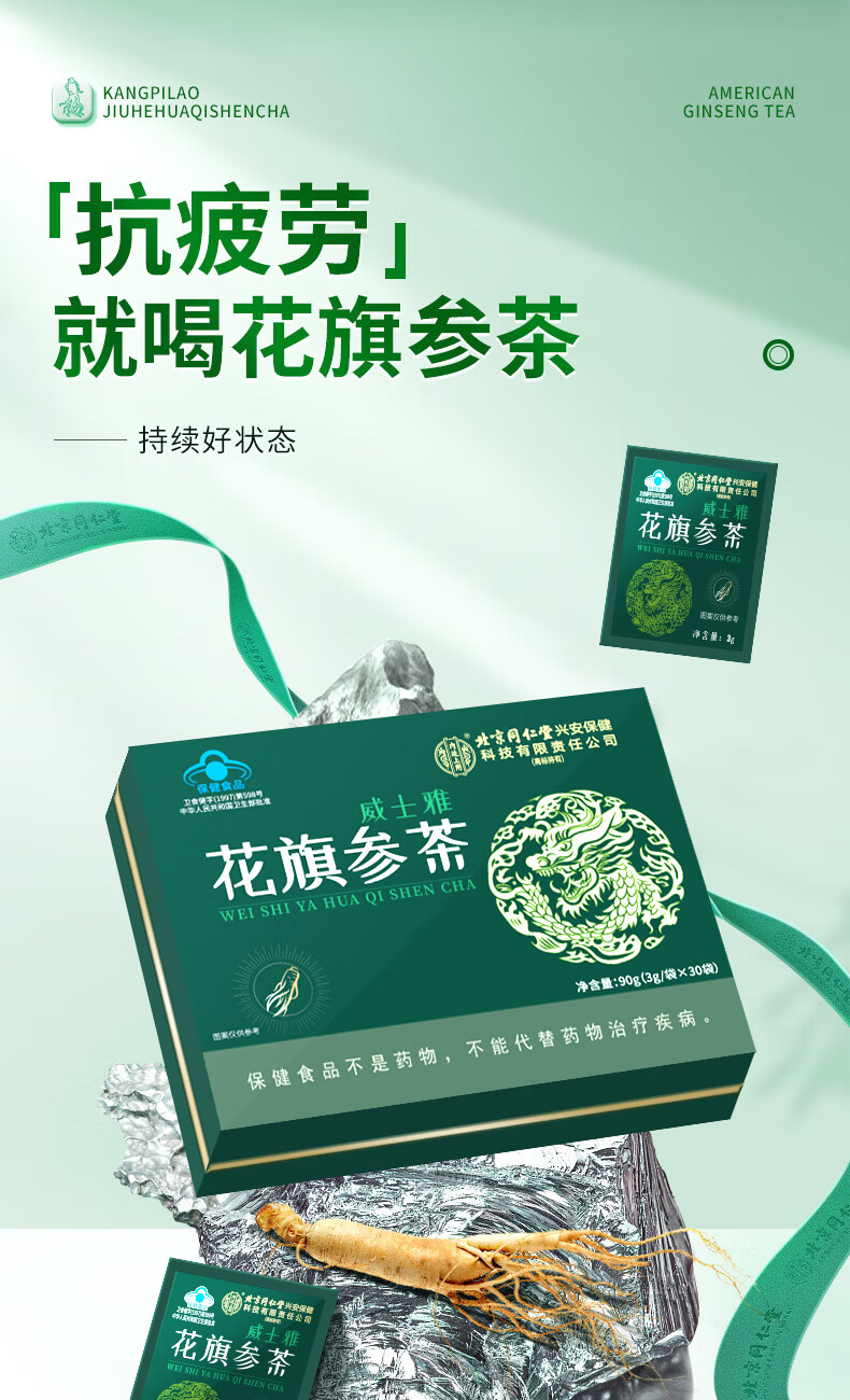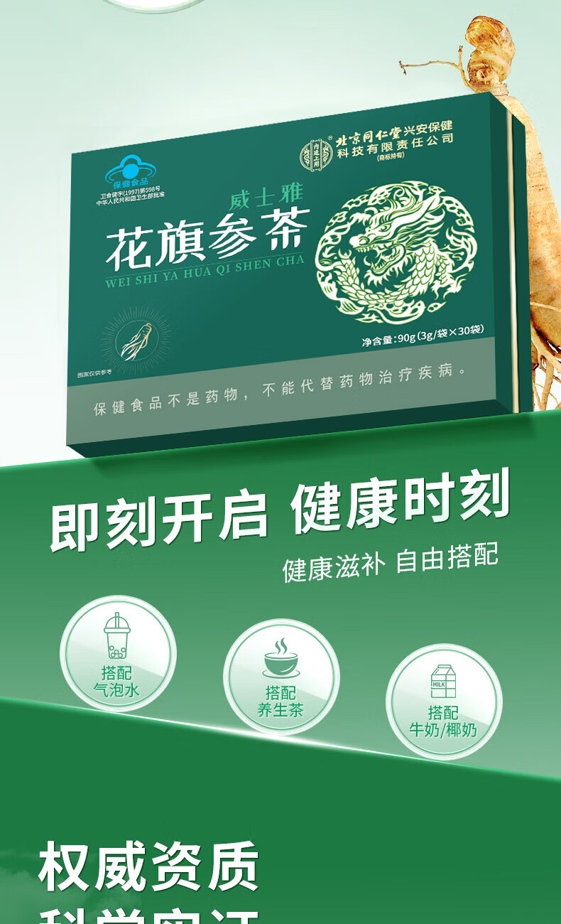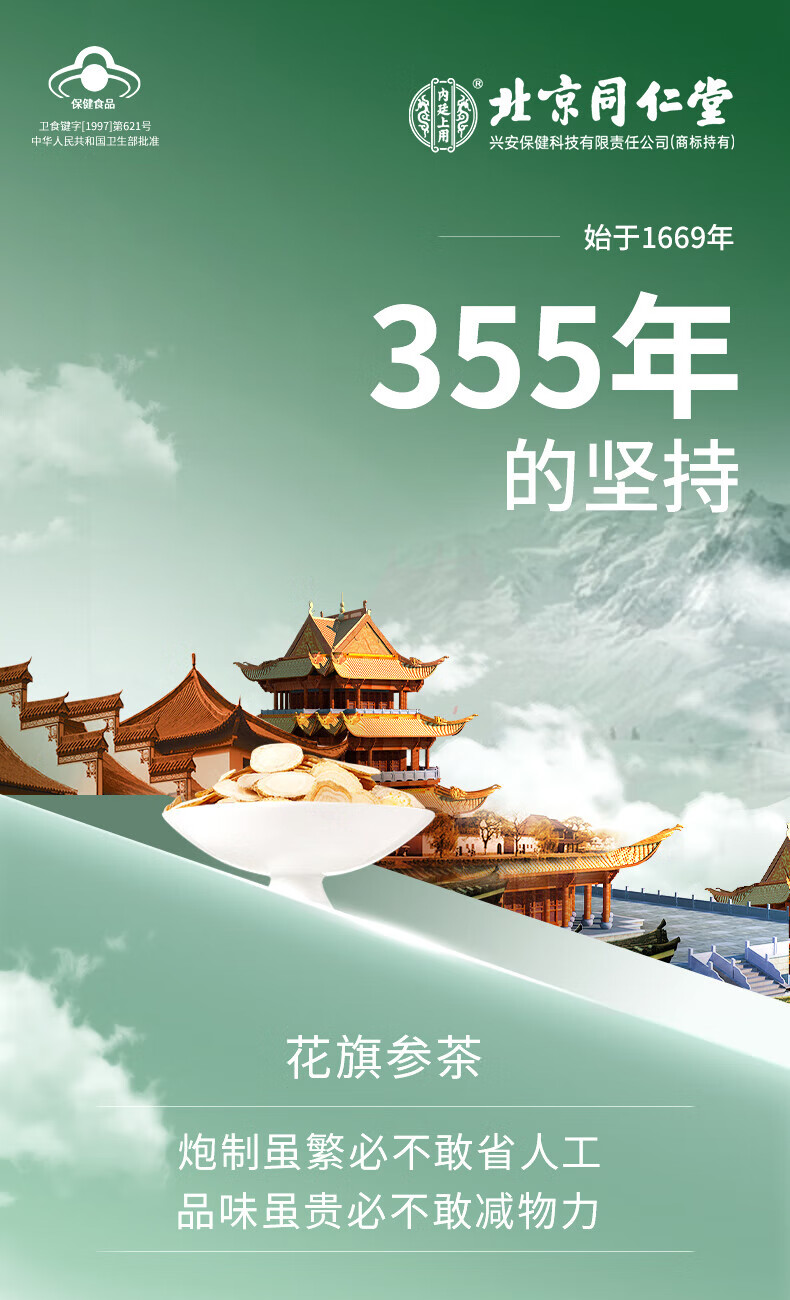 内廷上用 北京同仁堂花旗参茶 高含量人参皂苷抗疲劳熬夜西洋参增强免疫力