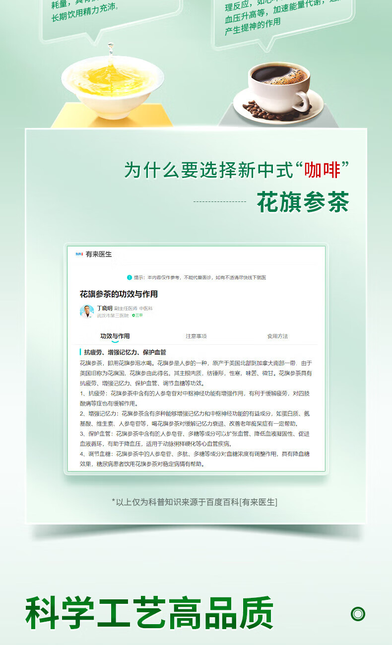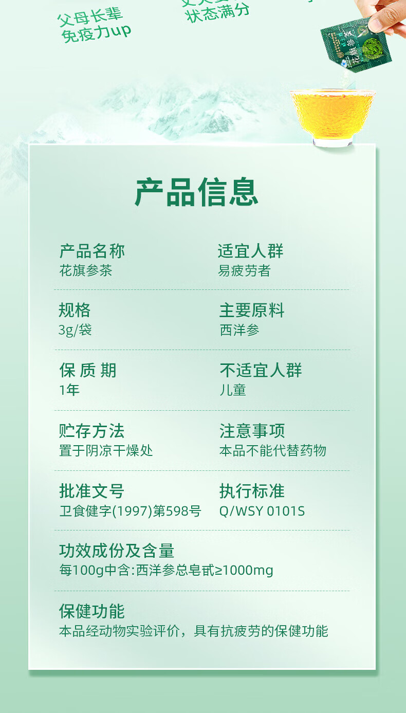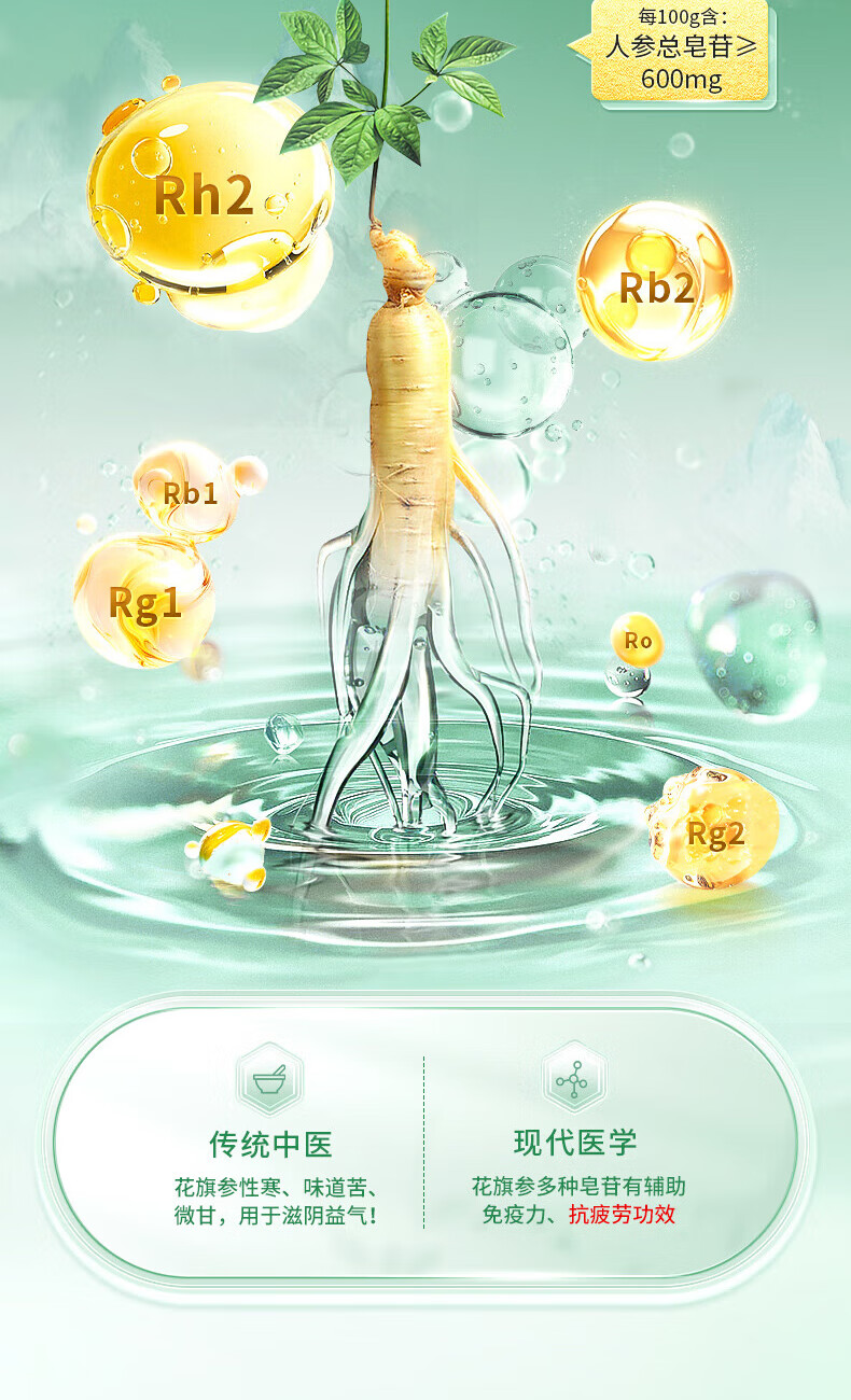 内廷上用 北京同仁堂花旗参茶 高含量人参皂苷抗疲劳熬夜西洋参增强免疫力