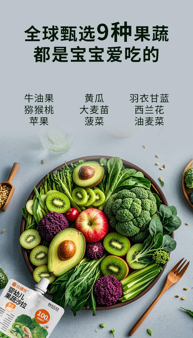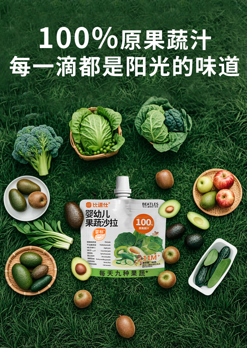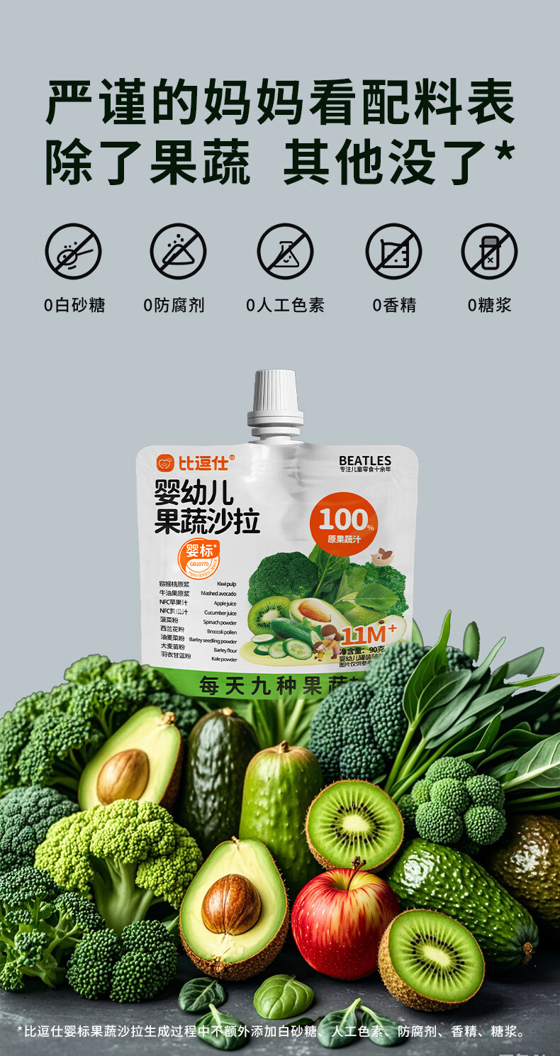 比逗仕婴幼儿果蔬沙拉100%原果蔬汁九种果蔬宝宝辅食零食婴标果汁 组合装 90g 11袋