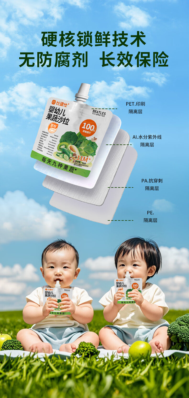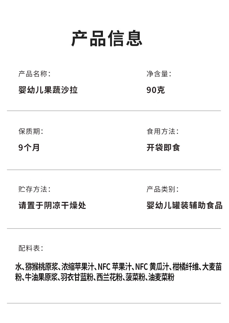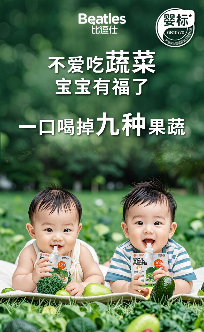 比逗仕婴幼儿果蔬沙拉100%原果蔬汁九种果蔬宝宝辅食零食婴标果汁 组合装 90g 11袋