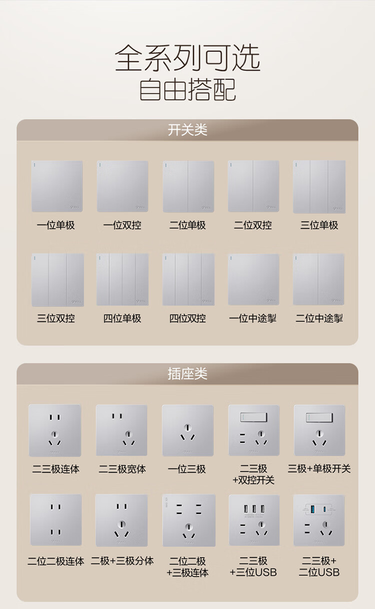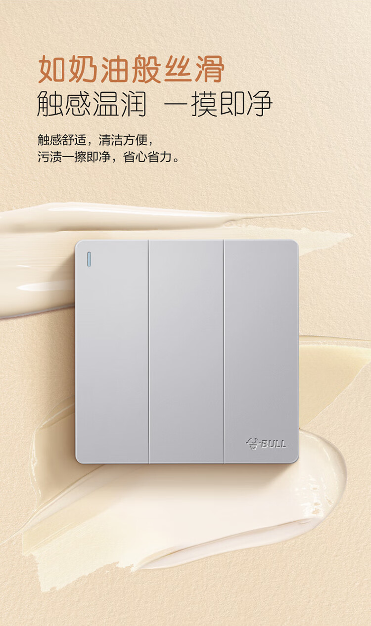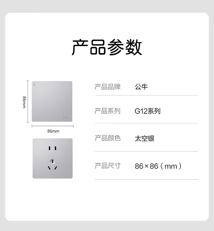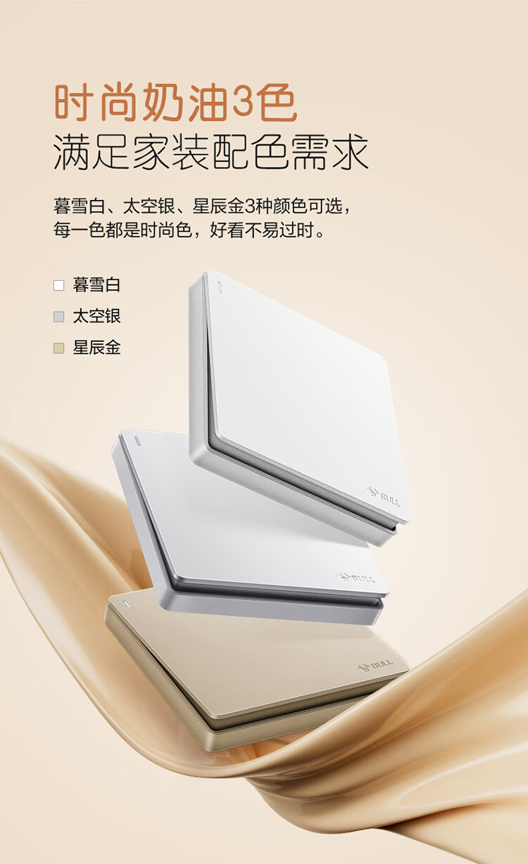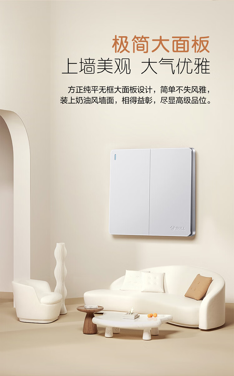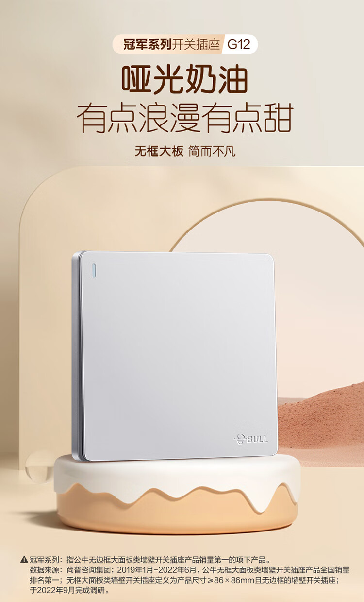 公牛(BULL)开关插座 G12系列 二开双控开关 86型面板G12K212 奶油风太空银