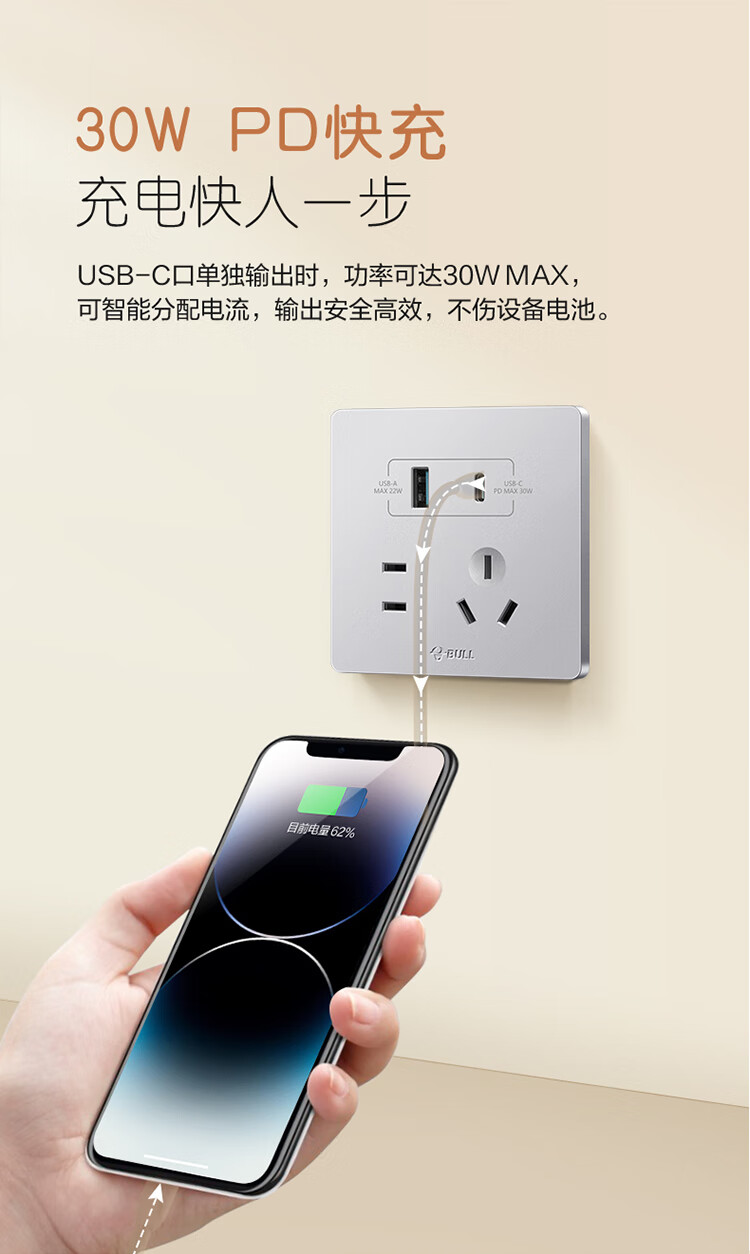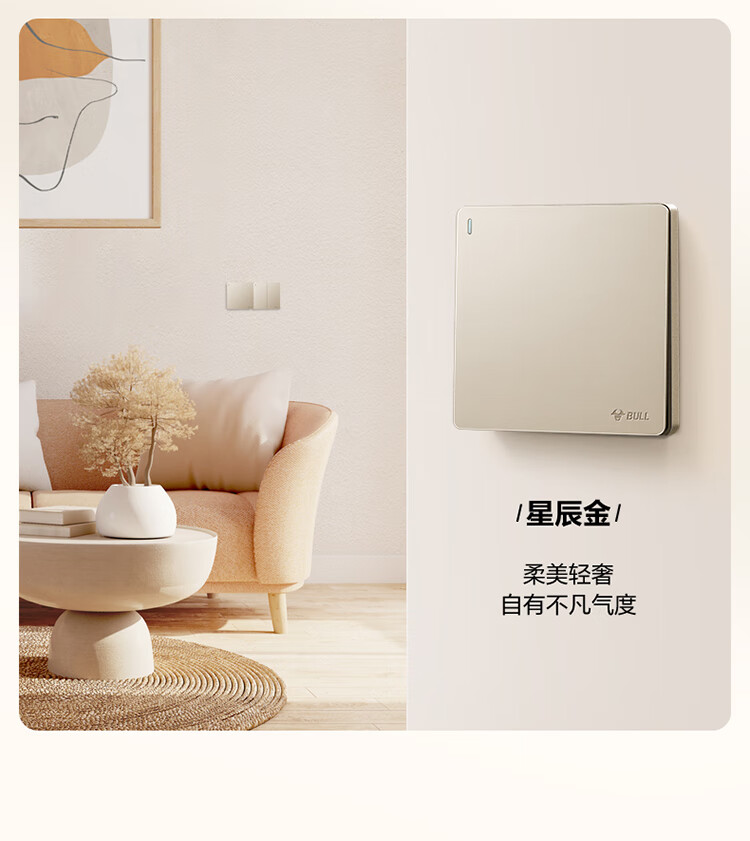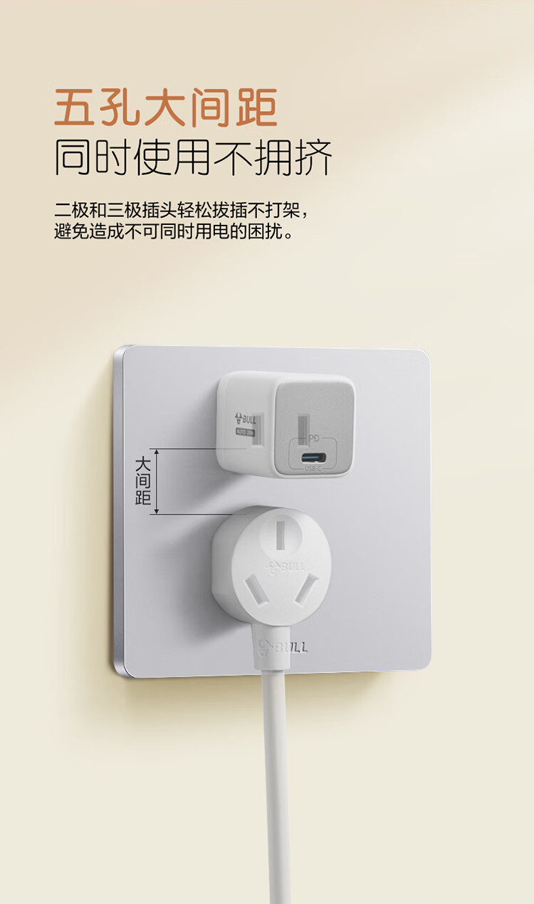 公牛(BULL)开关插座 G07系列 10A斜五孔插座86型插座面板 G07Z223AS 香槟金