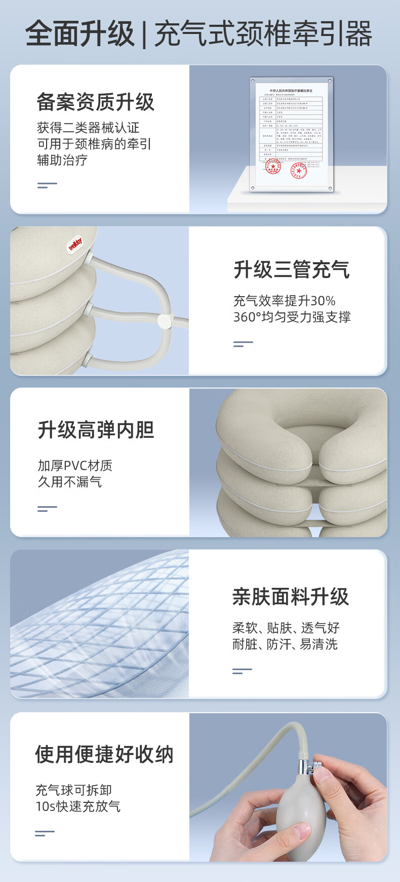 维德颈椎牵引器医用充气颈托矫正器家用颈部固定器护颈椎脖套